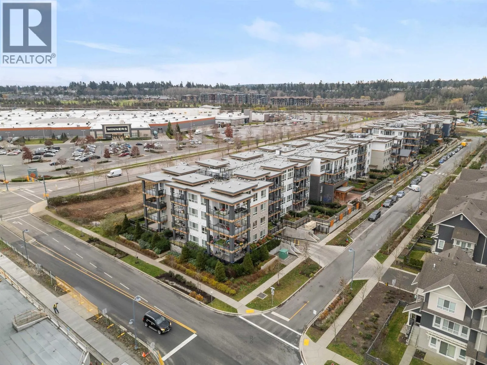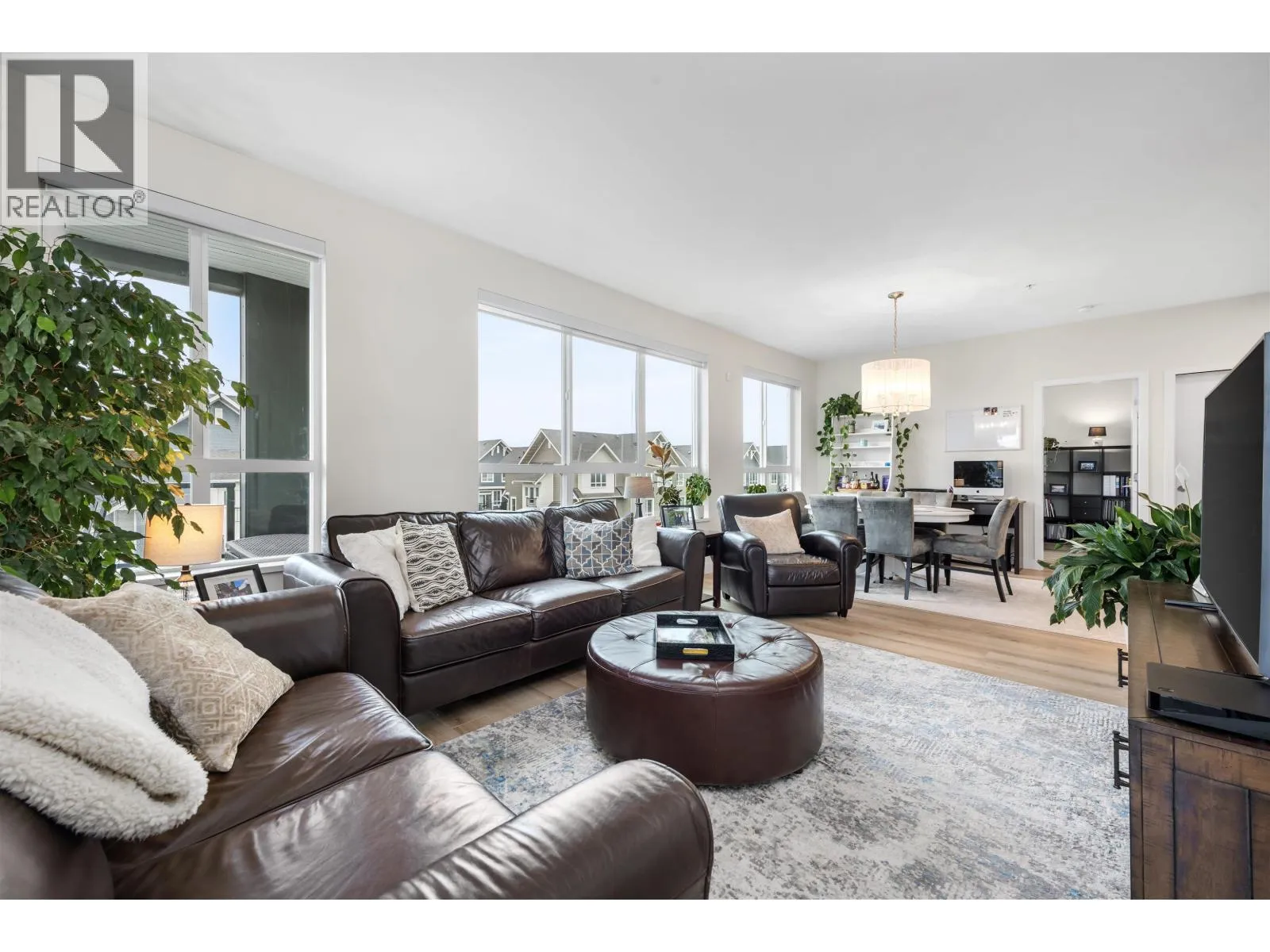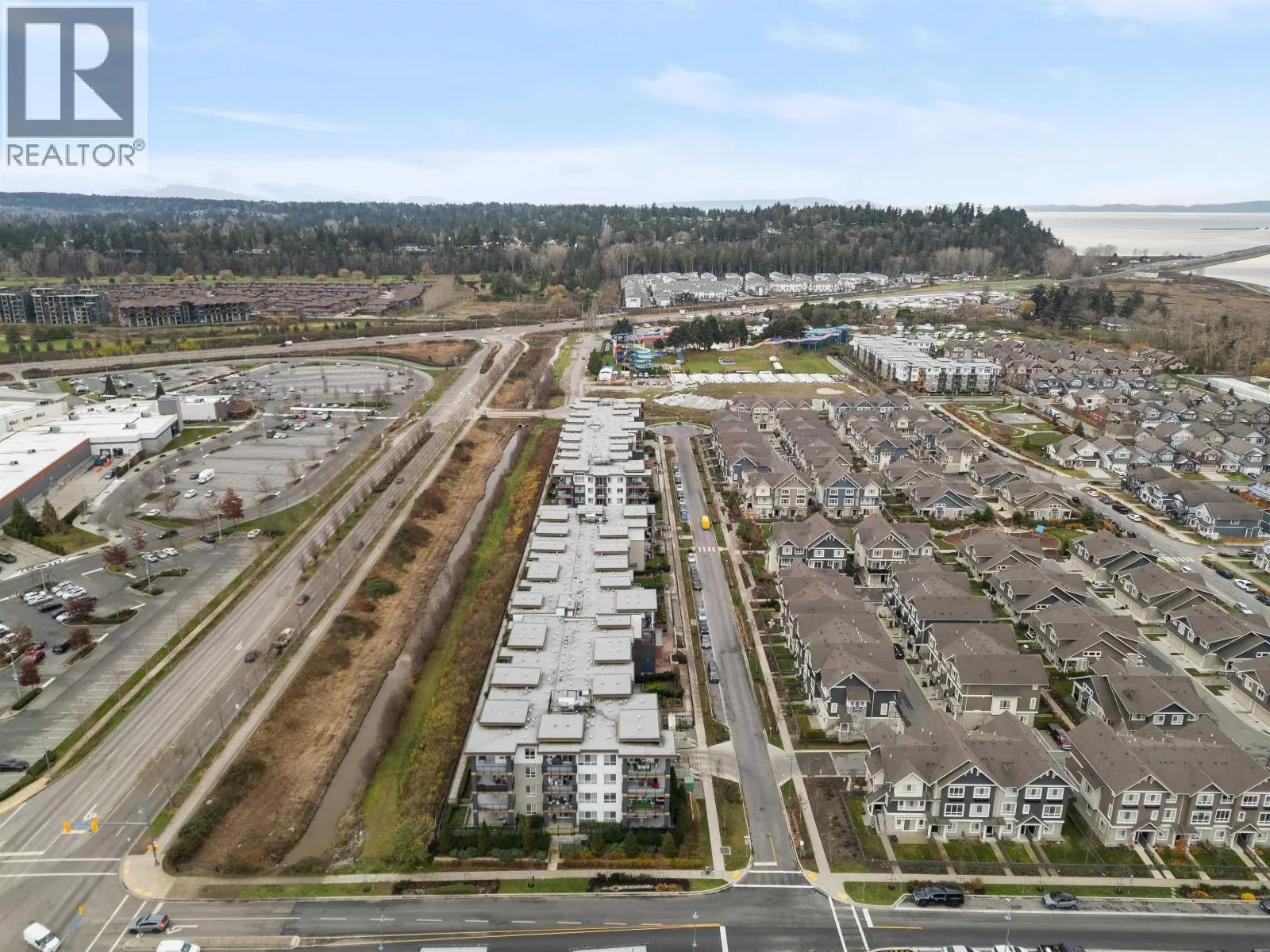 Welcome to Peregrine North at Tsawwassen Shores by Aquilini Development, discover this exquisite 2 bed, 2 bath + den corner unit, one of the largest and most desirable floorplans in the complex. Spanning 1,084 sqft, this unit features a spacious 240 sqft wrap-around patio with serene west-facing park, water and mountain views. The chef's L-shaped kitchen with an island is surrounded by panoramic windows, inviting abundant natural light and enhancing the open feel. Large living and dining area with 9" ceilings and upscale bathrooms, the unit offers modern, luxurious living. Residents have exclusive access to The Nest Clubhouse, which includes a spectacular fitness centre, chef´s kitchen, outdoor fireside lounge, meeting rooms, and a billiards room. 2 parking stalls, large storage locker. (id:27476)
