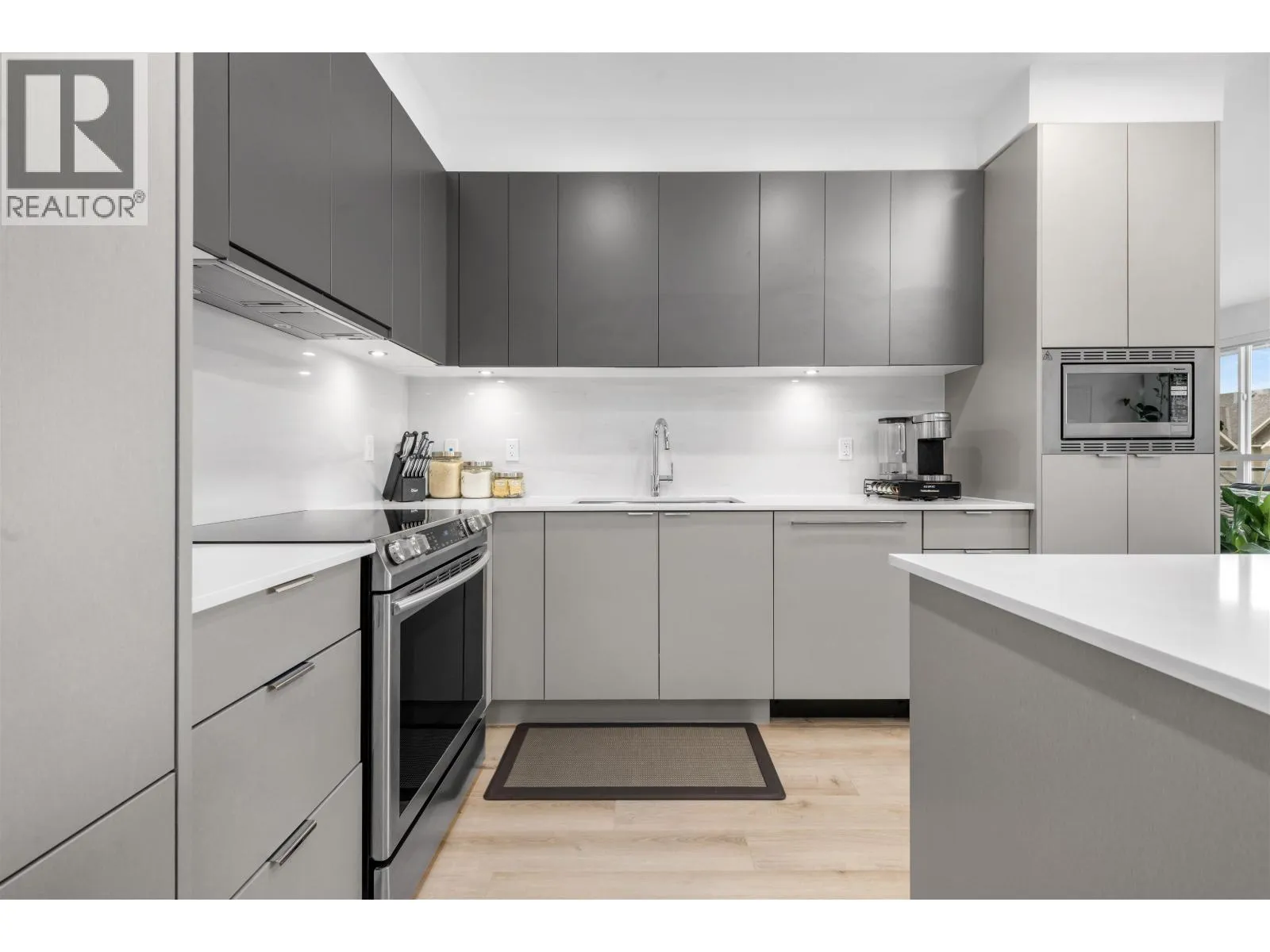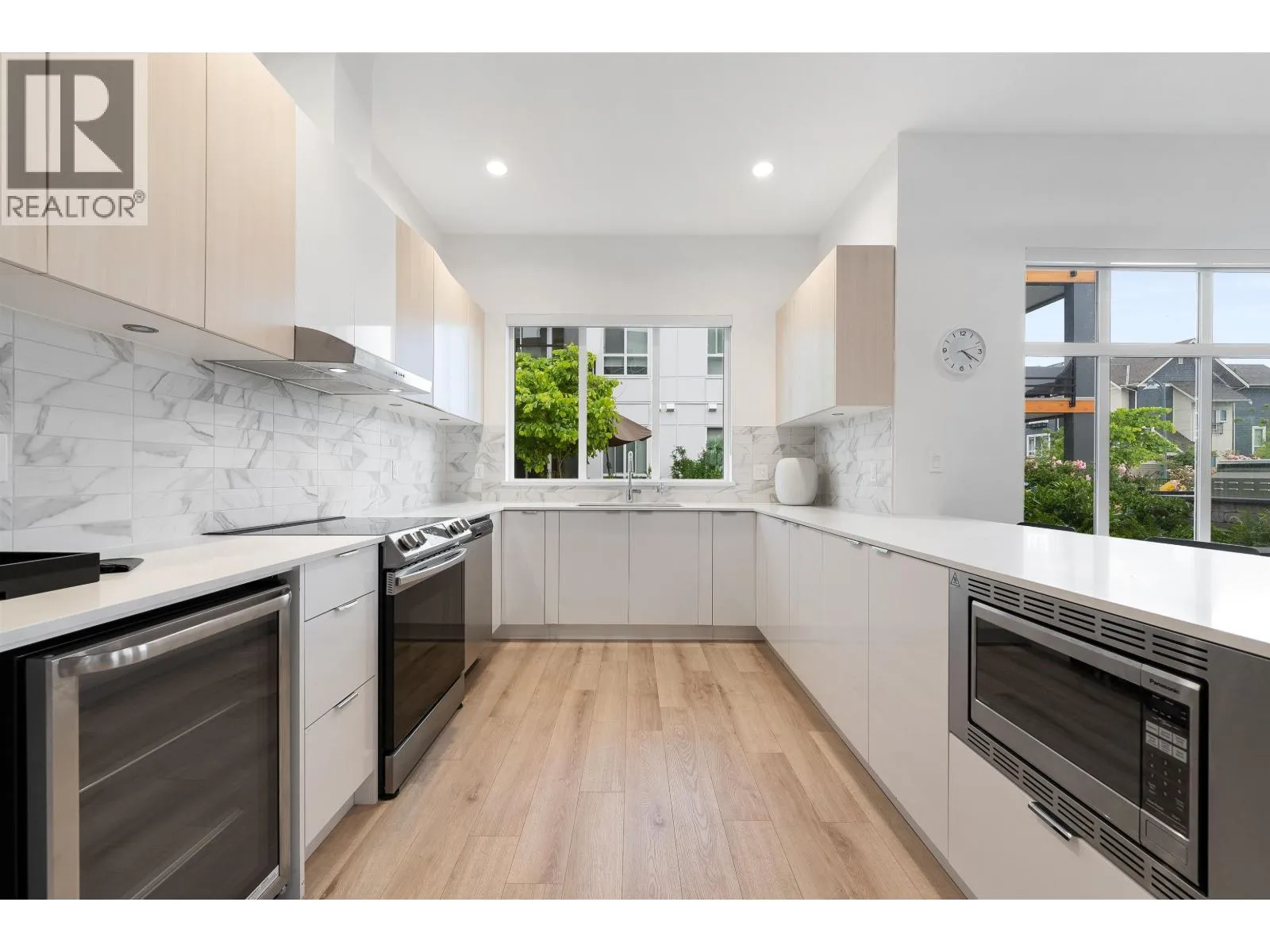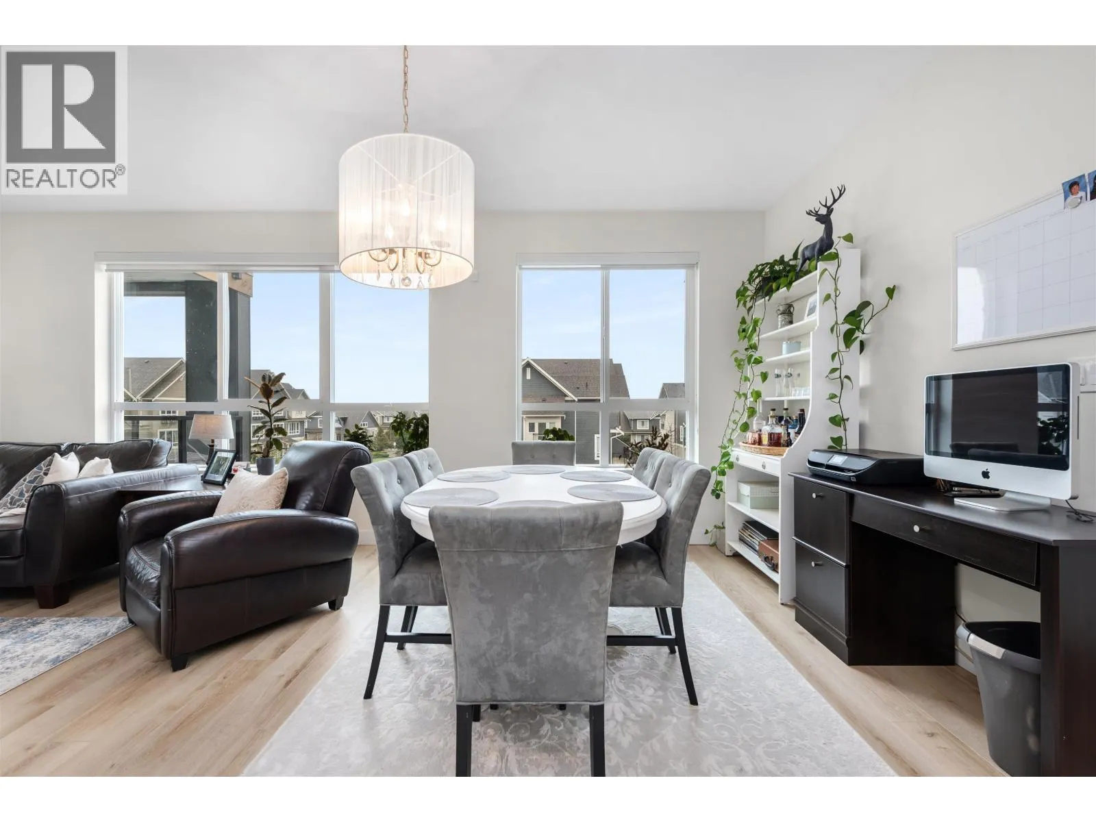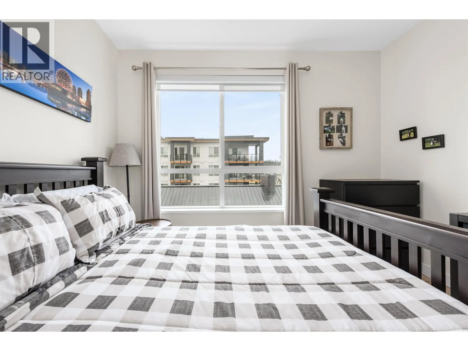 Welcome to Peregrine North at Tsawwassen Shores by Aquilini Development, discover this exquisite 2 bed, 2 bath + den corner unit, one of the largest and most desirable floorplans in the complex. Spanning 1,084 sqft, this unit features a spacious 240 sqft wrap-around patio with serene west-facing park, water and mountain views. The chef's L-shaped kitchen with an island is surrounded by panoramic windows, inviting abundant natural light and enhancing the open feel. Large living and dining area with 9" ceilings and upscale bathrooms, the unit offers modern, luxurious living. Residents have exclusive access to The Nest Clubhouse, which includes a spectacular fitness centre, chef´s kitchen, outdoor fireside lounge, meeting rooms, and a billiards room. 2 parking stalls, large storage locker. (id:27476)