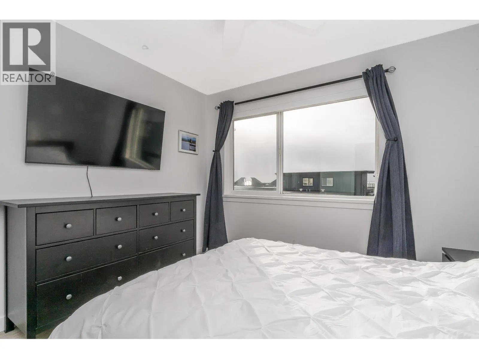 Ocean views and A/C at the sought after Boardwalk Community. This West Coast inspired 3 bedroom, 2.5 bath townhome offers 1,350 sq.ft. of bright open concept living and shows like new without the GST. Modern kitchen with grey cabinetry, stainless steel appliances, large island and gas BBQ hookup. Primary bedroom enjoys ocean views and coastal breezes. Forced air heating and A/C added in 2024. Resort style amenities at your doorstep with pool, fitness centre and clubhouse. Enjoy relaxing in your own outdoor space, perfect for summer evening hangs and pets. Functional floor plan with great bedroom separation. Best priced townhome in the community with these features and exceptional value. (id:27476)