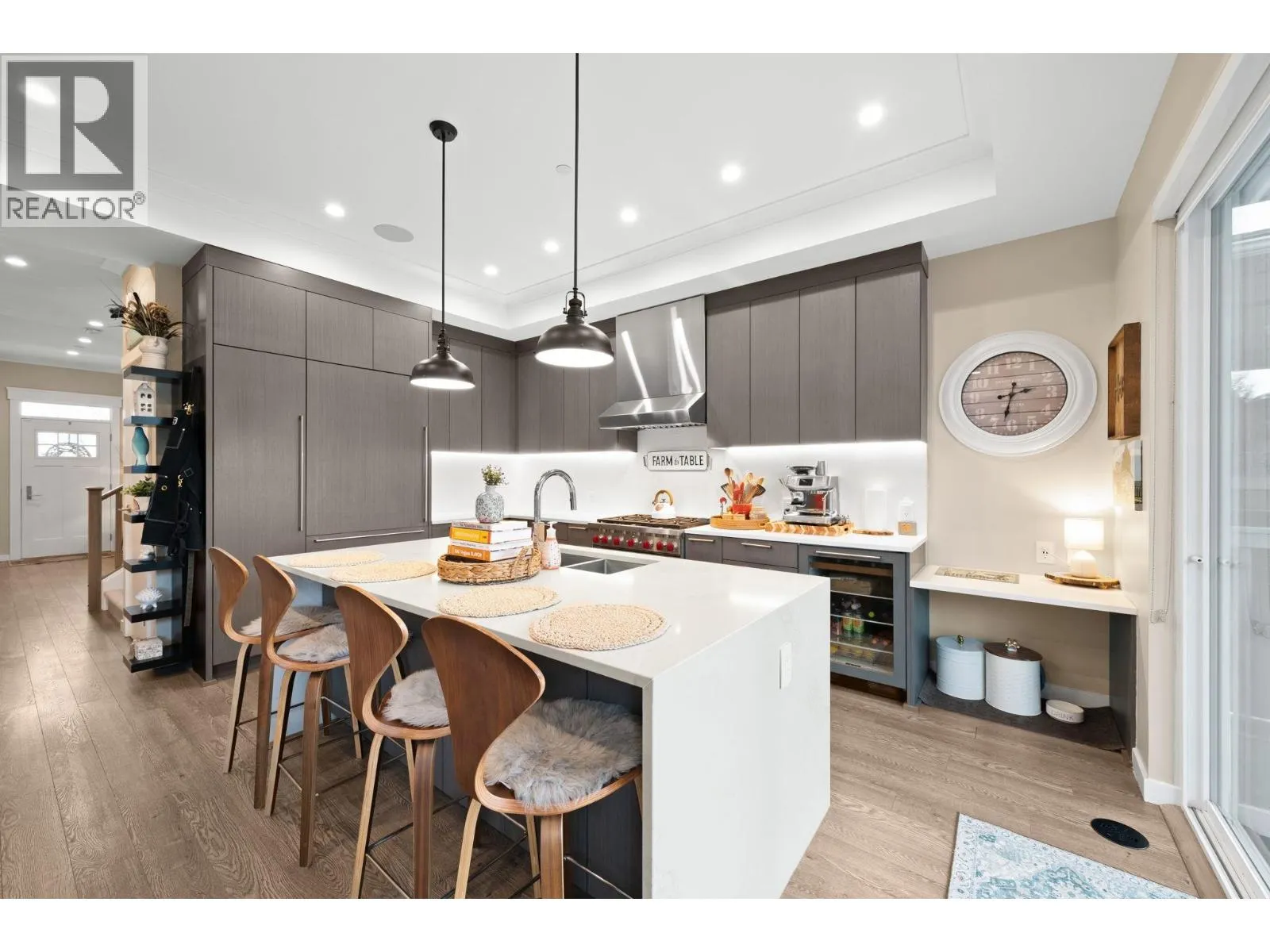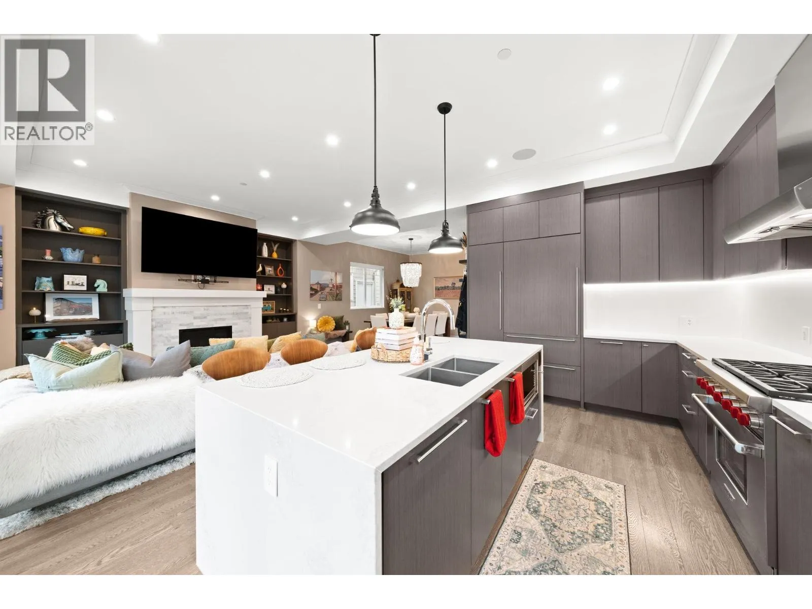 Styled & presented to perfection,this impeccably maintained 4 bed/3 bath residence shows like a designer show suite.Offering 2183 sq.ft of elevated living in an exceptional location,10ft ceilings & expansive windows flood the main lvl with natural light. Chef´s kitchen fts. integrated fridge,freezer,dw,6-burner Wolf range, bar fridge & an oversized island designed for entertaining.Custom built-ins & a sleek gas fireplace anchor the space,while a thoughtfully designed desk nook adds function with style.Upstairs,the primary impresses with a deep soaker tub,shower,dbl vanity,water closet & WIC. Lrg upper laundry rm w/sink. Artificial turf yard, covered porches front & back, pristine 2 car garage with custom cabinetry + 1 extra parking.Optional clubhouse access w/pool,sauna,steam,gym&more for a fee. Open House Sunday, February 15 2026 1:00 - 3:00 PM. (id:27476)
