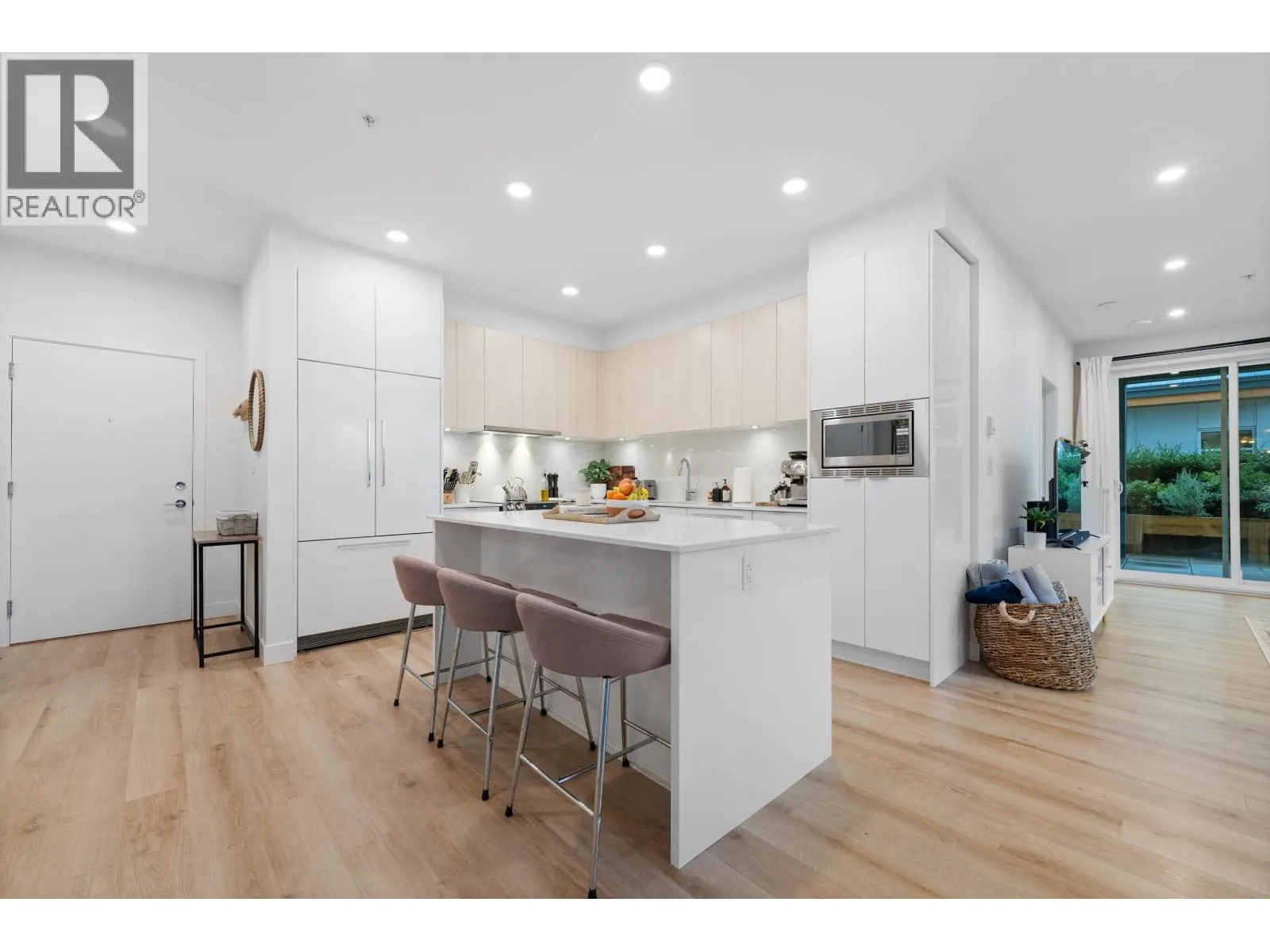 Bright Corner Garden-Level Home with Private Green Space. This spacious 1,086 sq ft, 2 bed + den home at Peregrine North, Tsawwassen Shores features 9ft ceilings and oversized windows that fill the home with natural light. The modern kitchen offers high-end appliances and a large island, flowing seamlessly into the open dining and living area. Two spacious bedrooms incl. a primary with spa-inspired ensuite featuring ambient lighting and a frameless glass shower. A versatile den is perfect for a home office, nursery, or extra storage. The SW-facing patio with private lawn is ideal for young families, pet owners, or unwinding after a busy day. Conveniently located across from the amenity centre and park, and steps to a premium mall, sandy beaches, ferry, and easy commuter access. Call today! (id:27476)