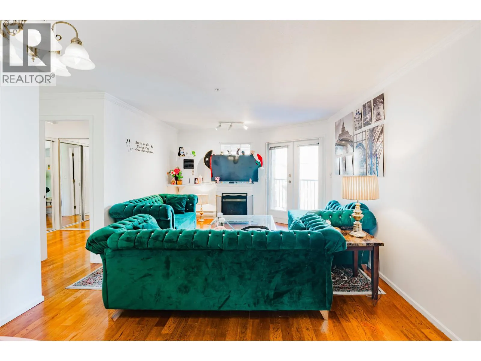 Welcome to The Oxford at the Windsor Woods! This penthouse unit offers 2 bedrooms, 2 bathrooms, and a spacious, light-filled layout in a quiet, sought-after neighbourhood. Just steps from recreation, restaurants, shops, and a short walk to the beach, this home is perfectly located. Enjoy hardwood flooring throughout, crown molding, and a cozy gas fireplace-with gas included in the maintenance fee! The updated kitchen and renovated 4-piece second bathroom add modern touches. Both bedrooms features a huge closet and space for a king-sized bed. Relax on the large sundeck, soaking in the ample natural light. This well-run complex includes underground parking plus EV parking stalls, a storage locker, top tier amenities and is close to transit, Tsawwassen Mills and top-rated schools. (id:27476)