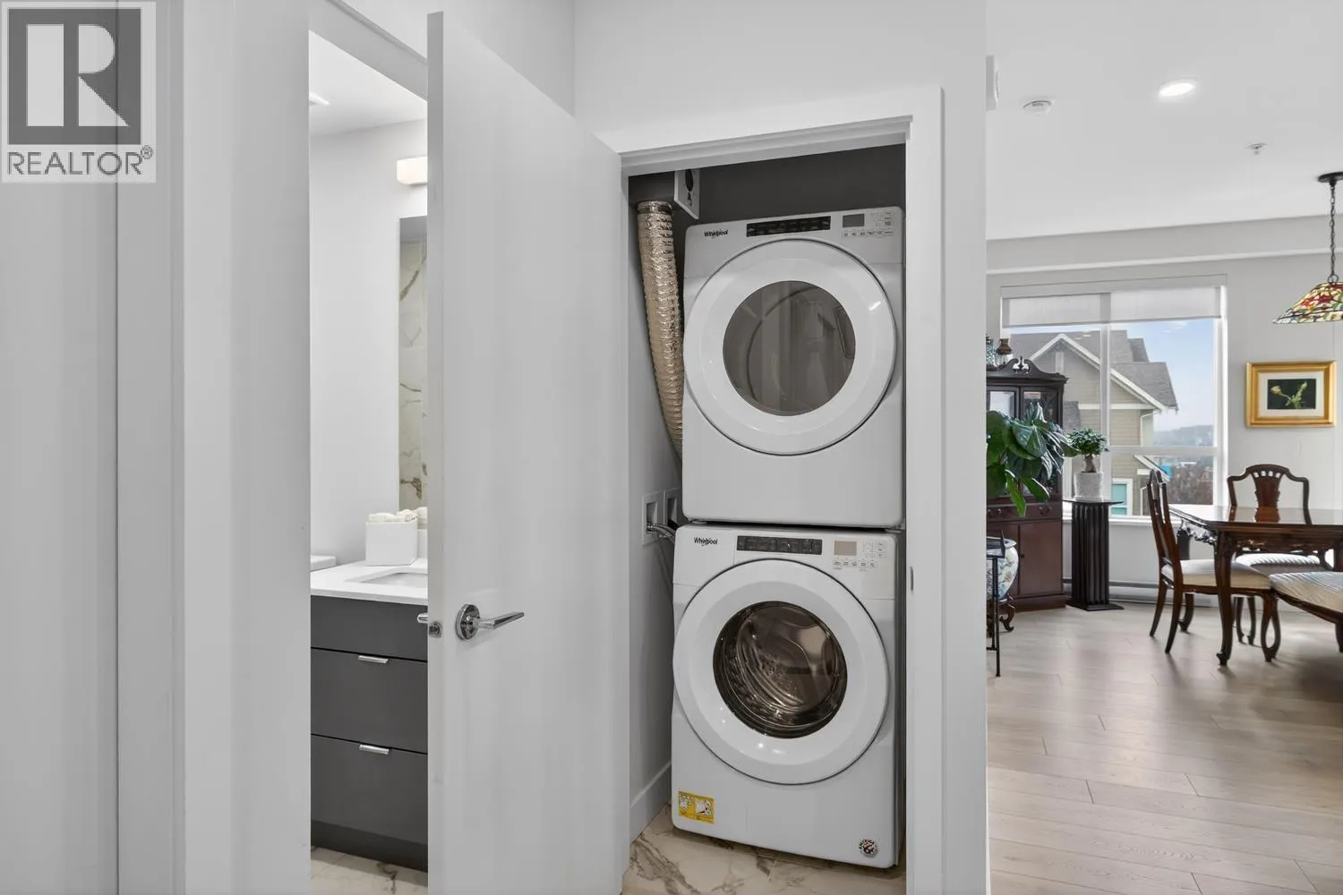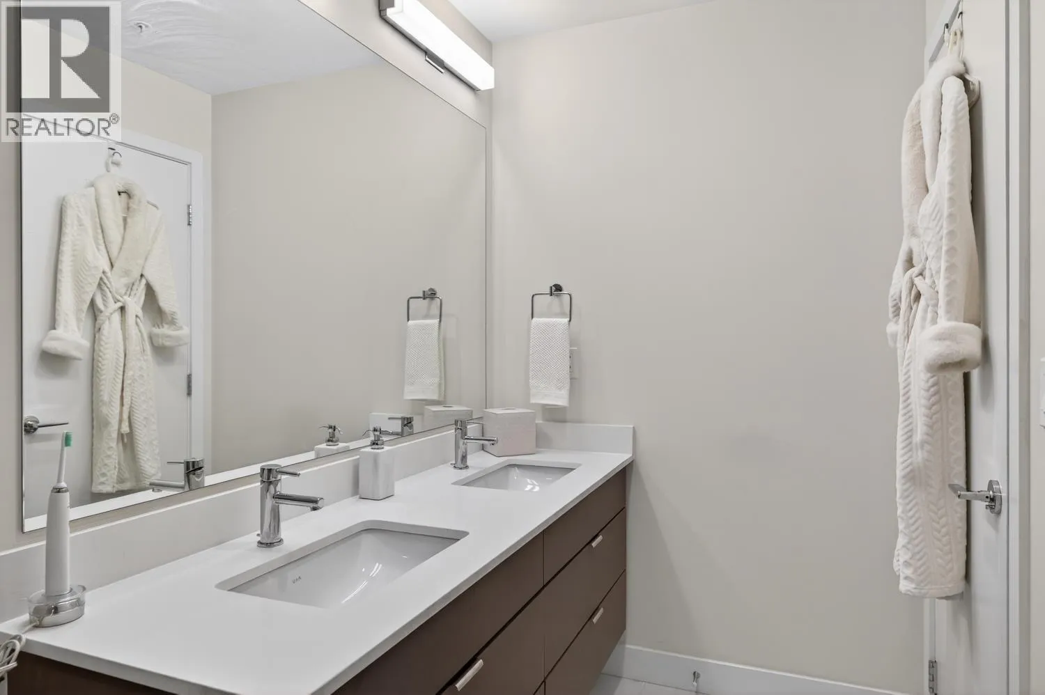 Modern Luxury Meets Serene Greenery at Peregrine South Experience the pinnacle of corner-suite living in this stunning 2-bedroom + den residence. Defined by soaring extra-high ceilings & bathed in natural light from oversized windows, the home feels expansive and airy. At its heart is a chef-inspired kitchen featuring a generous central island-the ultimate stage for culinary creativity. The thoughtful layout prioritizes privacy, placing bedrooms on opposite sides of the suite, while a modern neutral palette provides a warm, sophisticated canvas for any style. Retreat to your spacious, covered wrap-around balcony to enjoy peaceful views of the adjacent greenspace. Parking & Storage: 2 side-by-side stalls, close to the elevator + dedicated locker. Amenities: Clubhouse, EV charging & more. (id:27476)