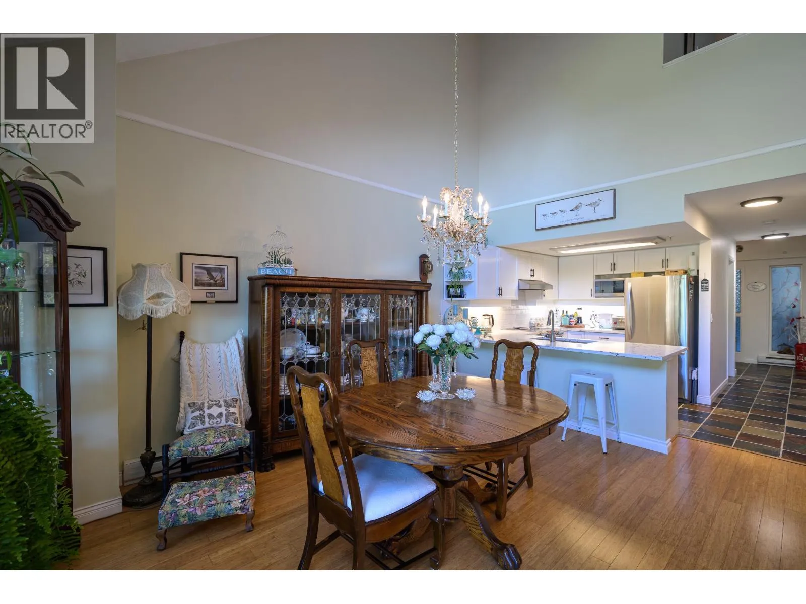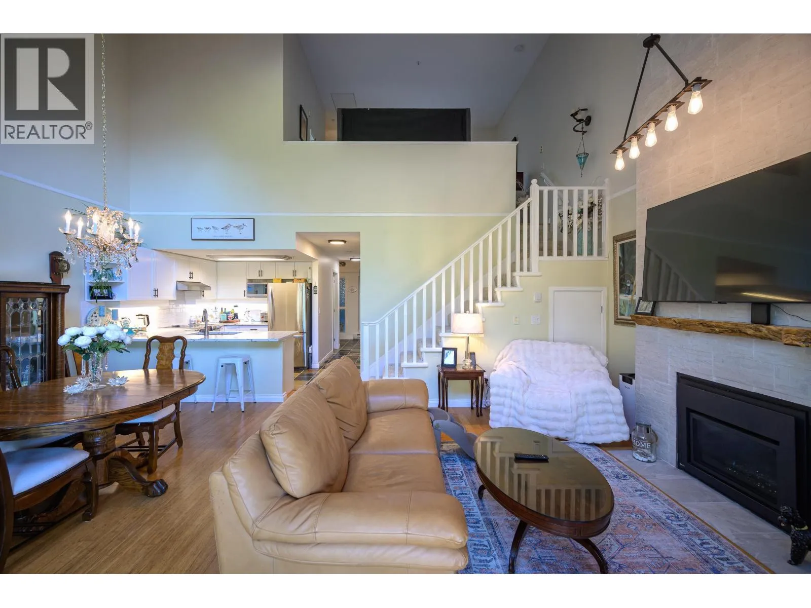 Experience the ultimate waterfront lifestyle at Tsatsu Shores! Overlooking a serene lagoon & surrounded by natural wildlife, this beautifully updated 1,305 sqft 2-storey residence offers the peaceful & tranquil setting you deserve and is just a short drive to countless amenities. Loft-style design feels like a house easing the transition into condo living. Highlights incl 2 large bedrooms, 2 renovated bathrooms, spectacular views of the North Shore Mountains from an oversized 241 sqft balcony, soaring vaulted ceilings, gas fireplace & a tastefully updated kitchen w/Miele & LG stainless appliances & quartz counters. Enjoy direct beach access just steps from the building making morning walks along the shore part of your daily routine. Access to fitness room, 1 parking space & storage locker incl. (id:27476)
