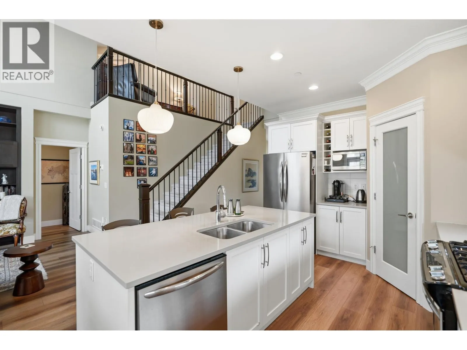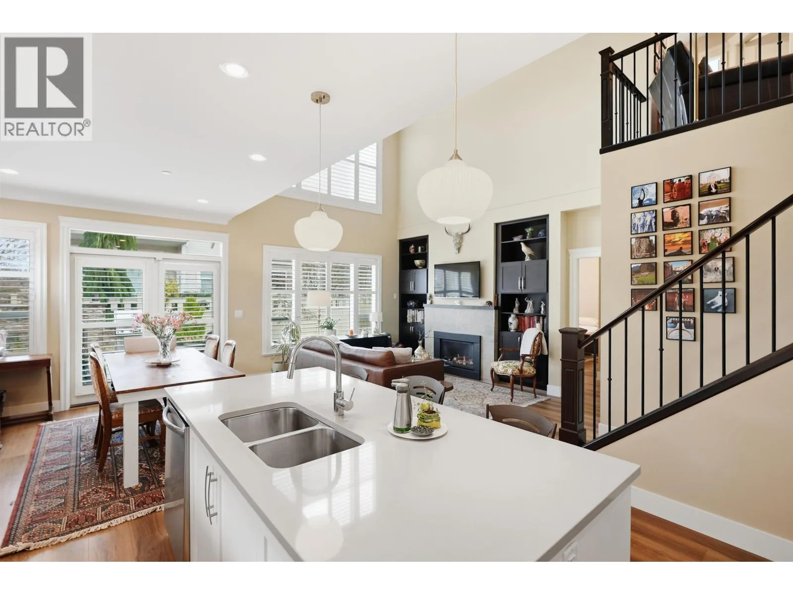 Welcome Home! Meticulously maintained by its original owner, this charming 2 level home offers excellent living space at almost 1,800 sf. Situated on a quiet corner lot, it enjoys an abundance of natural light amplified by its interior soaring ceiling. With a comfortable open plan on the main, there´s an add'l powder room, private den & large primary suite. Updates include custom built-ins, really pretty light fixtures, California shutters throughout & custom mouldings. Upstairs enjoys 2 good sized bedrooms, a 3rd full bathroom, open office area & add'l storage. Exterior updates include an extended back deck with built-in outdoor fireplace & BBQ as well as custom low maintenance landscaping. Double garage & an insane amount of accessible crawl space. (id:27476)
