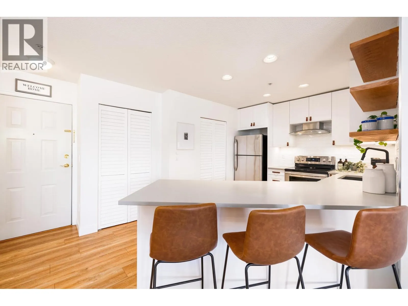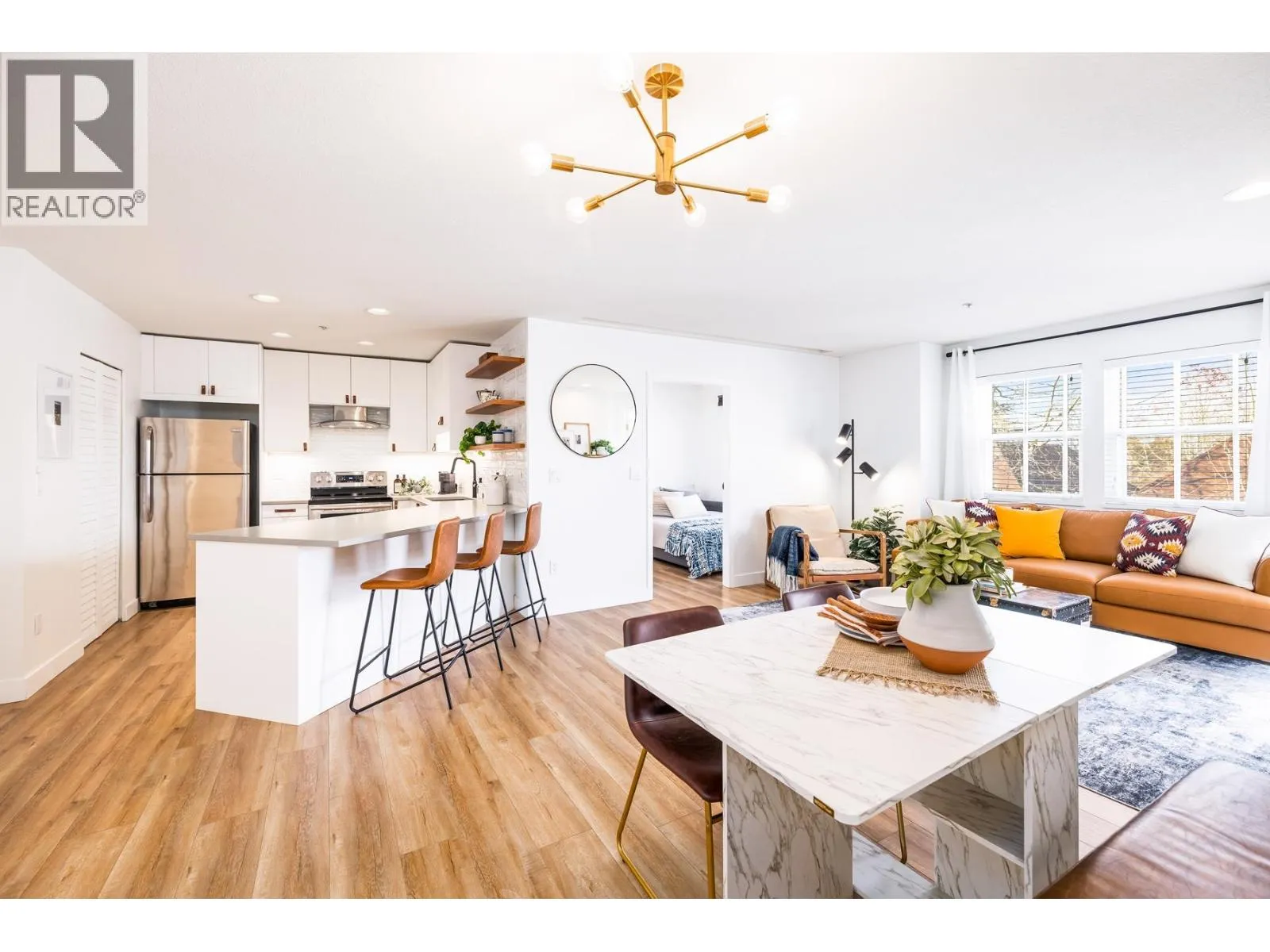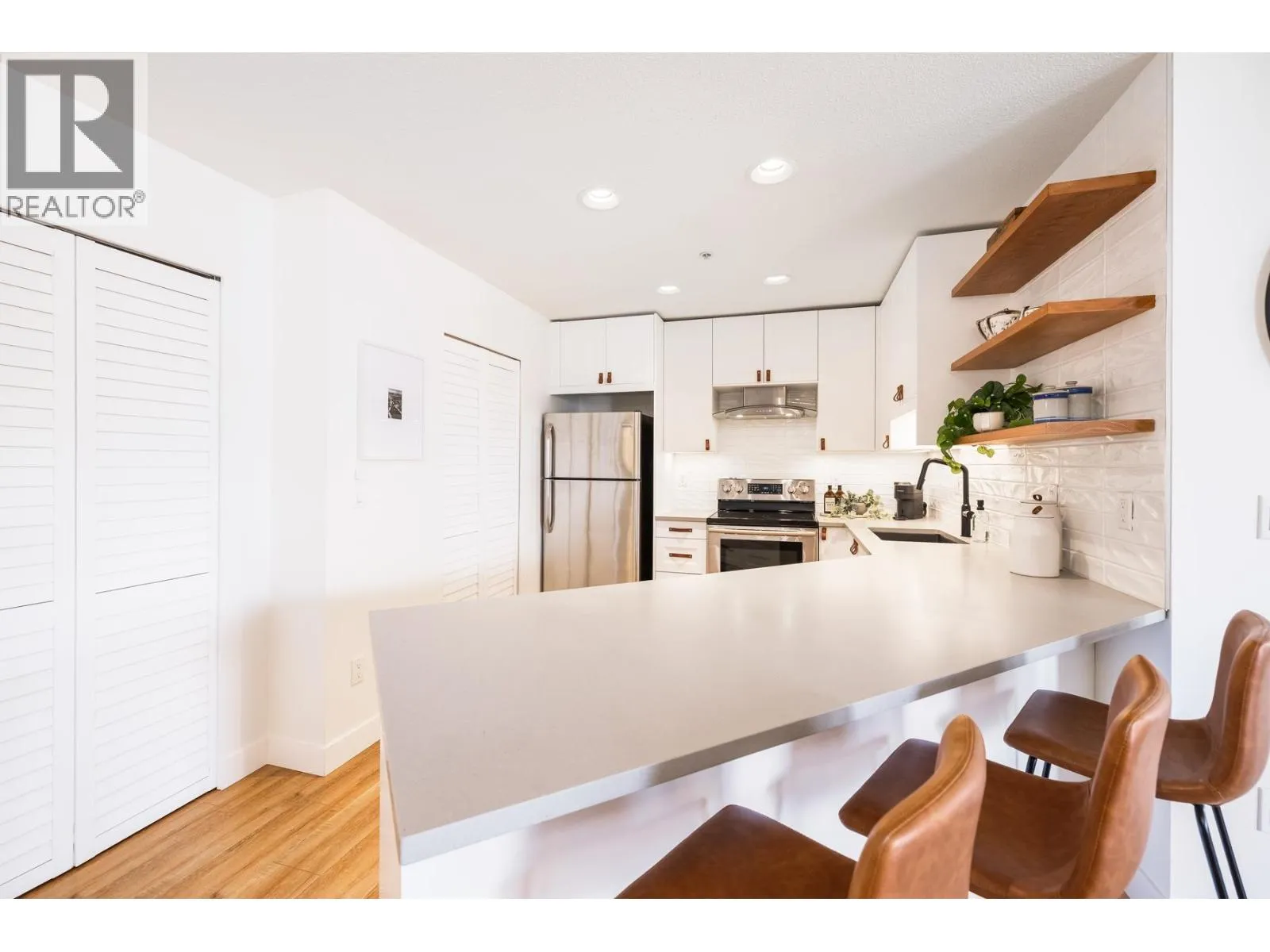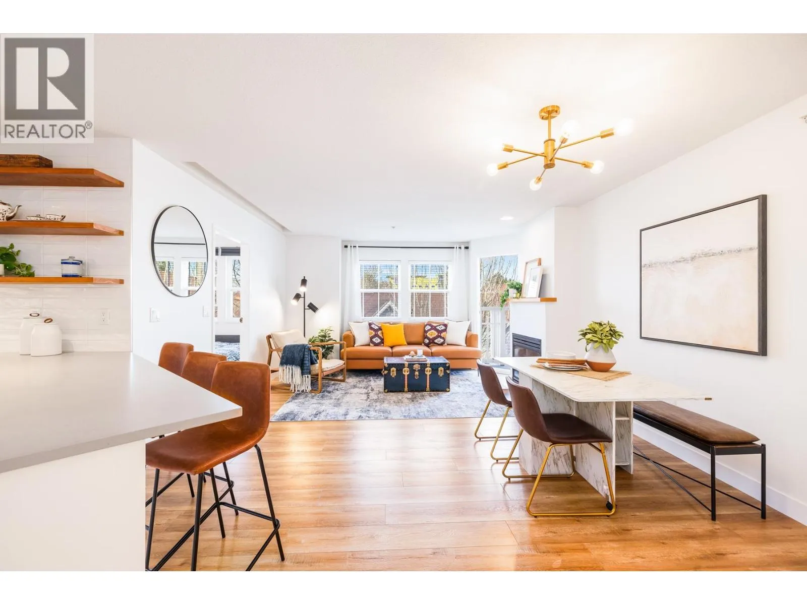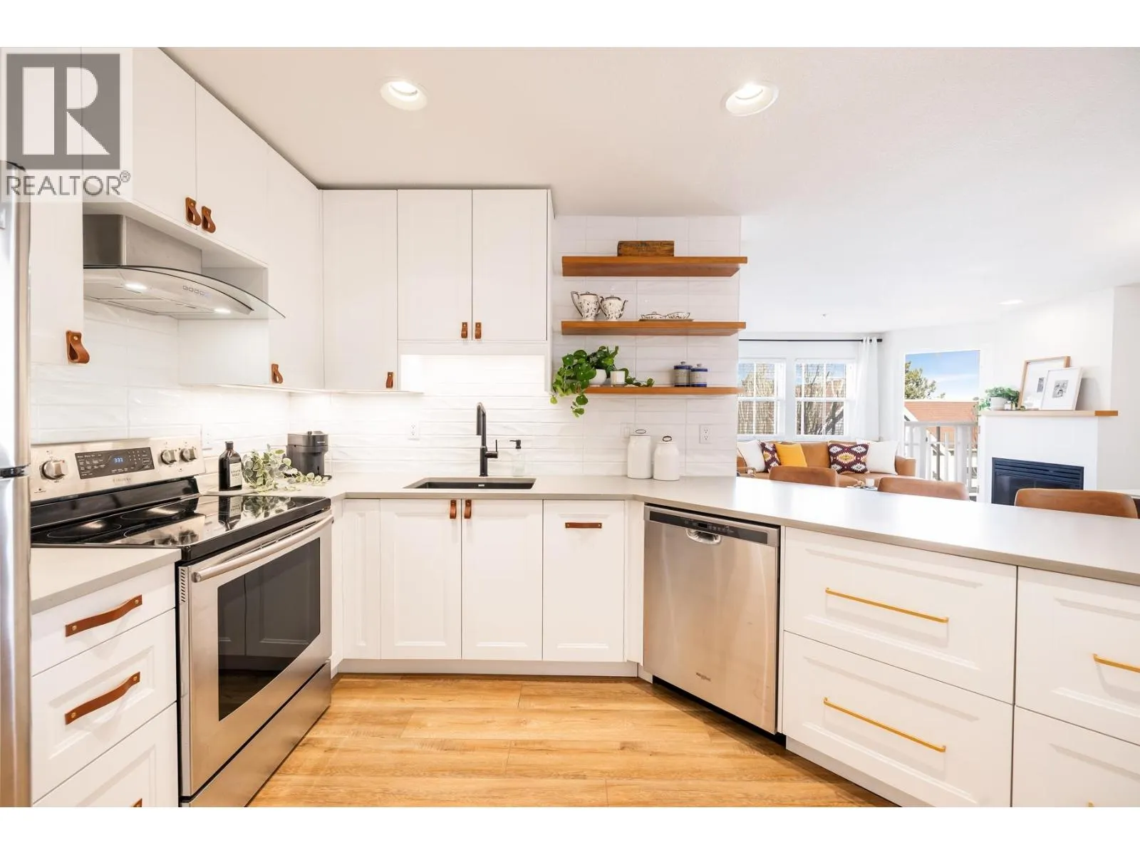 Your heart will skip a beat when you step inside this spacious & beautifully-reno'd 2BR/2Bath penthouse condo at "The Pillars", one of Tsawwassen's most sought-after complexes. Perched amongst the trees & peacefully tucked away at the quiet end of the complex, this bright open-concept corner home welcomes you immediately w/its brilliant floorplan & cute balc overlooking a row of adorable character townhomes. The quality reno & smart design details are apparent. Stunning new kitch w/Caesarstone counters, black undermount siligranit sink, leather cab pulls & floating wood shelves. Updated baths, floors, & black/brushed gold hardware & lighting touches throughout. Cozy gas f/p, radiant h/w heat, BBQ gas hookup & 1 secured pkg. Low maint fees incl. heat, h/w & gas. (id:27476)