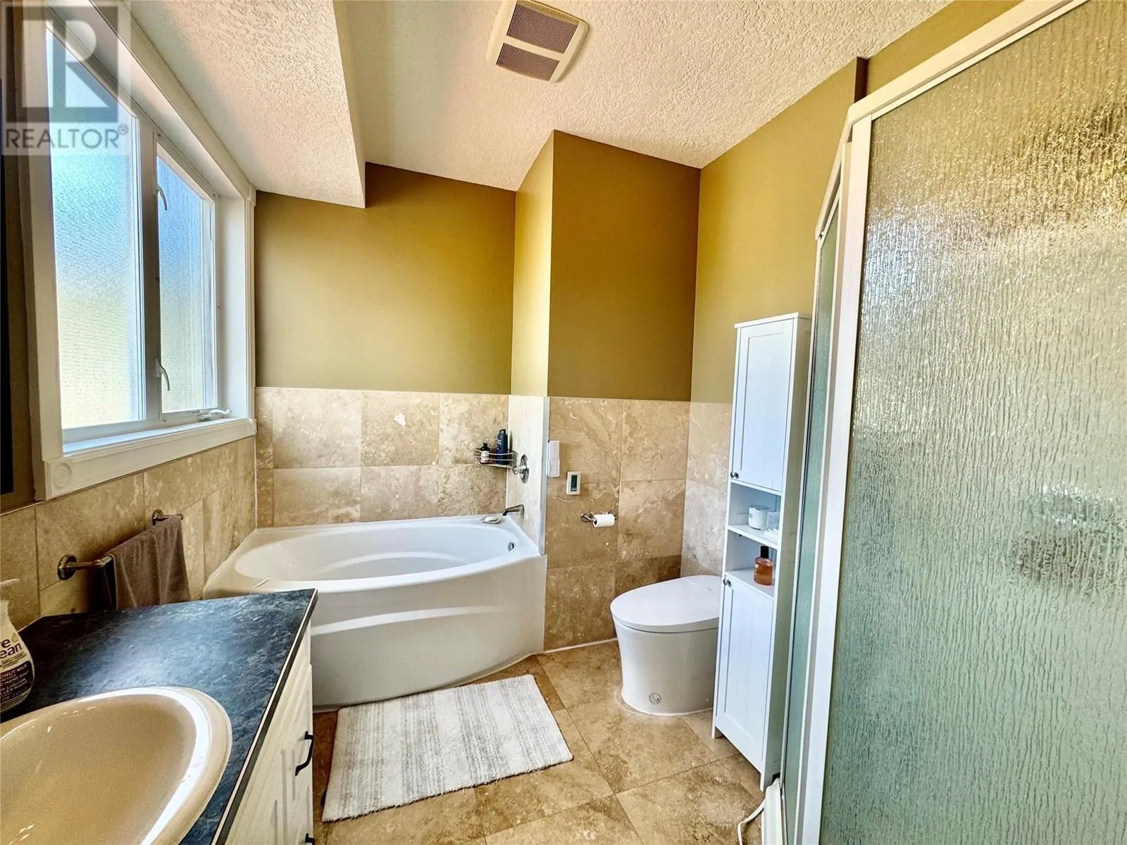 EXECUTIVE HOME IN TUMBLER RIDGE B.C.- This well appointed home is well designed and boosts the open concept many home buyers desire . From the moment you walk into the vaulted foyer of this home with heated floor, you will immediately be draw to the wall of windows and the amazing view of the Mountains and the 16 foot ceilings . The living has a feature wall with a built in entertainment unit and gas fireplace . The kitchen has an oversized island /eating bar, generous space for your table and chairs and an extra-large walk in pantry. Off the Kitchen you can step out onto your private deck for grilling or just summer sitting . Down the hall you will find the Primary suite, ensuite with heated floors and your own entry to the main deck or down to the lower deck for a quick hot tub or out into the fenced backyard. Main floor also feature laundry area and 2 more bedrooms. The walk out basement also hosts a second kitchen , full bath ,living room and bedroom . For parking there is a double car heated garage and extra of off street parking . If your looking for that extra special home , and looking for extra space this is the home . (id:27476)