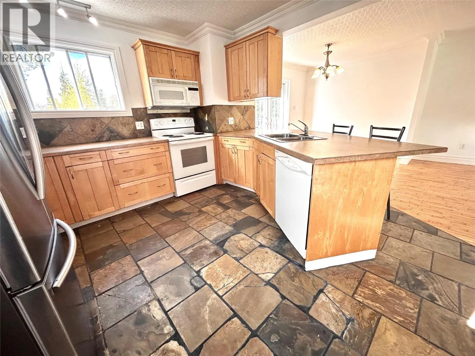 Charming Home on the Upper Bench â Move-In Ready! Welcome to this updated 3-4 bedroom, 2.5-bathroom home located on the desirable Upper Bench of Tumbler Ridge. From the moment you arrive, the adorable curb appeal will catch your eye â complete with cedar shakes, fresh exterior paint, and a fully fenced yard surrounded by mature trees for added privacy. Inside, you'll love the bright, open-concept kitchen and living area, perfect for entertaining or family time. The kitchen features updated cabinets, and counters, a large island, garden doors to the deck, and elegant decorative ceilings that add charm and character. Downstairs, enjoy a finished walk-out basement with bathroom and large bonus room great for a 4th bedroom, guest suite, a home office, or family room. Additional updates include a newer furnace, and fresh interior paint, throughout. Whether you're a first-time buyer, upsizing, or investing, this gem wonât last long! (id:27476)