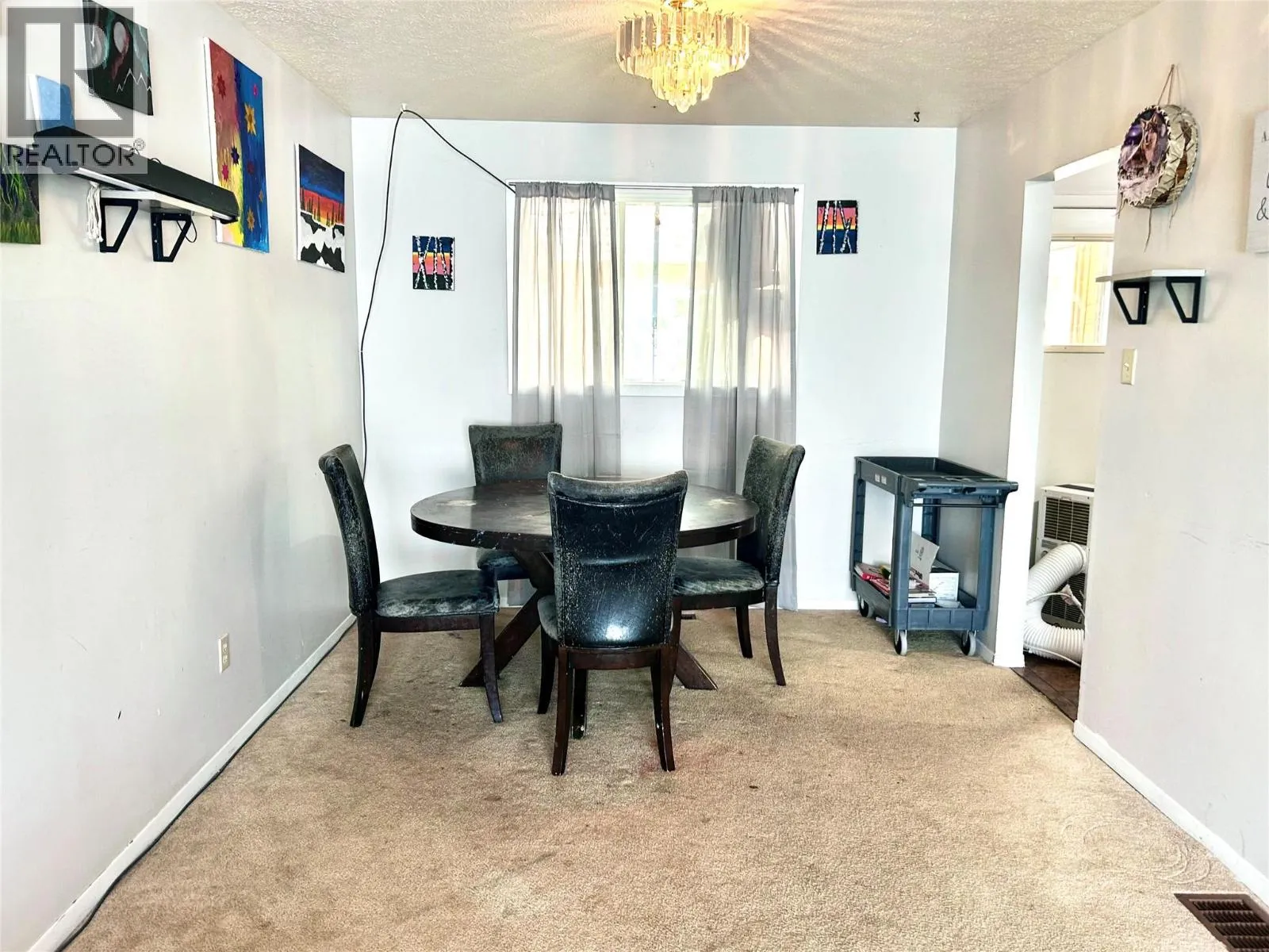 Welcome to this bright and affordable 5-bedroom, 2-bathroom bi-level home located on the Upper Bench of Tumbler Ridge. Perfectly positioned with mountain views and backing onto peaceful green space, this property offers comfort, value, and opportunity. Step inside to a light-filled layout featuring a large front window that brings in the afternoon sun, and a basement with full-size windows that make every room feel open and inviting. Enjoy peace of mind with updated shingles and furnace in the last 4 years while the functional floor plan provides space for families, guests, or a home office. Currently tenant-occupied with renters who would love to stay, this home is an ideal investment property. Or, for first-time buyers, itâs an affordable entry into a friendly mountain community known for its incredible outdoor recreation. This property is a great combination of affordability, space and location. (id:27476)