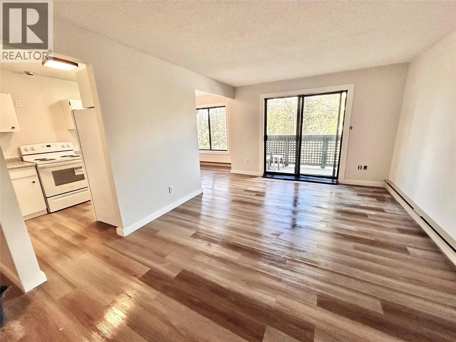 Great Corner Unit on the 3rd floor with Treed views off the balcony, and from all windows! This is a cute layout with a separate dining room and 2 bedrooms to give extra space and light. The recent renovations include; updated electrical, raised kitchen ceiling, larger opening and breakfast bar to the dining room from the kitchen. This condo includes recently purchased never used appliances in the kitchen . Additional updates include vinyl flooring throughout, refinished counters in kitchen and bathroom, fresh paint, baseboards, window trims and led lighting. With the great views, great light and privacy, this is an amazing opportunity for a second home and access to amazing mountain recreation living in Tumbler Ridge, this unit is vacant and ready for its next occupant. Quick possession available. (id:27476)