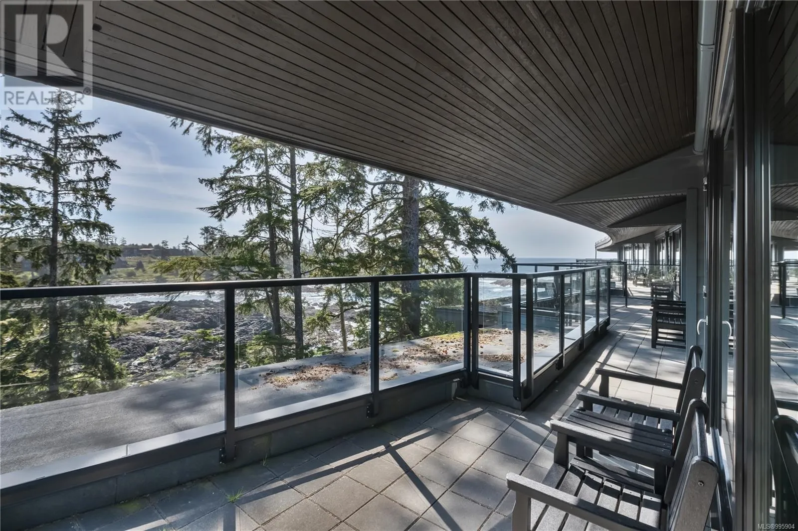 Stunning Top-Floor Oceanfront Suite at Black Rock Oceanfront Resort. Completely renovated in 2024! Experience breathtaking ocean views from this beautifully appointed one-bedroom suite, perched on the top floor of the renowned Black Rock Resort in Ucluelet. This spacious and elegant suite features a full kitchen, a large bathroom with a separate soaker tub and shower, and a cozy fireplace in the living roomâperfect for relaxing after a day of coastal adventure. Thoughtfully designed and fully furnished, the suite offers sweeping views of the open Pacific Ocean and overlooks the scenic Big Beach. Enjoy luxury resort amenities including oceanview hot tubs, a fitness centre, full-service spa, onsite bar and restaurant, and conference facilities. Step outside and explore the famous Wild Pacific Trail, with direct access right from the resort. Whether you're looking for a serene getaway or an active west coast retreat, this is oceanfront living at its best. (id:27476)