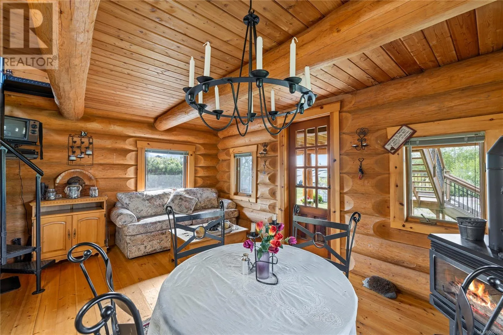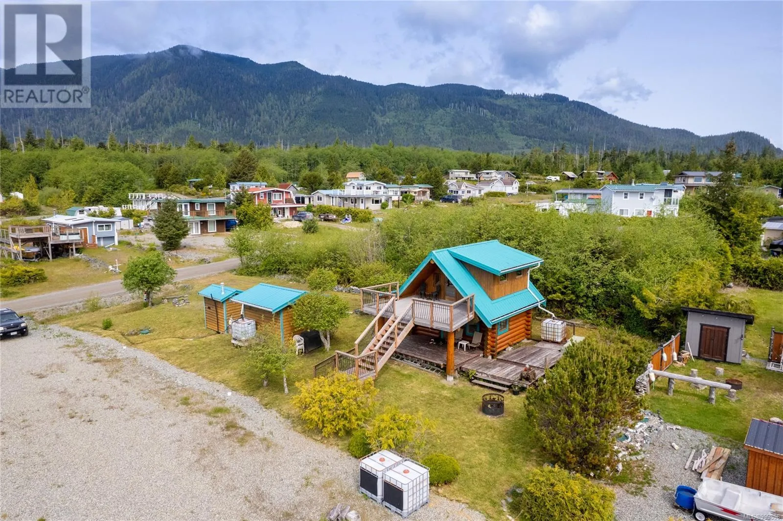 Escape to nature with this enchanting two-storey log cabin, perfectly situated in the village of Salmon Beach. Designed for outdoor enthusiasts, this rustic retreat offers sweeping ocean views and is just a short walk to the boat launch and sandy beachâideal for kayaking, fishing, and beachcombing. The cabinâs warm and inviting interior features a cozy propane fireplace and a spiral staircase leading to a loft-style bedroom. A separate three-piece bathhouse, complete with propane-fueled on-demand hot water, adds convenience while maintaining the authentic cabin experience. Enjoy your morning coffee or evening sunsets from the expansive upper view deck, or unwind on the covered lower deck after a day of adventure. Located just a short drive from Ucluelet, Tofino, and Pacific Rim National Park, this unique property offers the perfect balance of seclusion and access to world-class surfing, hiking, and dining. All data and measurements are approx and must be verified if fundamental. (id:27476)