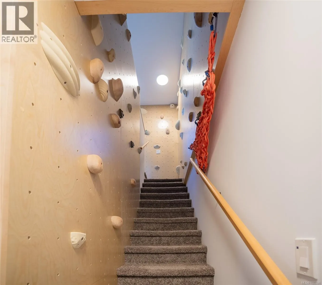 Modern, West Coast-inspired townhome in Uclueletâs Raincoast Commons, built in 2022. Ideal for surfers, families, or first-time buyers, this move-in-ready 2 bed + den, 2 bath home features an open-concept main floor with upgraded vinyl flooring, stainless steel appliances, an electric fireplace, and a custom indoor climbing wall. Step-5 construction and a heat pump provide year-round comfort and low operating costs. Upstairs, the space offers two bright bedrooms, a versatile den (ideal for an office, nursery, or gym), a full bath, and in-suite laundry. Enjoy a fully fenced backyard surrounded by old-growth forest, views of Mount Ozzard and steps to trails and beaches. Added bonus: The new home warranty remains in effect. Located in a quiet, no-through-traffic area at a high elevation in a tsunami-safe zone, just a 10-minute walk to downtown Ucluelet, close to schools, Wild Pacific Trail, and the Pacific Rim National Park. Two parking stalls (1 covered). Not zoned for short-term rentals. (id:27476)