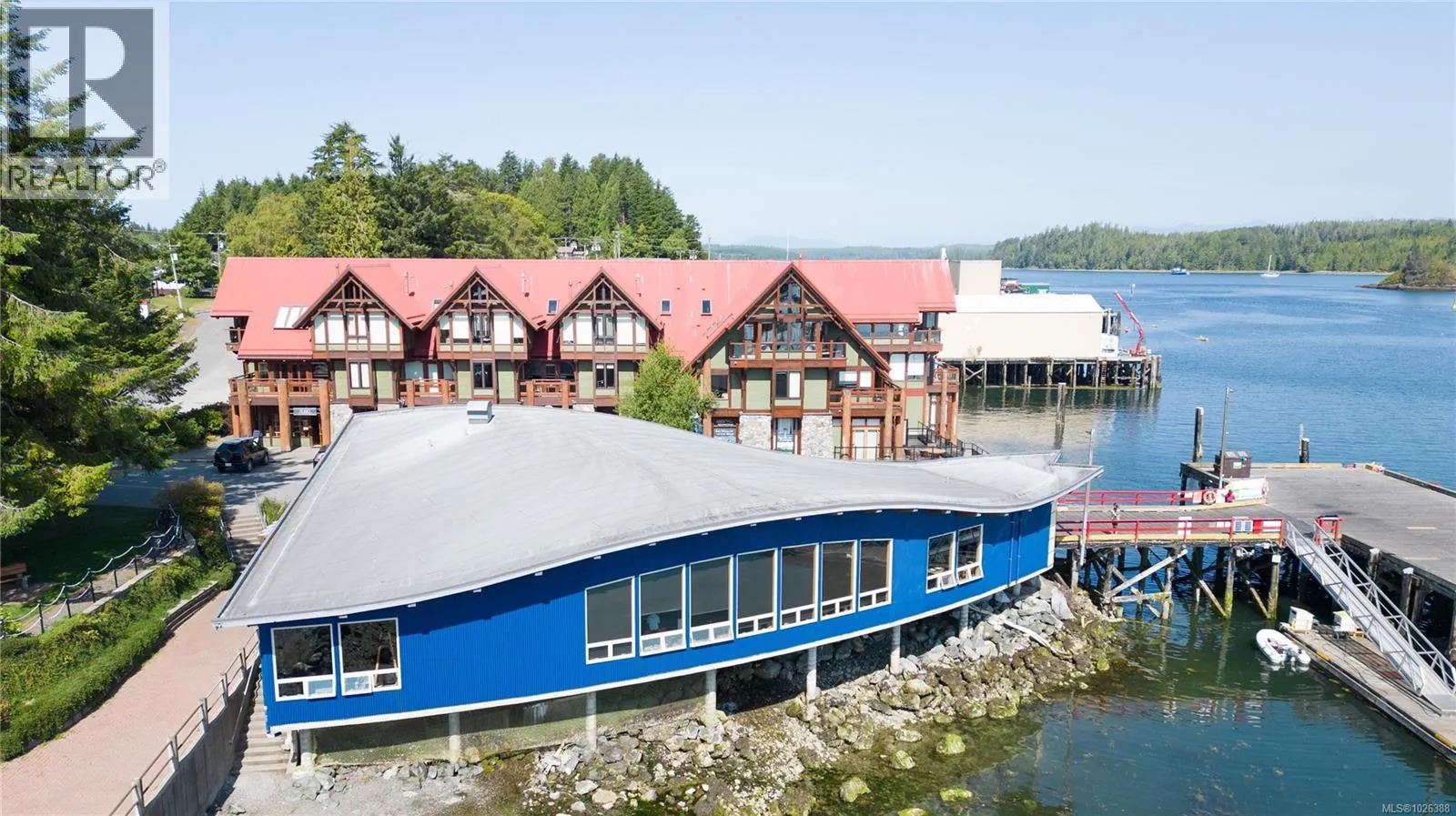 NIGHTLY RENTAL or LIVE-IN - Sunrise ocean view timber frame condo with locally sourced cedar and Douglas fir beams for sale at Whiskey Landing in the heart of Ucluelet. This beautifully appointed suite, right on Ucluelet Inlet, offers two bedrooms and two bathrooms, with an open living, dining, and kitchen area to create a bright and spacious atmosphere. The master bedroom has an ensuite bathroom with a soaker tub, making it a great space to relax. Indulge in views of Ucluelet Inlet and surrounding mountains from the comfort of your living area with a cozy fireplace. This property can be used as your permanent home, a personal vacation getaway, or a self-managed nightly rental, providing flexibility to meet your unique needs. Current use is a residential apartment and part-time nightly rental. Easy access to the Village Square, Whiskey Dock, Ucluelet Aquarium, and all of the town amenities. Owner enjoys generous revenue to off-set operating costs. (id:27476)