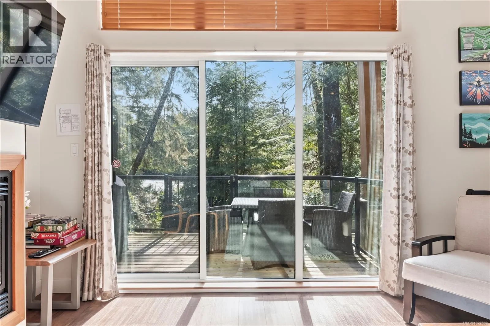 Located at The Cove in Ucluelet, this beautiful waterfront condo is 1162 square feet on two levels and has gorgeous ocean and forest views. On the entry level is the first bedroom with fully equipped ensuite bathroom, complete with deep soaker tub. Downstairs is the second bedroom and bathroom, as well as the spacious open plan living/dining/kitchen area. The living room features a cozy gas fireplace. Both living area and bedroom have floor to ceiling windows which look out onto Spring Cove where you can watch the water rising and falling with the tide. Sliding doors from both rooms invite you out onto the large sundeck, and a pathway that takes you to the Cove in just a few steps. The kitchen has a full appliance package and boasts granite counters. An in-suite washer and dryer are also included. The unit comes fully furnished and equipped and is ready to move into. Located a short walk from the Wild Pacific Trail and the Lighthouse, and with nightly rentals allowed, this is your chance to own an attractive investment property which can be self-managed, or possibly looked after by the well-established brand and management company currently handling it. (id:27476)