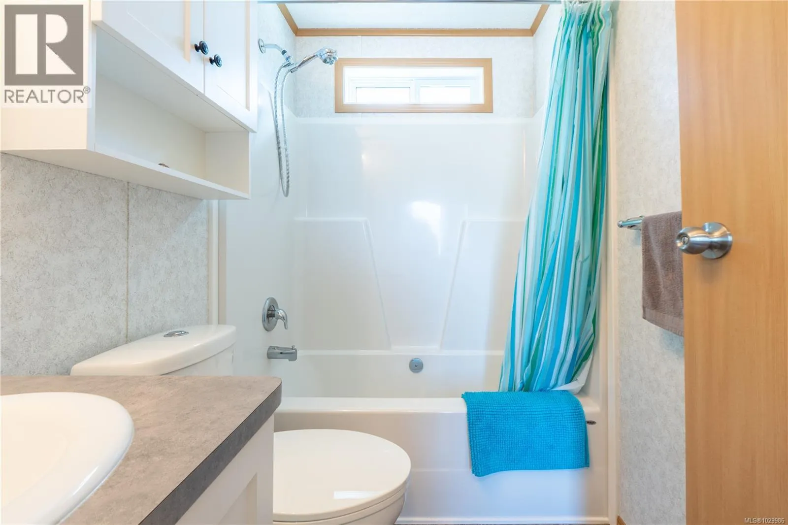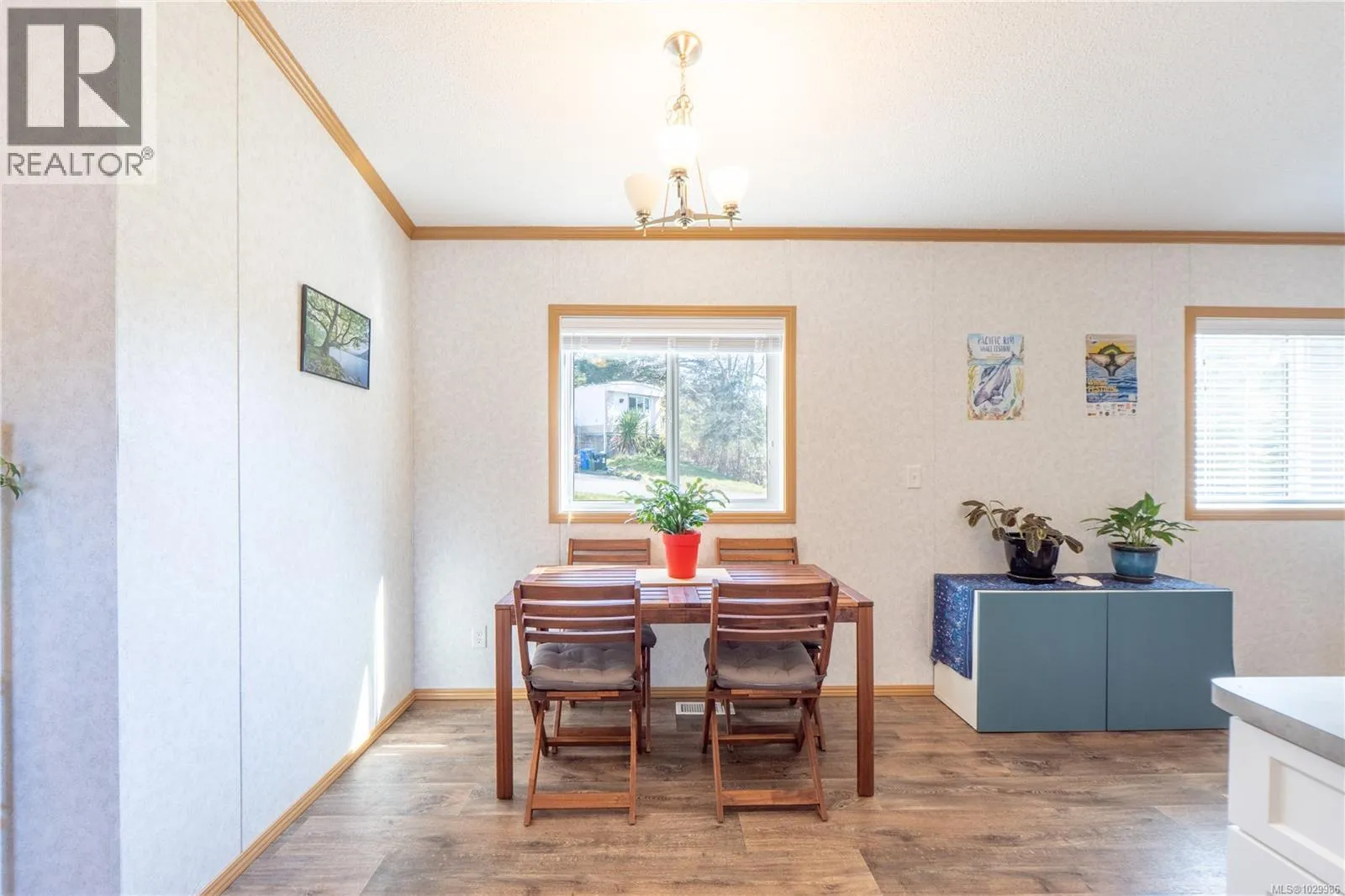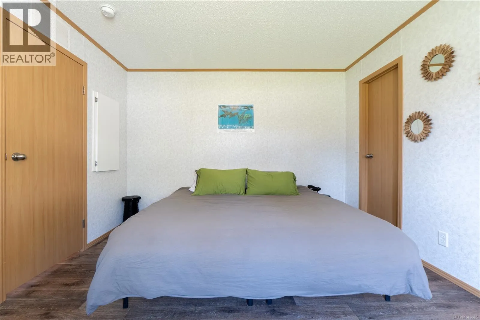Like new modular home at Whispering Pines. Sunny 2-bedroom 2 bath home located at the end of a crescent. Most windows are south facing affording plenty of natural light in the open concept living areas with vaulted ceilings. Kitchen with L-shaped counter, pantry & plenty of cabinet space. Separate laundry room, accessed from kitchen, with secondary entry/exit & sunny deck. Main bedroom features large soaker tub & walk-in closet, second bedroom at opposite end of home with adjacent bathroom. Easy care linoleum flooring throughout & high efficiency electric furnace. Exterior entry crawl, plus shed on concrete pad provide extra storage room. Trail access across street to Marine Drive with proximity to Big Beach & Wild Pacific Trail. Excellent starter or retirement home, or this property also lends itself nicely to a roommate situation with space for parking on either side of home. Possibility for expanding yard/garden space with Manager approval. (id:27476)