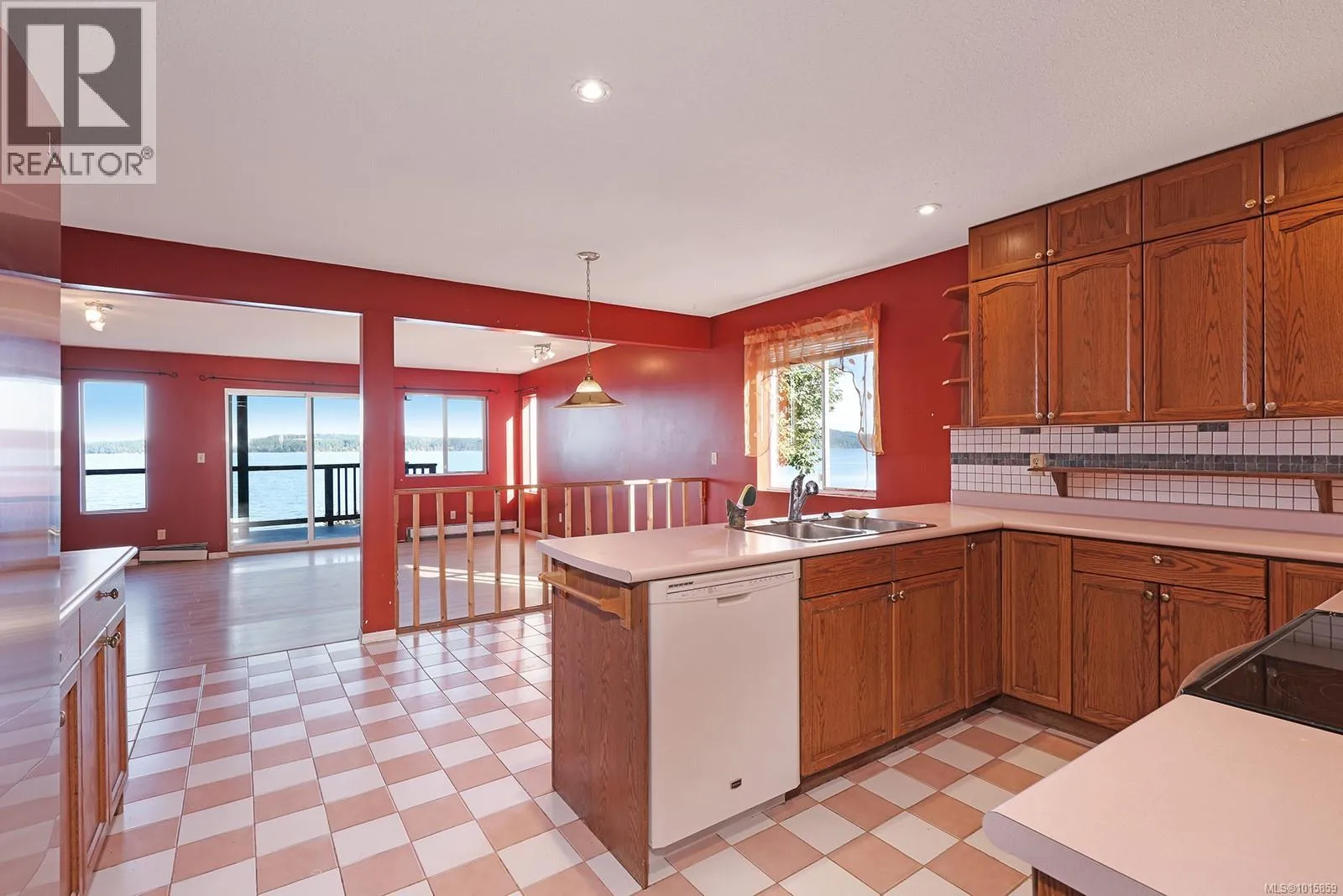 Welcome to your waterfront dream in charming Union Bay. This massive 4000+ sq. ft. home offers unparalleled views to the east across Baynes Sound. Greet the sunrise from your private upstairs balcony and luxuriate in the massive ensuite off the primary bedroom. The main home's three bedrooms and three bathrooms provide ample space for family living. Entertain from the large balcony and watch sailboats drift lazily-by or storms roll-in dramatically from the comfort of two spacious living rooms. Abundant natural light complements the high wallsâperfect for your art collection. A generous office overlooks the living area, while a flexible ground-floor space offers the ideal home for your studio, workshop, library, or gym. The downstairs in-law suite provides a private retreat for friends and family. While this extraordinary property needs updating, its proximity to town and solid bones make it an exceptional opportunity to create your custom oceanfront estate. (id:27476)