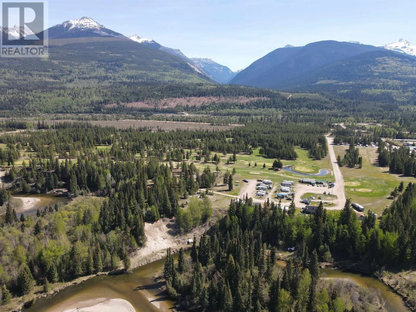 Over 178 acres of mixed RC2 (Recreational Commercial) and RU (Rural) zoned property, with approximately 2,500 feet of frontage on Highway 5 North. Two separate parcels/titles. Seasonal 9 Hole Golf Course with alternate tees, and a club house with liquor and food license. Two cottages, 22 half-serviced RV sites, 14 full-serviced sites, and 10 non-serviced sites for tents/RVs. Golf Course sits on a flat plateau facing potential future Glacier Destination Resort, with year round skiing if the project is realized. Minutes to the newly upgraded airport. Salmon-bearing McLennan River and trout bearing Swift Creek traverse the property. Water license. Rooms to add GO-CART and driving range. Please contact listing agent for more info. Buyers to verify all deemed important. (id:27476)