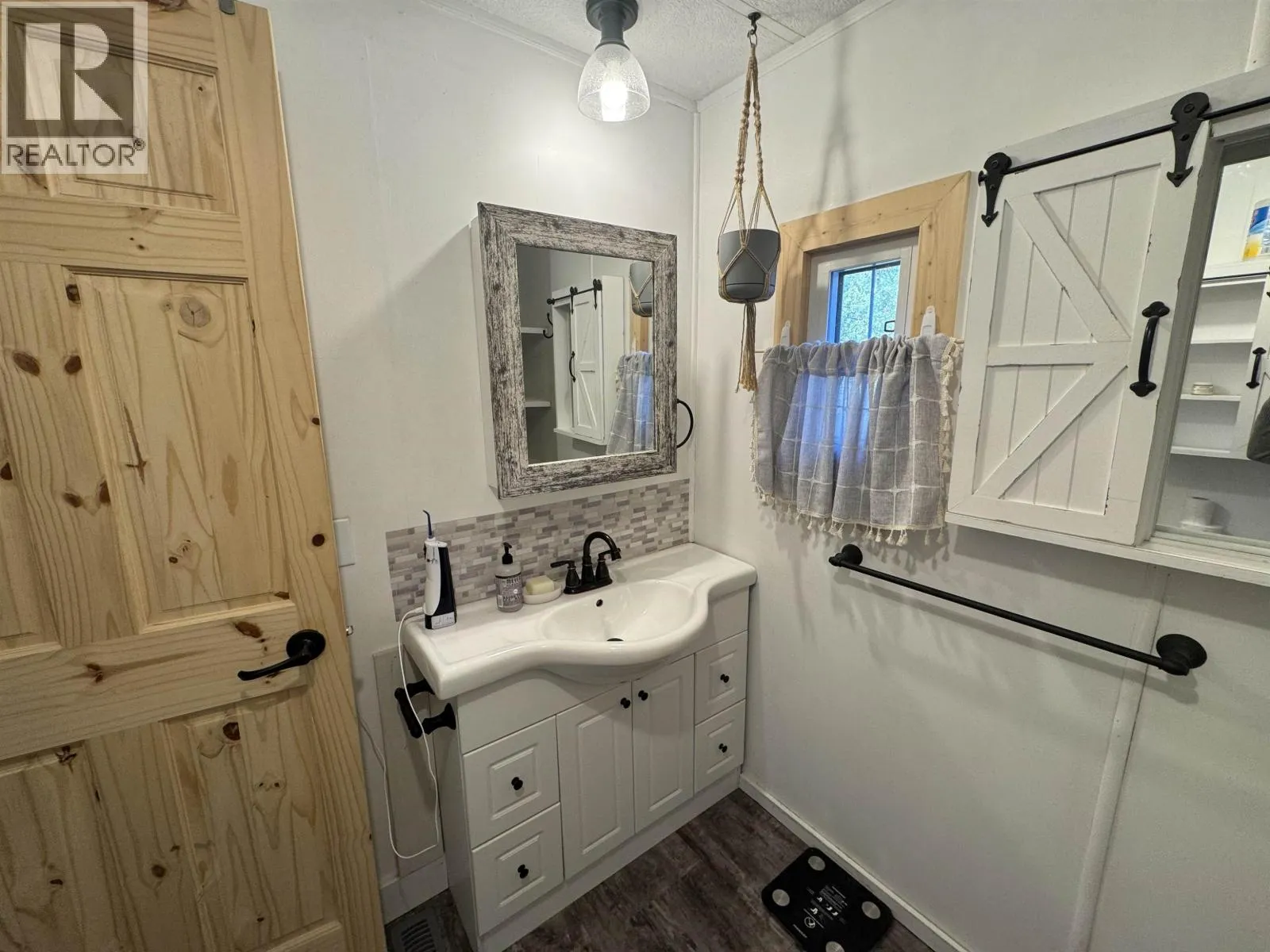 Affordable Starter home or perfect size for retirement! 1400 sq ft of living space, tastefully decorated with lots of upgrades including new windows, gorgeous knotty pine doors and updated bathroom. Enter into a huge mud room with a cozy warm wood stove, helping with the heating cost. 3 bedrooms, walk-in closet plus a bonus den/office space. Kitchen is compact yet very functional with lots of cupboard space and leads into the living room that is bright and cheery with new luxury vinyl flooring. Huge fenced yard has sundeck and lovely mature trees giving lots of privacy. 2 large storage sheds plus a covered wood shed are an added bonus. Like gardening? 3 raised garden beds are ready to go. Sit back and enjoy the surrounding mountain views! This home is a must see to be appreciated. (id:27476)