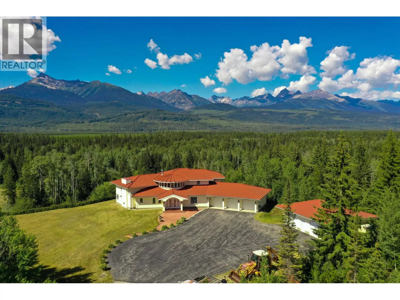 Discover a world where alpine grandeur meets a private, riverfront sanctuary. This exceptional 98-acre estate in Valemount is poised at the heart of the "Billionaires' Backyard," a destination attracting discerning individuals for its world-class mountain recreation. With an airport expansion & potential ski resort on the horizon, this is your chance to own a piece of a burgeoning global playground. The centerpiece of this magnificent property is a Spanish Colonial Revival home, artfully designed to embrace its surroundings. From the dramatic 18-ft ceilings to the expansive windows, the home frames a living masterpiece with views of Mt Trudeau, Mt Terry Fox, and the distant peaks. With 4-bedrooms and 4-bathrooms, the open and inviting layout is perfect for hosting gatherings, with seamless transitions between indoor and outdoor living. Land itself is an amenity, featuring 98 ac zoned for subdivision (RU2), a cleared 4.5-ac hay field, and an unrivaled location on the Mclennan River. Also on Commercial C8072122. (id:27476)