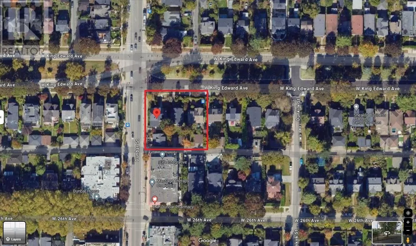 Potential 19,537 SF Land Assembly in the heart of Dunbar. Located on the Southeast corner of Dunbar Street and the tree lined West King Edward Avenue. Currently zoned R1-1 with the options to develop townhomes & seniors residence. Higher density rental and commercial property re-zoning is possible. Potential to re-zone to RR-3B Residential Rental / Retail Ground Floor, 3.0 FSR, Up to 6 stories with 130 Feet of commercial frontage on Dunbar Street. Beautiful City, Ocean and Mountain views from the upper floors of a new development. A great neighbourhood to call home. Just steps to Stong´s Market, Shopper and London Drugs, public transportation, schools and parks. Buyers must contact the City of Vancouver to verify all matters regarding land assembly development. (id:27476)