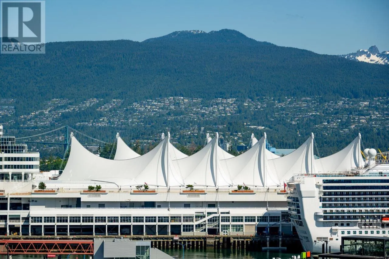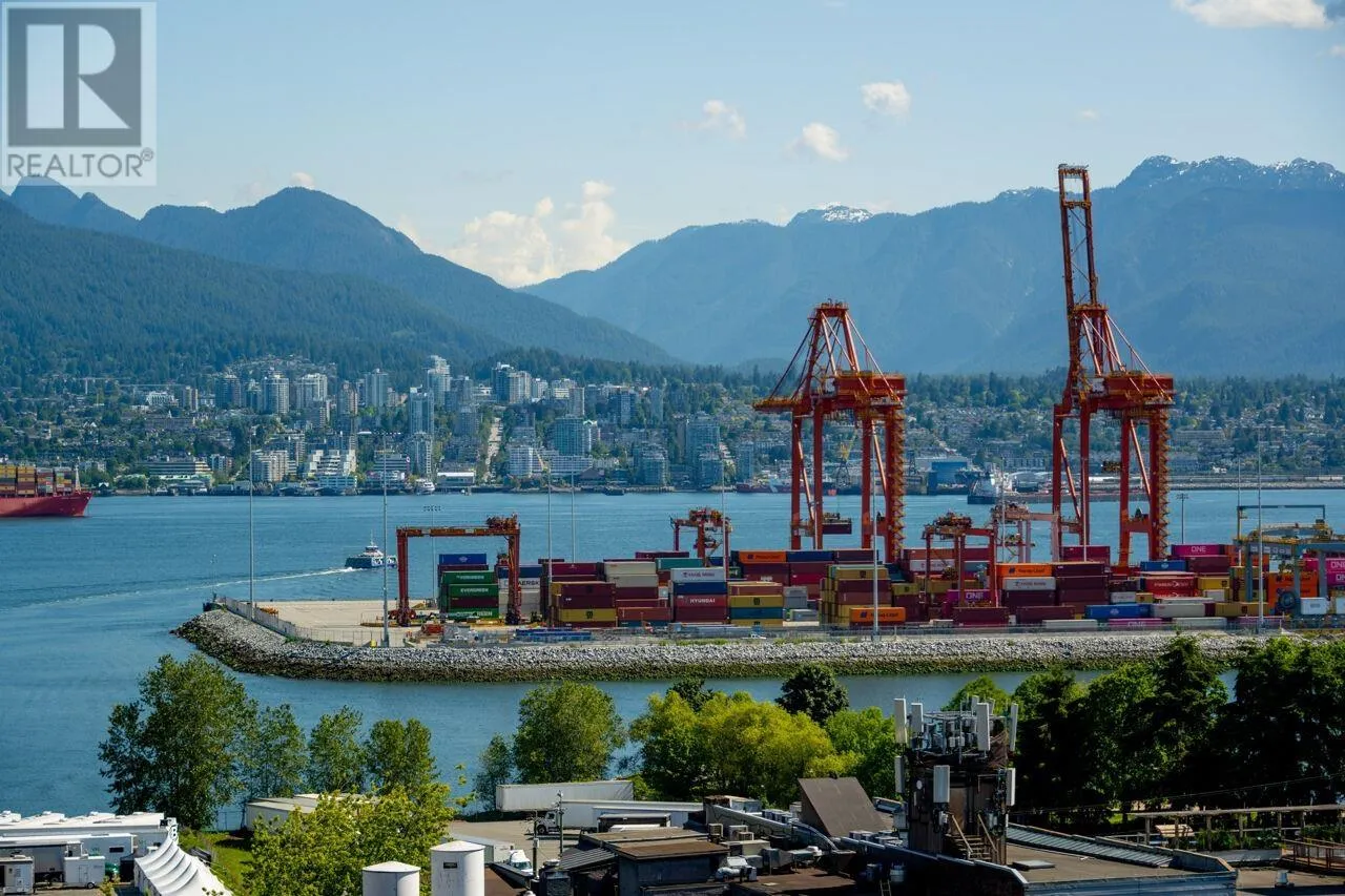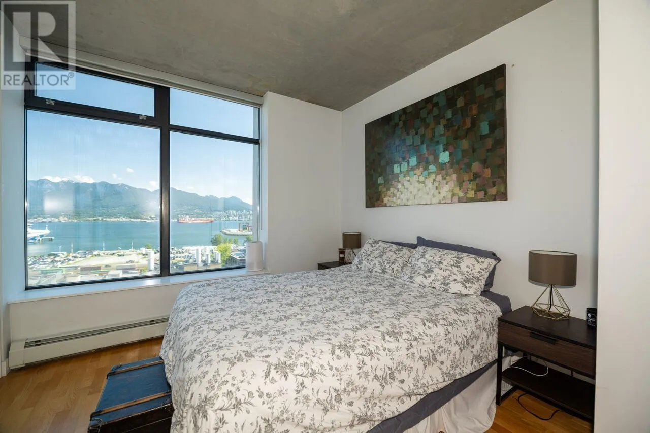 NORTH SHORE MOUNTAIN AND CITY VIEWS! 992 sq.ft. 2nd bdrm + 2 bathrooms at WOODWARDS W32! Located in historic Gastown, features include bright NW facing corner unit w/large balconies, 9'polished concrete ceiling, floor to ceiling windows, bamboo laminate floors, custom Eggersman kitchen w/soft close doors, S/S appliances, gas cooktop, glass backsplash tile & stone countertops. Spa inspired bathroom w/separate glass shower & tub. Amenities at the " CLUB W" features 4,600 SF including outdoor kitchen w/BBQ wrap around patio, hot tub,gym, lounge & 360 degree views. 1 parking stall included. A MUST SEE WITH A SPECTACULAR VIEW (id:27476)