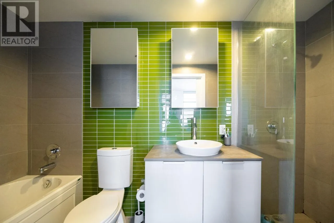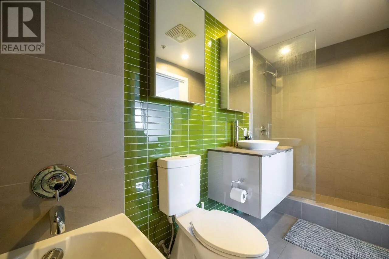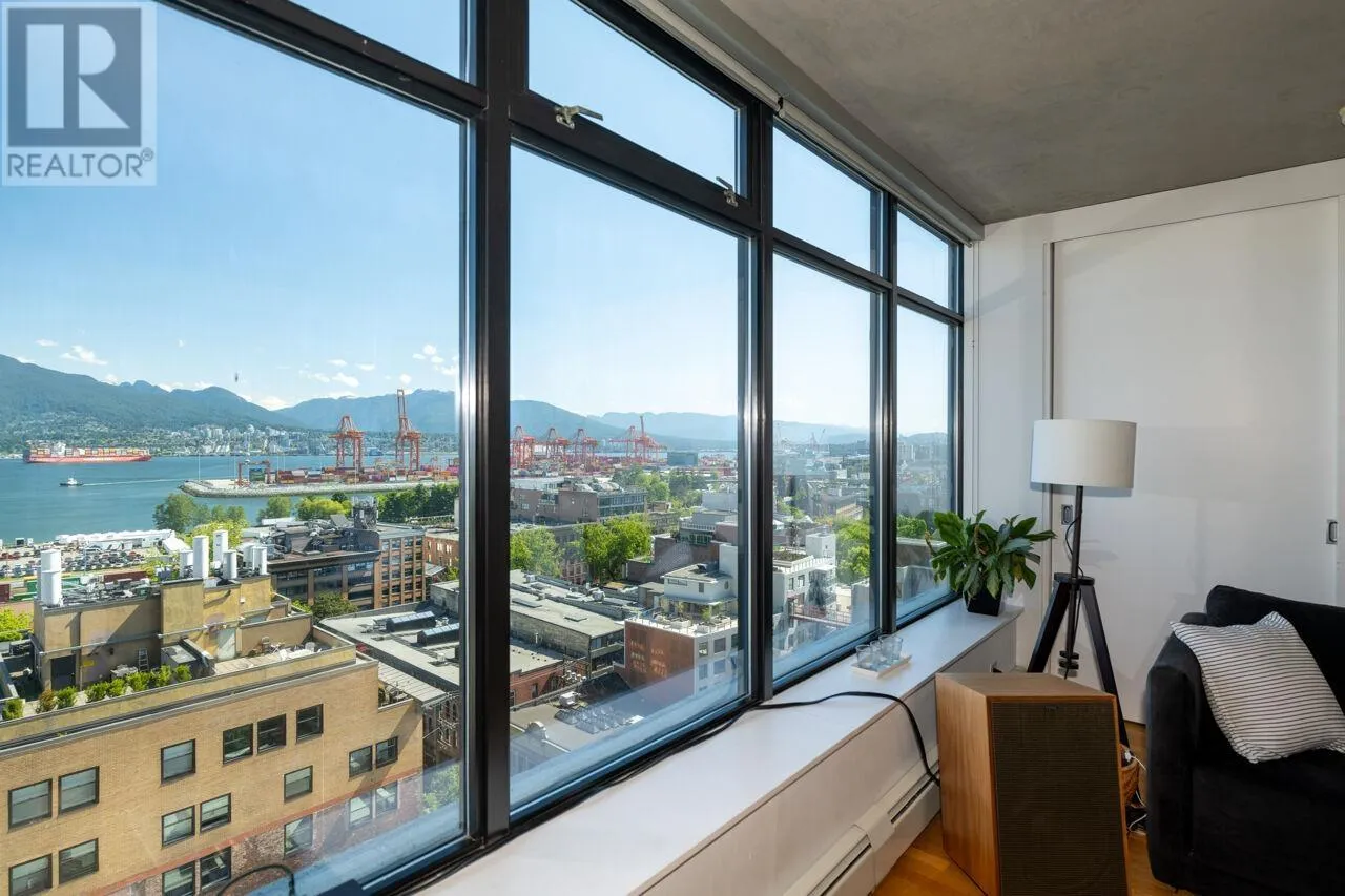 NORTH SHORE MOUNTAIN AND CITY VIEWS! 992 sq.ft. 2nd bdrm + 2 bathrooms at WOODWARDS W32! Located in historic Gastown, features include bright NW facing corner unit w/large balconies, 9'polished concrete ceiling, floor to ceiling windows, bamboo laminate floors, custom Eggersman kitchen w/soft close doors, S/S appliances, gas cooktop, glass backsplash tile & stone countertops. Spa inspired bathroom w/separate glass shower & tub. Amenities at the " CLUB W" features 4,600 SF including outdoor kitchen w/BBQ wrap around patio, hot tub,gym, lounge & 360 degree views. 1 parking stall included. A MUST SEE WITH A SPECTACULAR VIEW (id:27476)