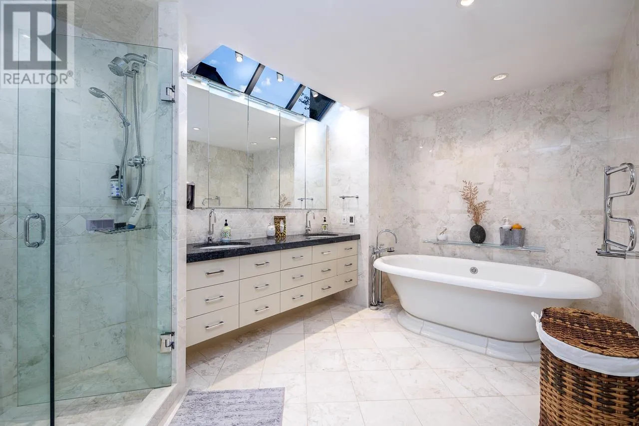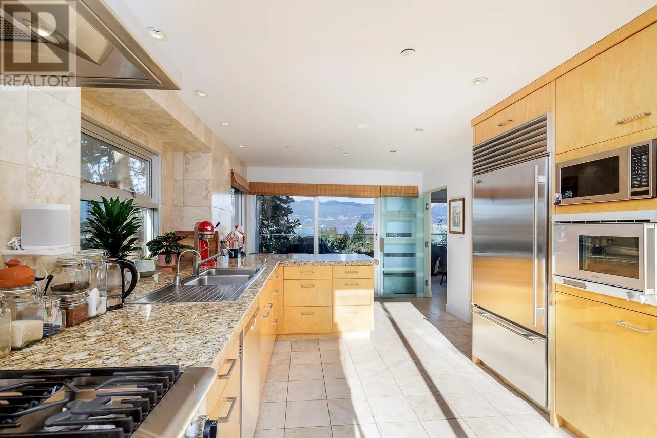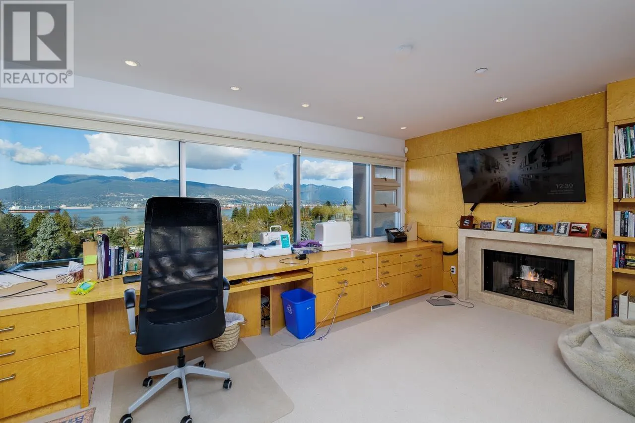 VIEWS! Best Point Grey you can find! Completely rebuilt in 2002 using state-of-the-art materials. The main floor features a perfect open floorplan for parties and gatherings. The stunning gourmet kitchen with ocean views also features a sliding door leading the the outside private front lawn and BBQ area. In the upper level is the spacious office with breathtaking views and a partly covered, very private sitting area overlooking the ocean and mountains. Below are 3 bedrooms and a den that could be used as a 4th bedroom. The master bedroom comes with two walk-in closets and and exceptional master bathroom. The basement offers an oversized attached double garage with lots of storage space. The house even has a private elevator. (id:27476)