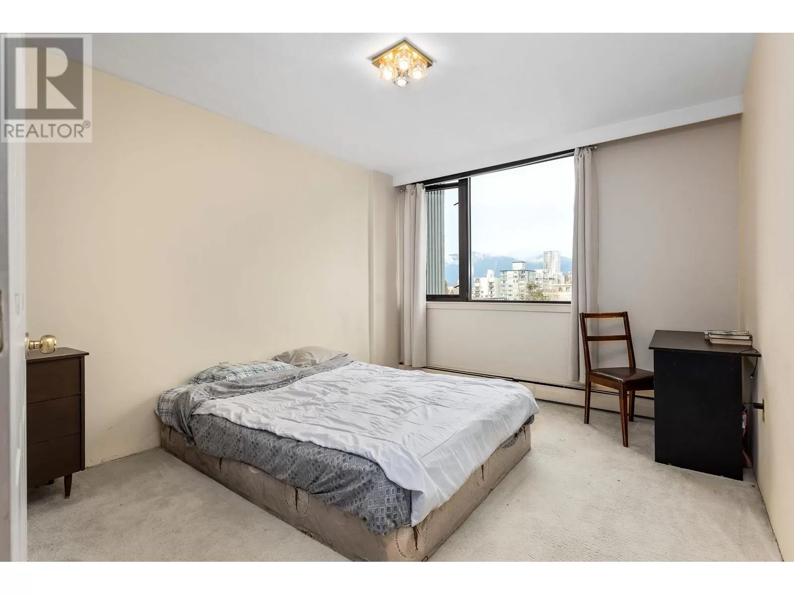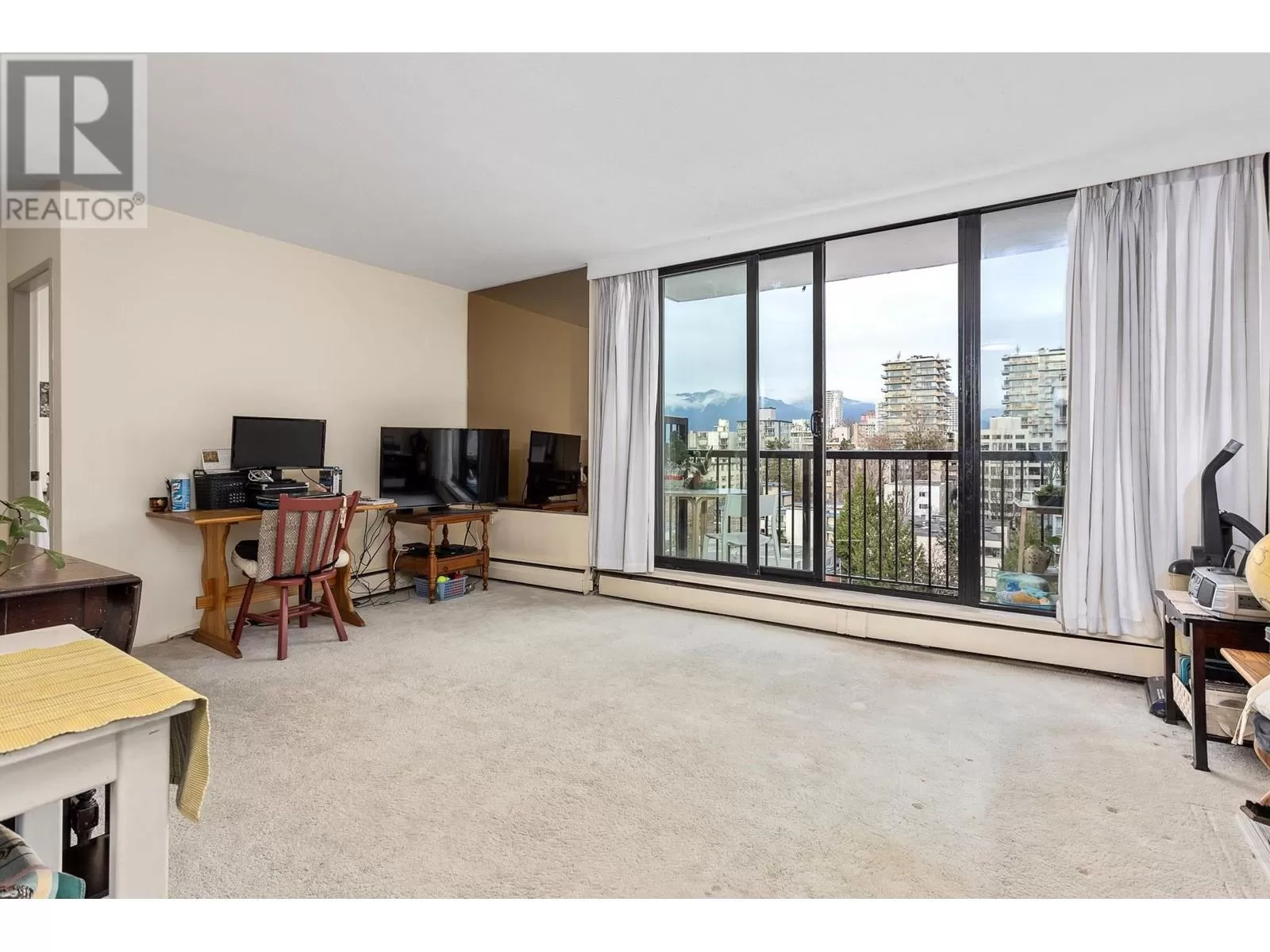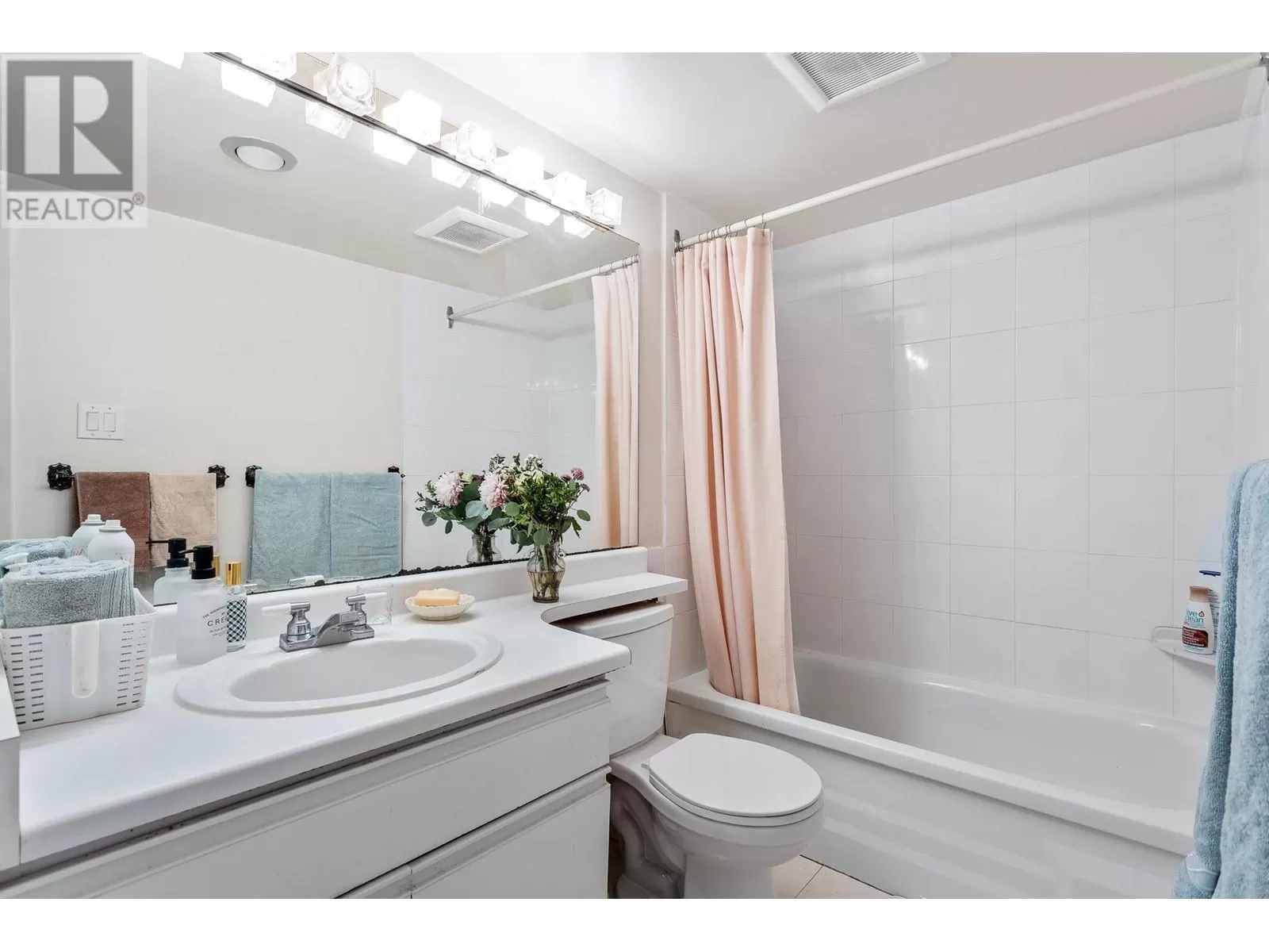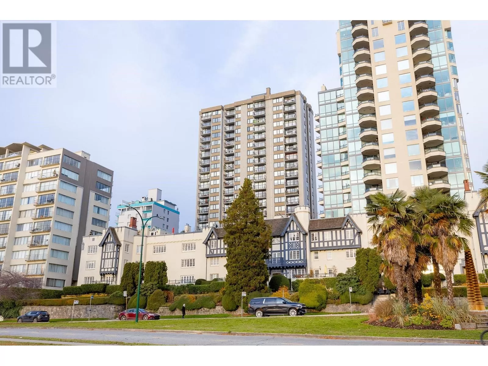 Rarely available concrete 2 bedroom, 1.5 bath apartment in Westsea Towers. Located in the heart of the Westend this bright unit has city and mountain views from every room. Spacious 812 square feet floor plan offers covered balcony, open living/dining and galley style kitchen. Main bedroom has ensuite bathroom plus there is powder room off spacious second Property Taxes are include in maintenance fee. (id:27476)