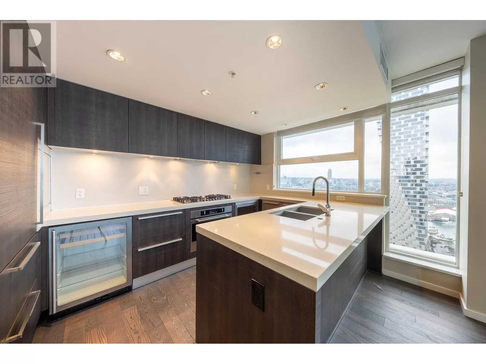 Open house Sat. July 19 2-4pm .An absolutely stunning two bedrooms unit nestled into the SW corner of the luxurious Maddox with breathtaking view from the 27th floor, Stunning 2 Bedrooms, 2 full Baths home plus large den (like 3rdrm). This unit features premium finishing's that include Italian Cabinetry & European appliances. Control 4 wireless system that can control light and other functions via smartphone. Hardwood flooring throughout air-conditioning, 24 hour concierge service, fitness room, rooftop area with social lounge, radiant heat in bathroom. Building designed to LEED standards with exceptional construction and energy performance. With walking distance to all the Yale Town amenities, Restaurants, Transit, Beach and Seawall! Truly a must see! (id:27476)
