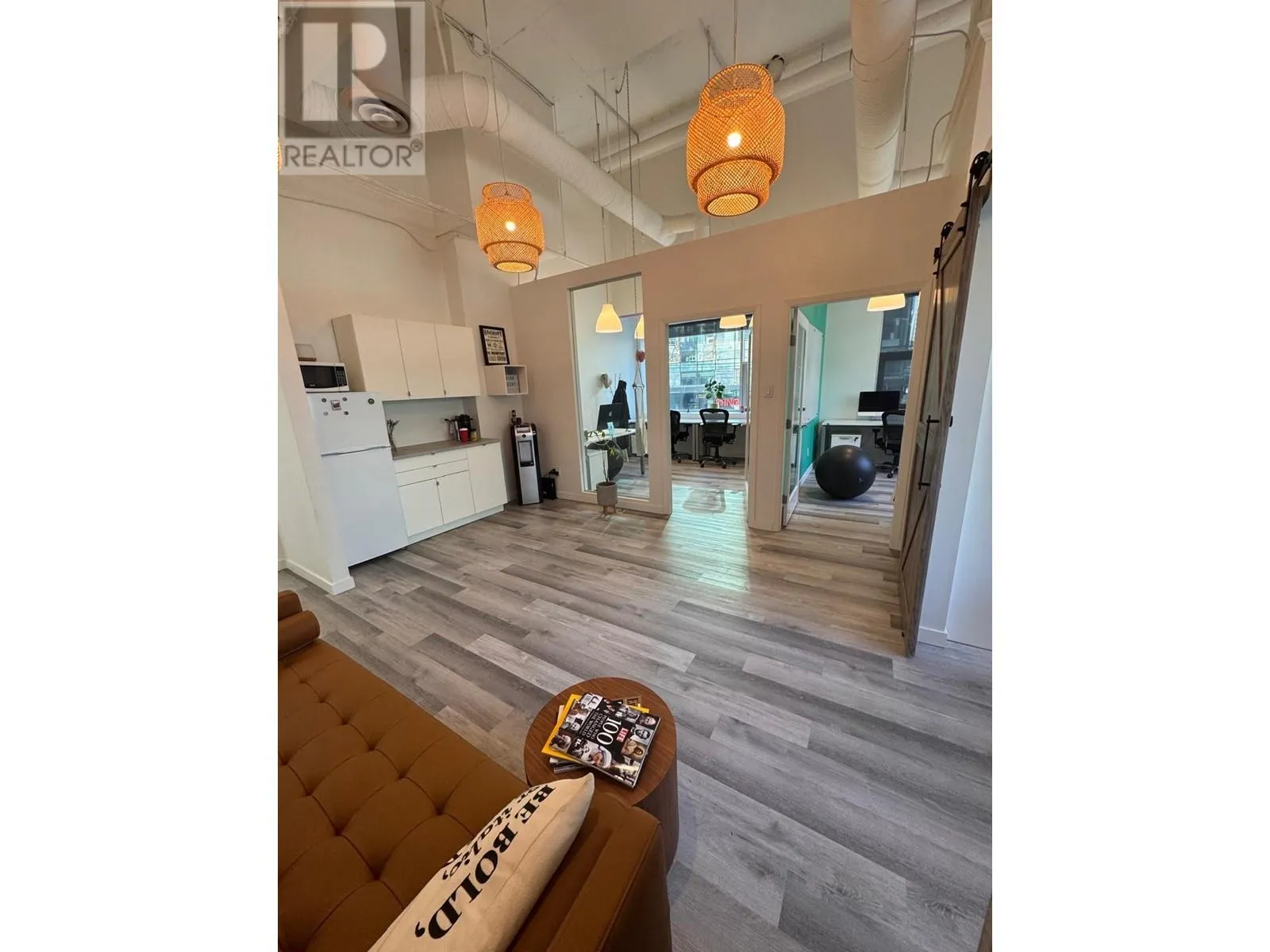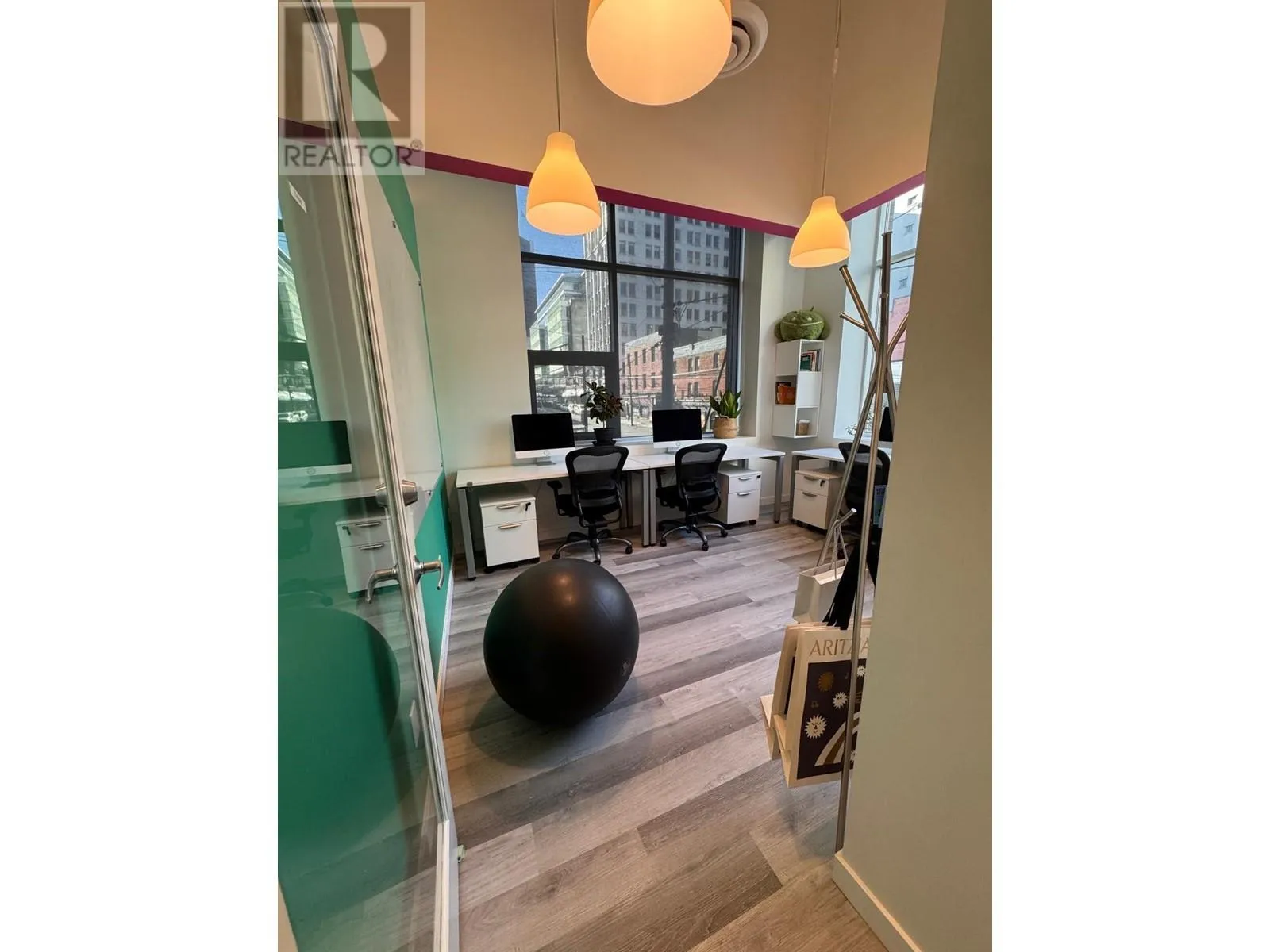 This modern, bright, and creative 735 square foot office space can be yours today! This unit is located within the highly rated professional office CONFERENCE PLAZA commercial strata on West Pender and Richards. Perfect location: just one block from Waterfront Station, Canada Place, and the Vancouver Financial and Business Center. Just a short walk to Pacific Center, public transit and restaurants. Comes fully furnished with wall mounted 72 in TV in the boardroom, boardroom table and chairs, custom built desks, chairs, etc. The current occupant is a marketing company, and they fully renovated the office with new contemporary vinyl plank flooring, paint, etc only a few years ago. The huge windows let in plenty of light, and the high ceilings make it feel like much larger than 735 square feet! Looking for a minimum one year lease. Heat, electricity, and internet included in the lease. Comes with one secure, underground parking stall. (id:27476)