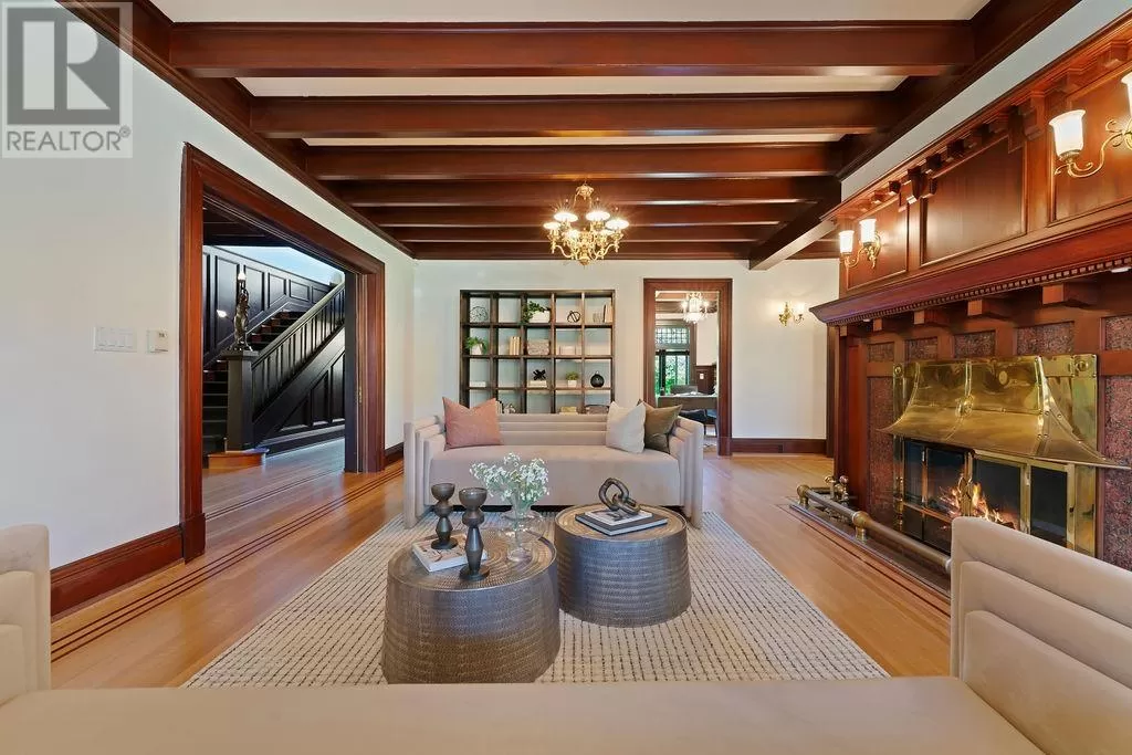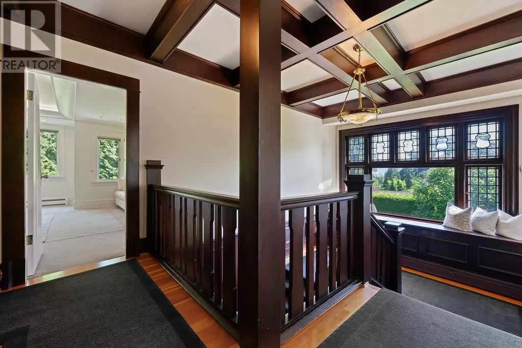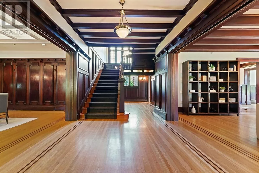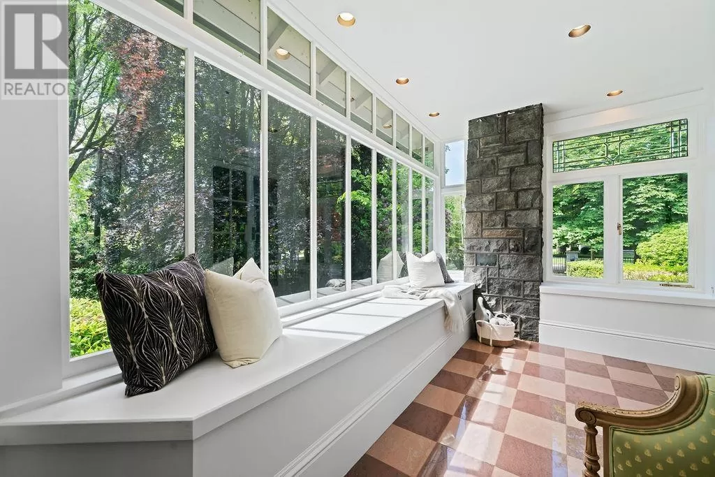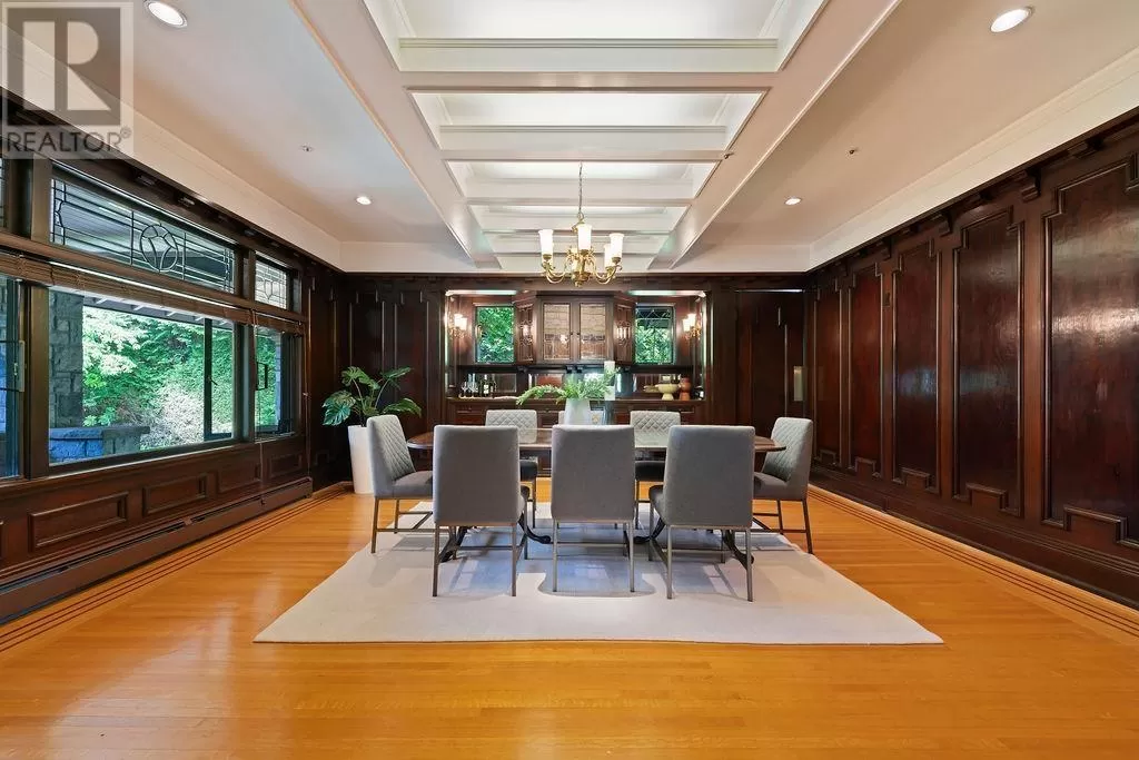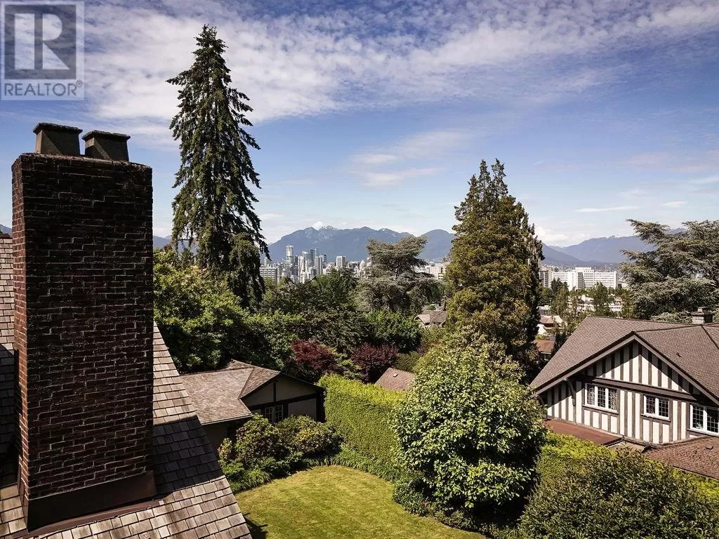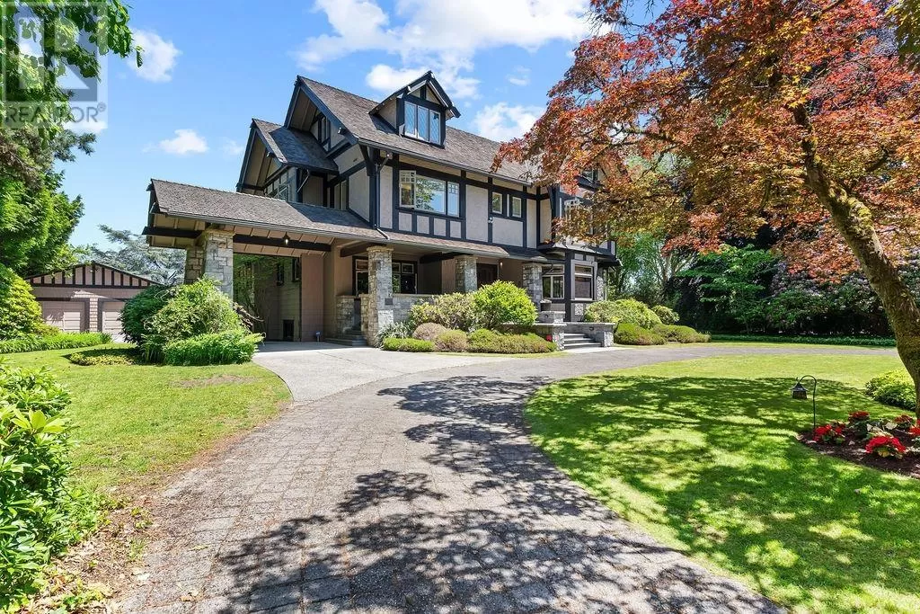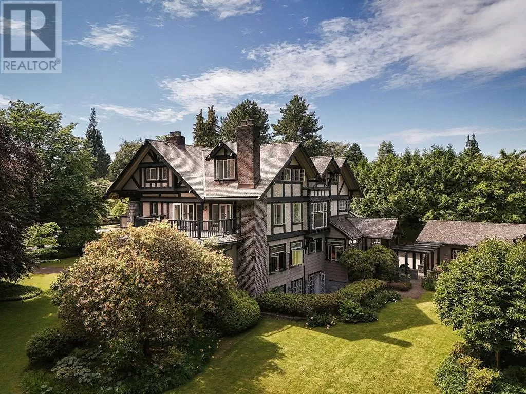 Exceptionally private Tudor estate nestled on an expansive 29,412 SF corner lot in the heart of the prestigious First Shaughnessy neighbourhood. This impeccably maintained home boasts 8,401 SF of living space across 4 levels. The main floor features an elegant & open family rm with soaring ceilings, adjacent sunroom & reading rm, a generous office, banquet sized formal dining rm, & a chef's kitchen with eating nook & butler's pantry. The 2 upper floors features views of downtown Vancouver plus 5 primary ensuites with walk in closets & spacious bathrooms, walk out patios & a laundry rm. The basement features a sauna & hot tub lounge & allows for a 1 bedrm walkout suite or large rec rm. Steps to shopping, restaurants, the city's best schools & 15mins drive to both downtown & YVR airport. (id:27476)