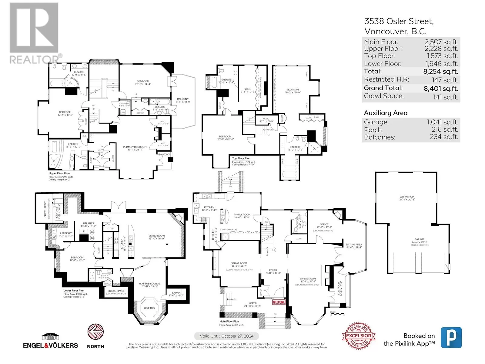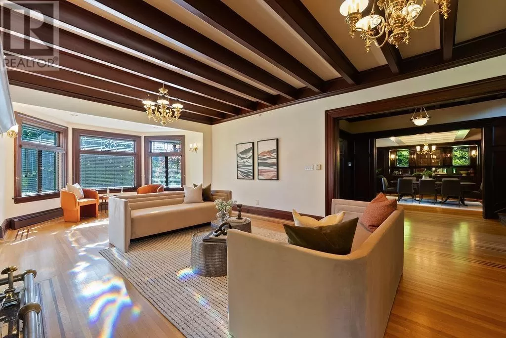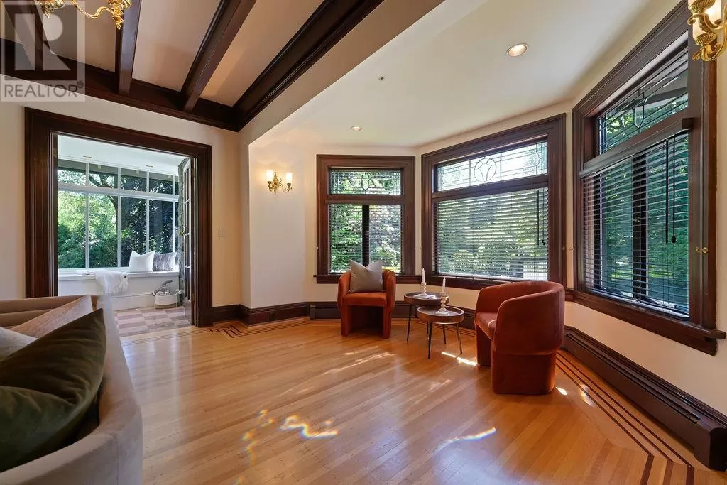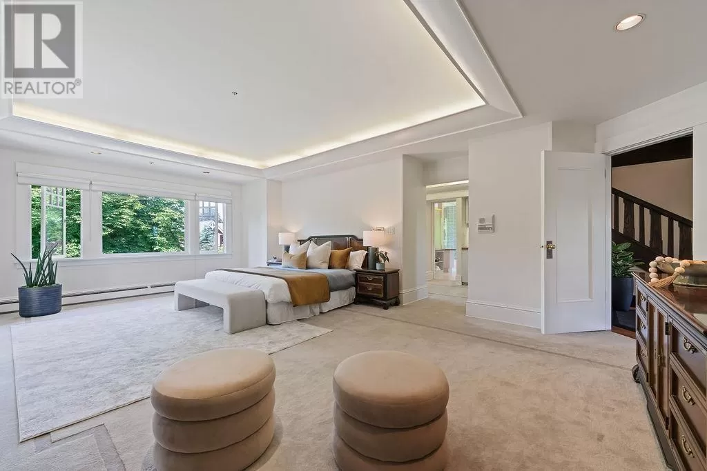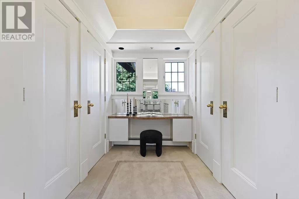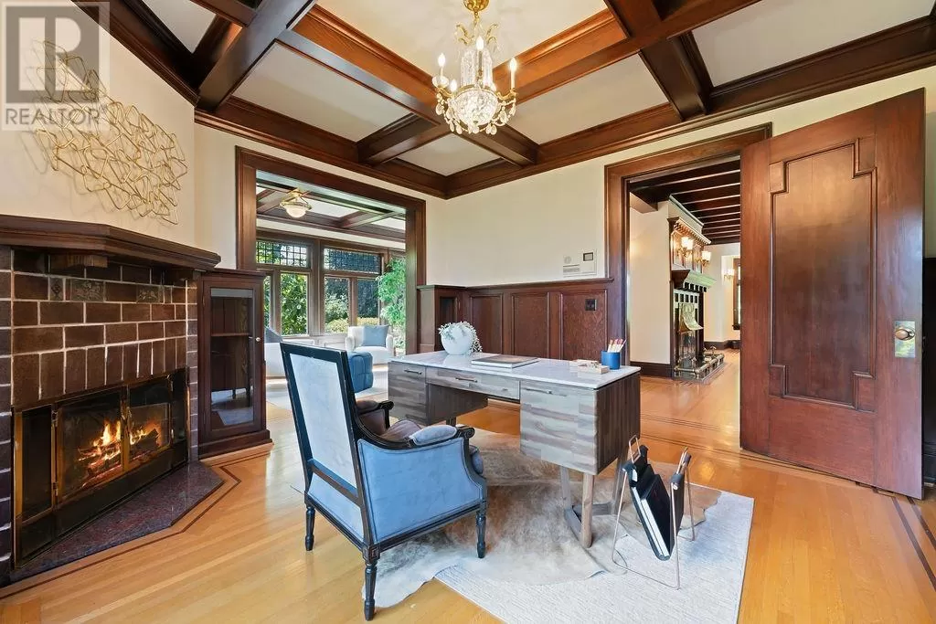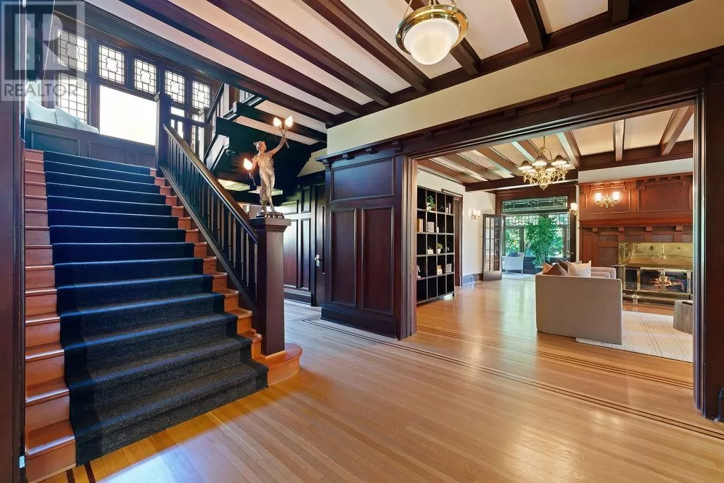 Exceptionally private Tudor estate nestled on an expansive 29,412 SF corner lot in the heart of the prestigious First Shaughnessy neighbourhood. This impeccably maintained home boasts 8,401 SF of living space across 4 levels. The main floor features an elegant & open family rm with soaring ceilings, adjacent sunroom & reading rm, a generous office, banquet sized formal dining rm, & a chef's kitchen with eating nook & butler's pantry. The 2 upper floors features views of downtown Vancouver plus 5 primary ensuites with walk in closets & spacious bathrooms, walk out patios & a laundry rm. The basement features a sauna & hot tub lounge & allows for a 1 bedrm walkout suite or large rec rm. Steps to shopping, restaurants, the city's best schools & 15mins drive to both downtown & YVR airport. (id:27476)