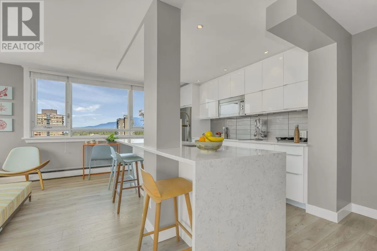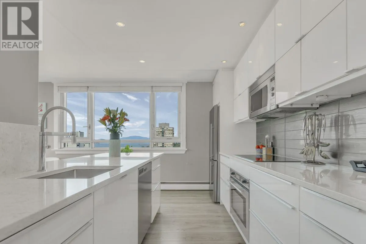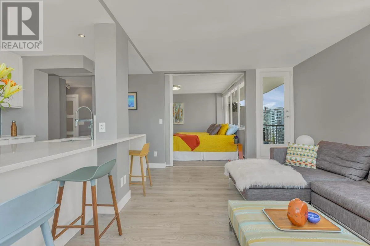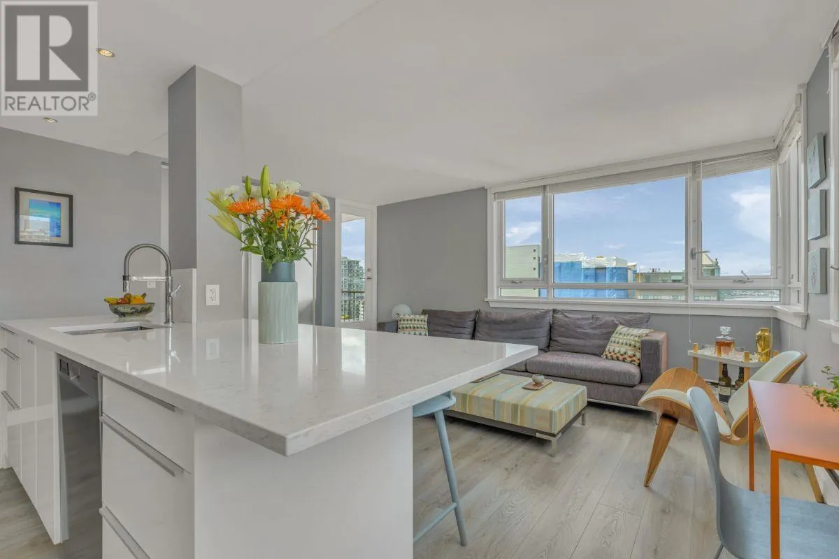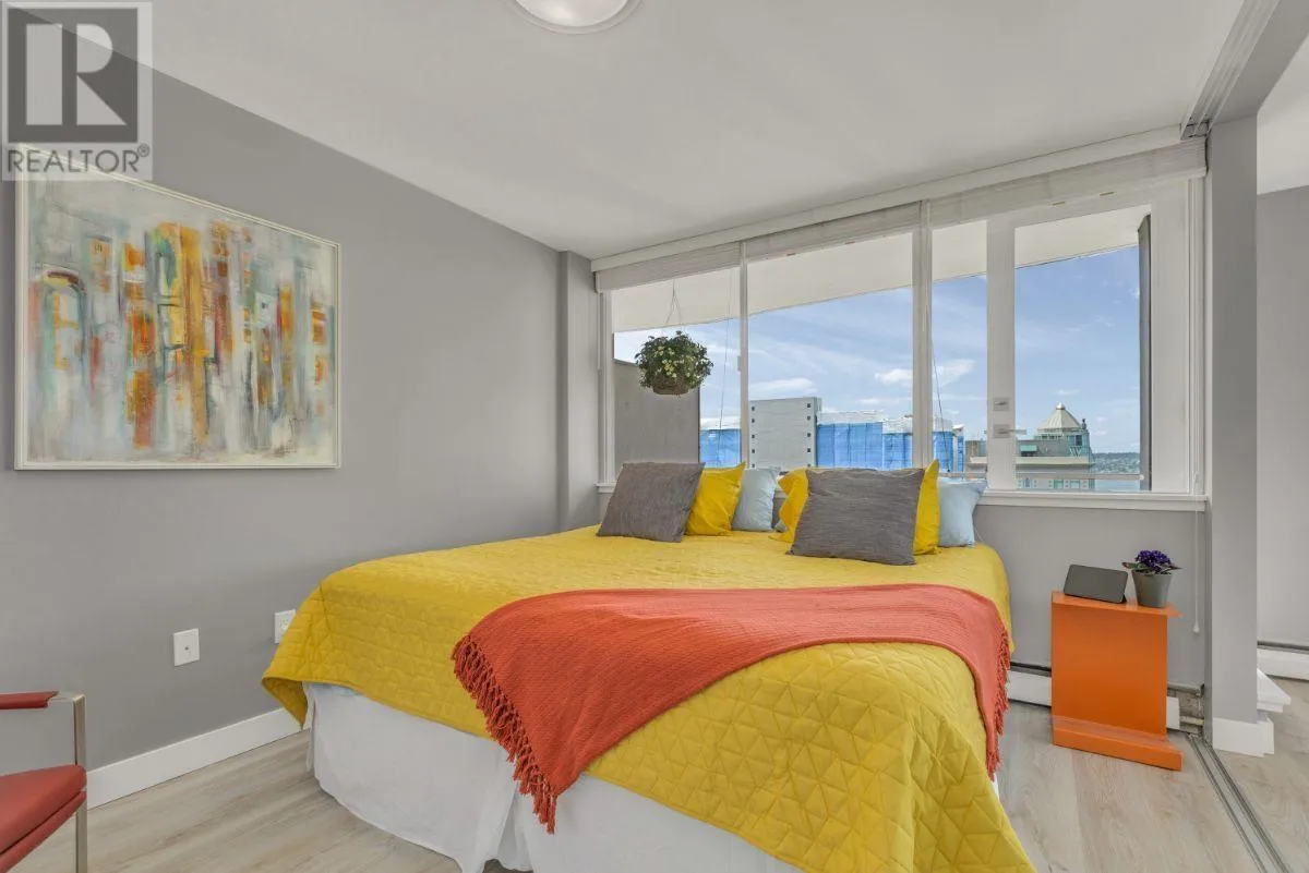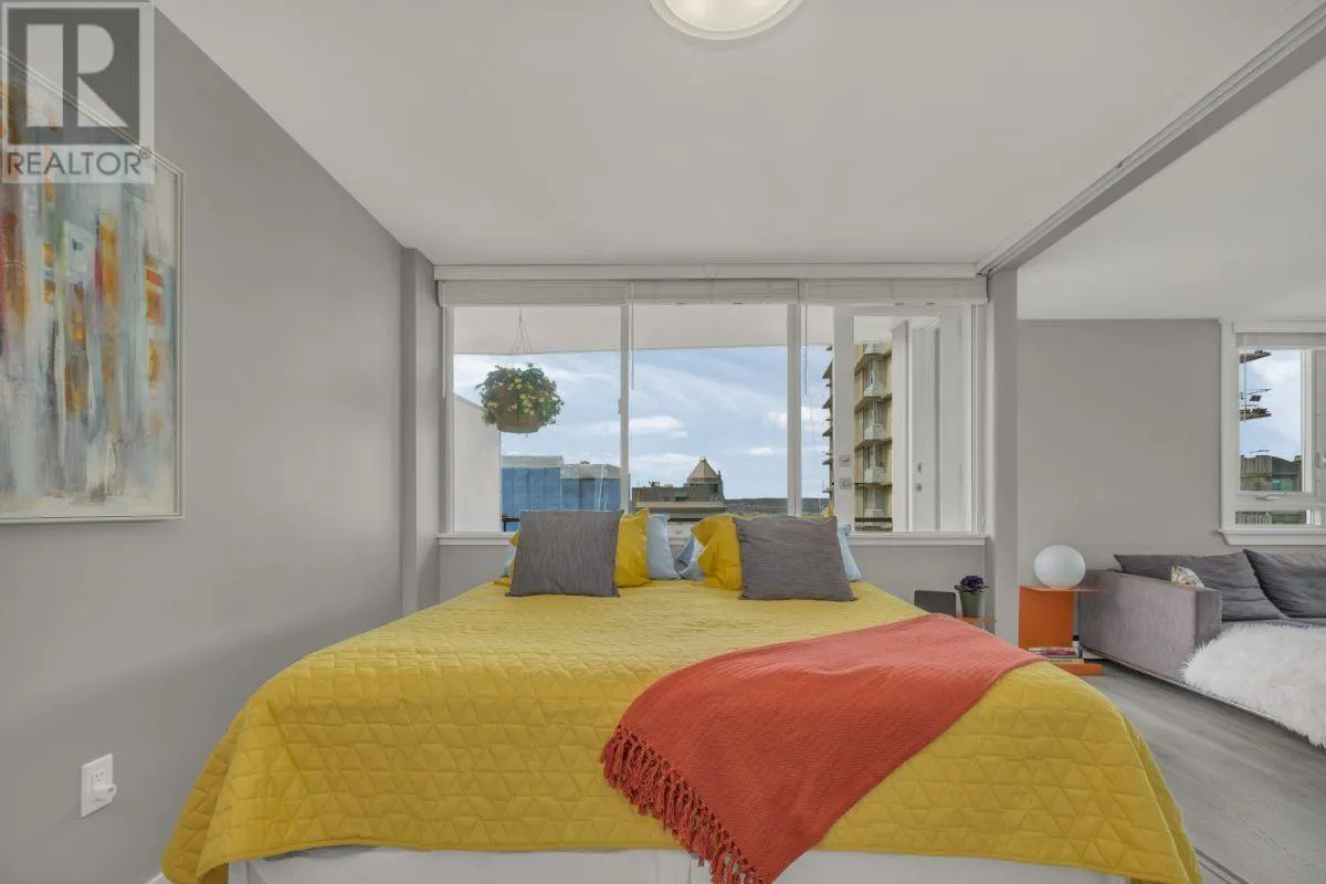 Exceptional English Bay location with spectacular ocean, mountain, park and city views. Fully renovated with great attention to detail. Quartz counters, new balcony door, designer paint, pot lights, bosch cooktop, Italian tile backsplash in the shower and much more. The sliding doors open to the spacious bedroom which can accommodate a king size bed. This corner suite enjoys a wonderful ocean cross breeze on those hot summer nights. Newer windows, recent roof, complete re-plumbing. Amenities include pool, sauna, laundry, gym, roof top lounges and decks all making this building its own little resort like residence. The El Cid is just short blocks from the beach and Stanley Park. Rentals allowed, 6 month min. No pets. Parking and storage included. Heat/taxes included in maintenance. (id:27476)