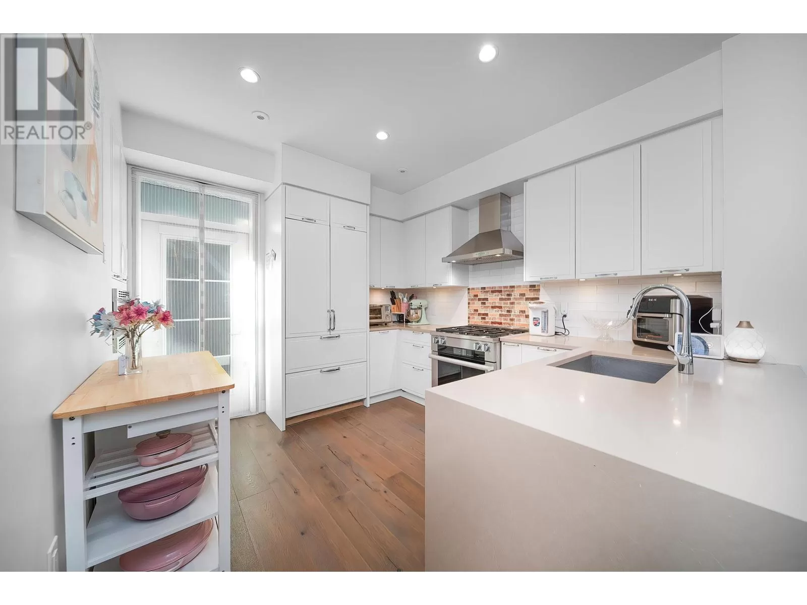 Stunning 3-bedroom + Den townhouse by Alabaster Homes, located on a quiet inner street in Marpole. This home features a premium Miele appliance package, central air-conditioning, and exquisite finishes. The spacious master bedroom boasts an oversized private balcony, in addition the large back patio is perfect for BBQs. Just a short walk to Sir Winston Churchill Secondary, Oak Park, and the new Marpole Community Center. Designed by Formwerks Architectural in a timeless early 20th-century Westside style. Easy access and ample street parking. School catchment: Sir Wilfrid Laurier Elementary and Sir Winston Churchill Secondary (IB Program). A rare find in a prime location! (id:27476)