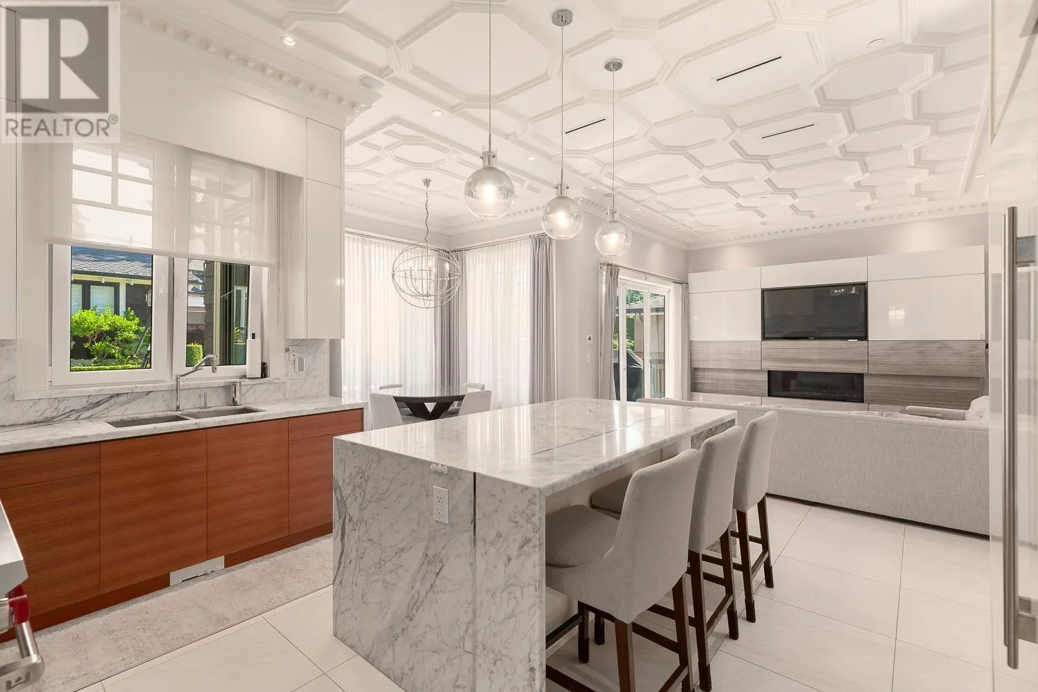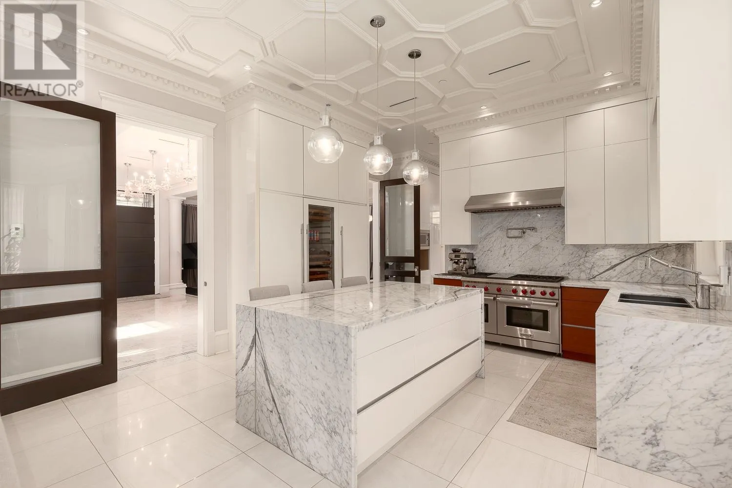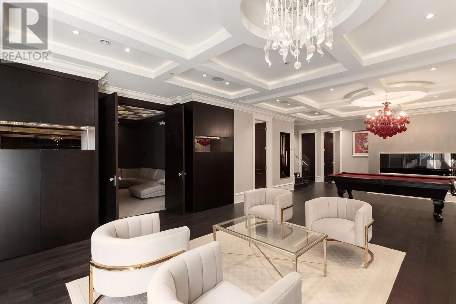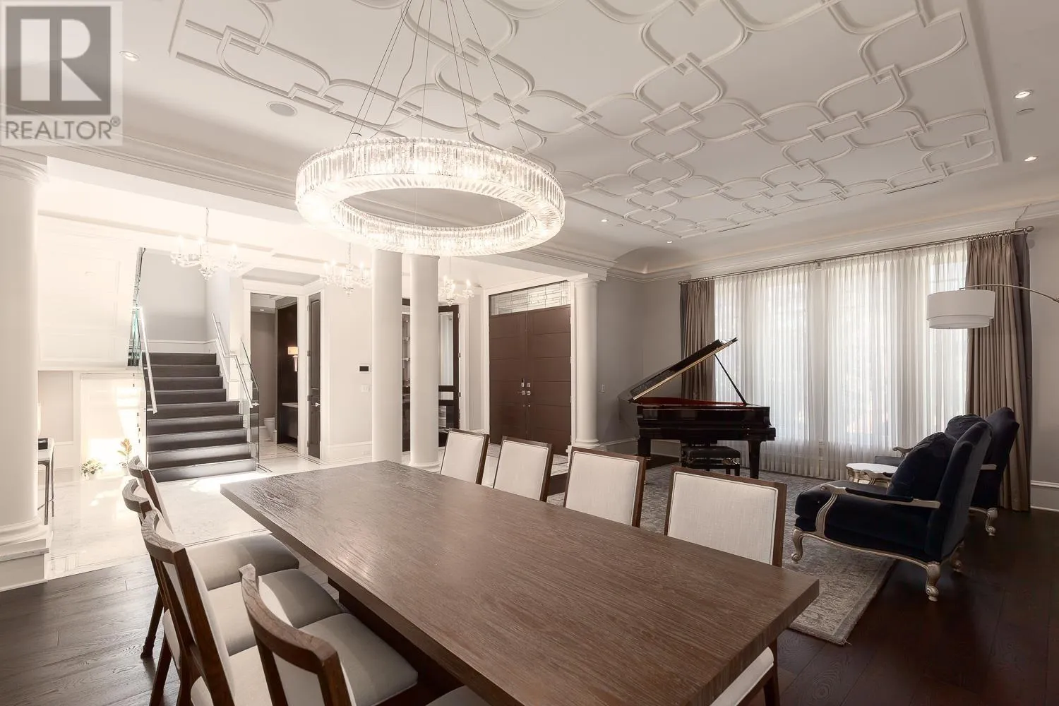 This exceptional custom luxury residence in the prestigious South Granville neighborhood redefines elegance and comfort. Designed with exquisite finishes, it features a gourmet kitchen with marble countertops, Sub-Zero and Wolf appliances, and a professional-grade wok kitchen. The upper level offers 4 spacious bedrooms, each with en-suite bathrooms. The bright lower level includes 2 en-suite bedrooms, an illuminated Onyx bar, an impressive wine display, and a state-of-the-art home theater and sauna. Additional highlights include a 4-car garage, A/C, advanced security, and a Control 4 system. The walk-out terrace, complete with a BBQ lounge, gas fireplace, and private garden/mini golf, offers a luxurious outdoor retreat. Walking distance to top schools, parks, shopping, and transit. (id:27476)