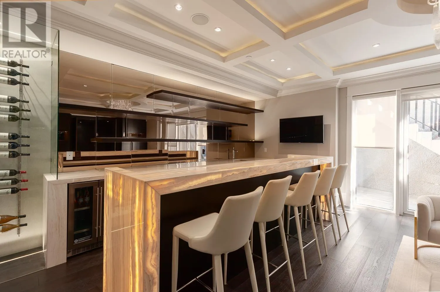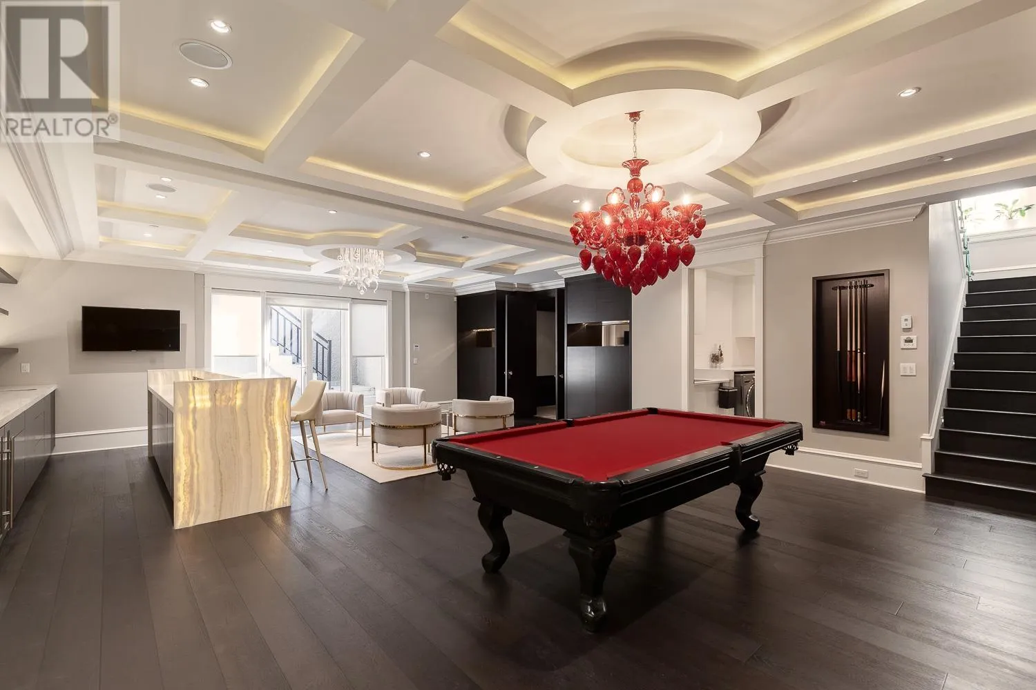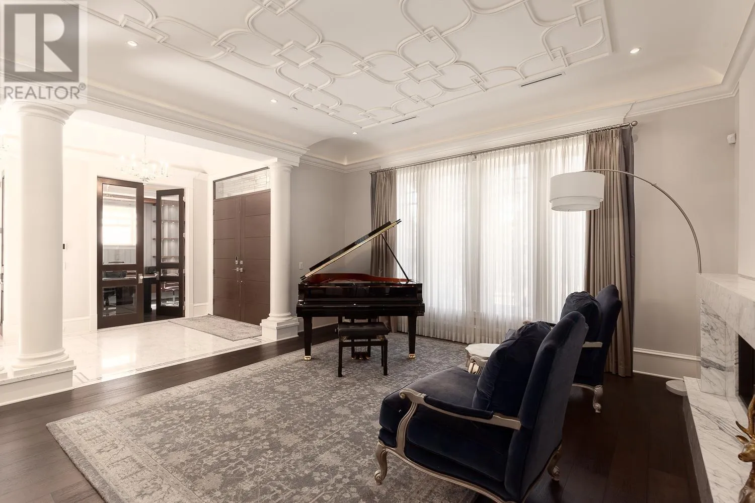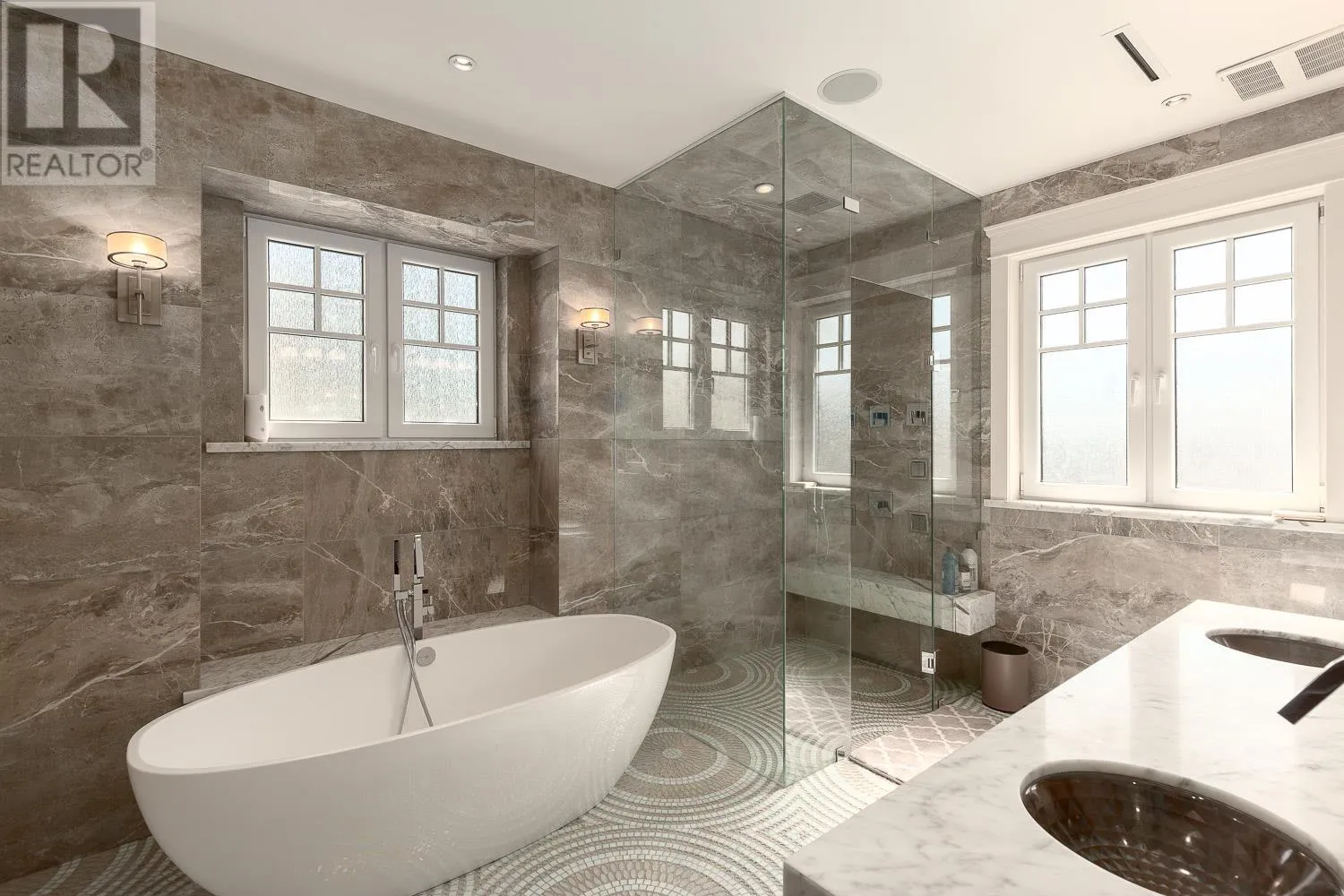 This exceptional custom luxury residence in the prestigious South Granville neighborhood redefines elegance and comfort. Designed with exquisite finishes, it features a gourmet kitchen with marble countertops, Sub-Zero and Wolf appliances, and a professional-grade wok kitchen. The upper level offers 4 spacious bedrooms, each with en-suite bathrooms. The bright lower level includes 2 en-suite bedrooms, an illuminated Onyx bar, an impressive wine display, and a state-of-the-art home theater and sauna. Additional highlights include a 4-car garage, A/C, advanced security, and a Control 4 system. The walk-out terrace, complete with a BBQ lounge, gas fireplace, and private garden/mini golf, offers a luxurious outdoor retreat. Walking distance to top schools, parks, shopping, and transit. (id:27476)