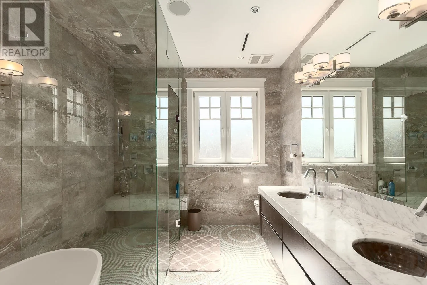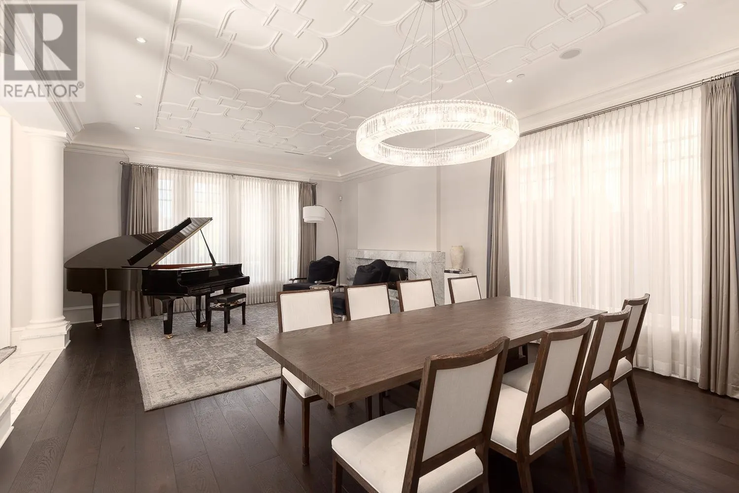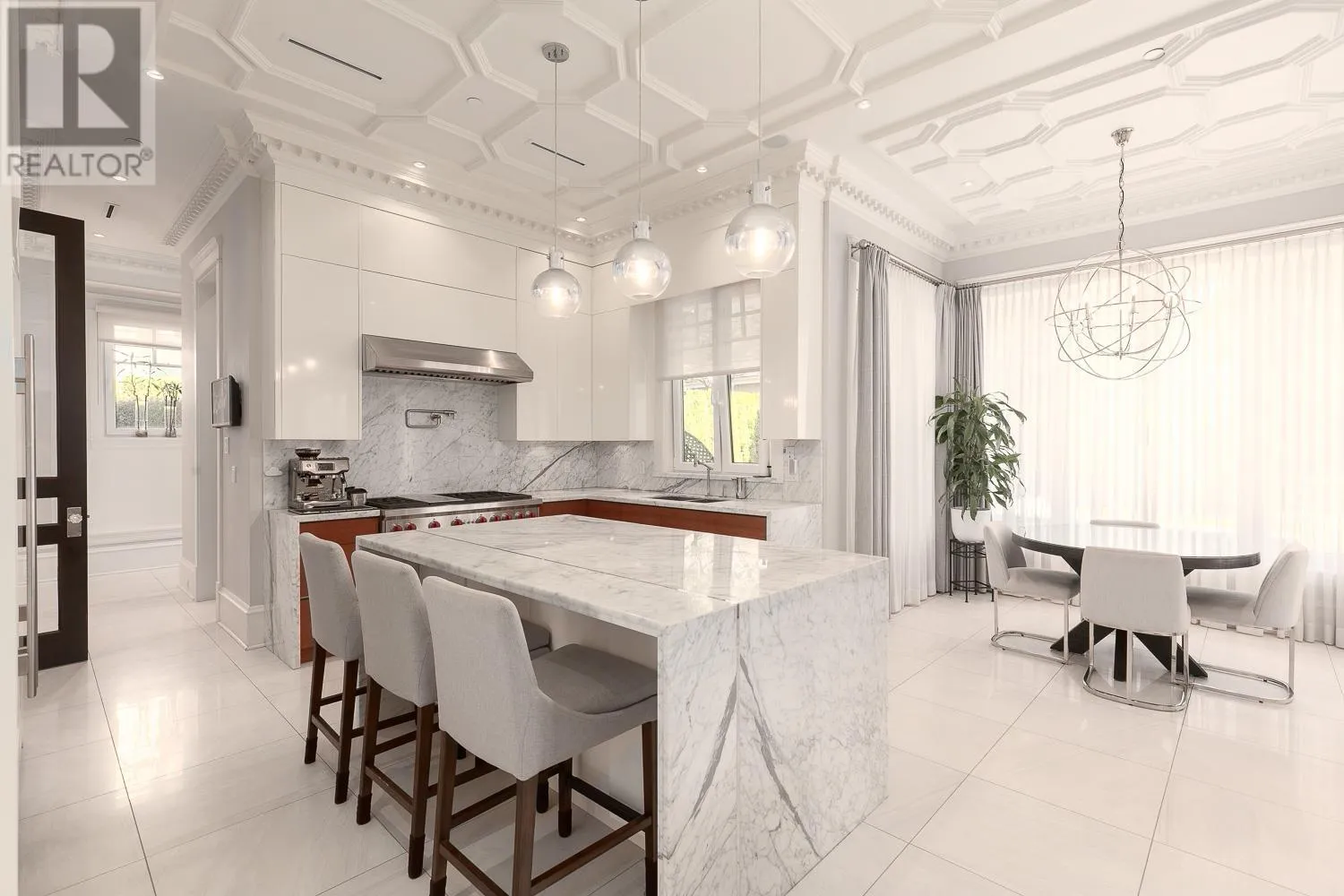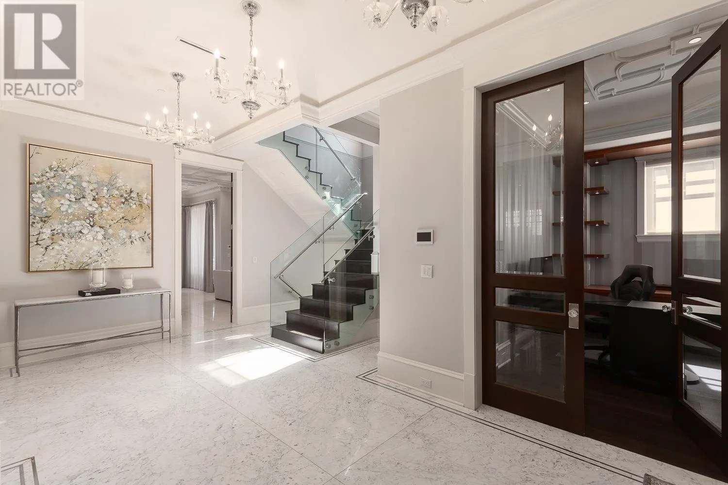 This exceptional custom luxury residence in the prestigious South Granville neighborhood redefines elegance and comfort. Designed with exquisite finishes, it features a gourmet kitchen with marble countertops, Sub-Zero and Wolf appliances, and a professional-grade wok kitchen. The upper level offers 4 spacious bedrooms, each with en-suite bathrooms. The bright lower level includes 2 en-suite bedrooms, an illuminated Onyx bar, an impressive wine display, and a state-of-the-art home theater and sauna. Additional highlights include a 4-car garage, A/C, advanced security, and a Control 4 system. The walk-out terrace, complete with a BBQ lounge, gas fireplace, and private garden/mini golf, offers a luxurious outdoor retreat. Walking distance to top schools, parks, shopping, and transit. (id:27476)