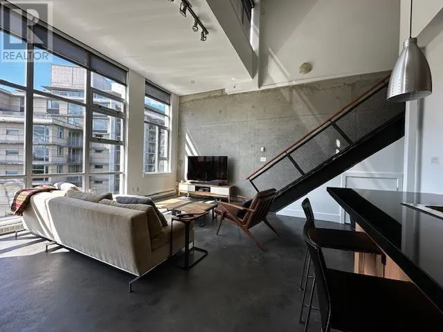 PH 603 at SOMA LOFTS in the heart of Mt. Pleasant. Rare 2-level PH loft, spacious 1210 sqft living space with 19 ft ceiling, concrete floors, exposed concrete walls and floor to ceiling windows. Lrg ROOFTOP TERRACE with 180 degree views of Dwntn/Nshore Mtns. Lrg 2 bdrm (with ensuite), 3 bath, plus Den/Flex. Open concept kitchen, upgraded S/S appliances with Wolf gas range. Automated solar shades, moveable fireplace. 2 side by side EV parking and storage locker. Concrete building with gym, garden terrace and bike storage. Steps to Main St./restaurants. (id:27476)