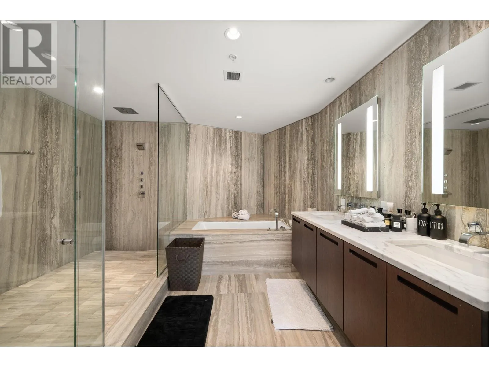 Experience luxury living at its finest in this world-class residence at the highly coveted Fairmont Pacific Rim Estates. Situated in Downtown Vancouver´s most prestigious Coal Harbour with spectacular panoramic water, city, and mountain views. This upscale 2 Bed, 2.5 Bath + Den home offers 2,321 SF of contemporary living space with an expansive 270 SF balcony. Discover high-quality finishes, floor-to-ceiling windows, and Italian Boffi kitchen equipped with top-of-the-line Miele & Sub-Zero appliances. Includes 3 parking stalls. Enjoy access to five-star hotel amenities including concierge, fully equipped fitness centre, outdoor pool, spa, and room service. Steps to scenic Seawall and Canada Place; close proximity to Stanley Park, high-end restaurants & shopping, financial district. (id:27476)