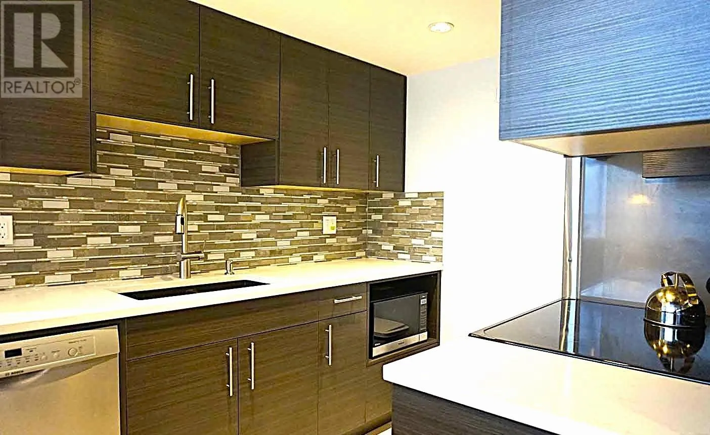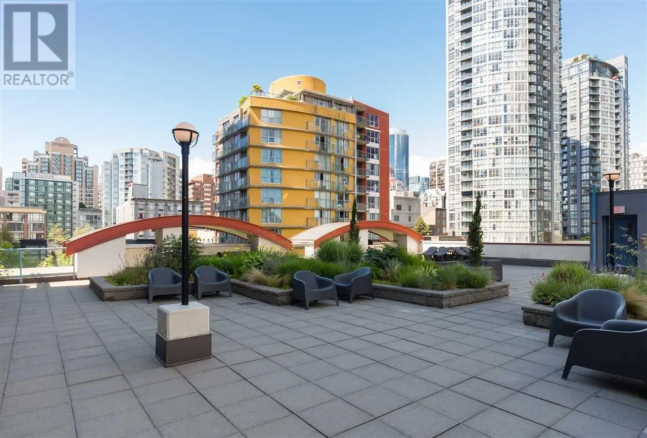 SPACE : Yaletown 9th floor loft corner unit(equivalent to 15th floor) with extensive renovation - the whole kitchen with quality cabinetry, updated appliances fridge, dishwasher, washer & Dryer, Bathroom, laminated floor & paint. 862 square ft 1 bedroom & den facing Emery Barnes Park. Rare 15 ft high living room 1 secured parking. Centrally located and only blocks from Vancouver's best restaurants, night life, Seawall & skytrain station. Pets welcome & rentals OK. Fitness room, lounge, workshop, 7,000+ SF 4th floor common patios, rooftop deck & bike room. Party room w/kitchen facilities & tv, a big meeting room, 2 common area garden lounge areas (id:27476)