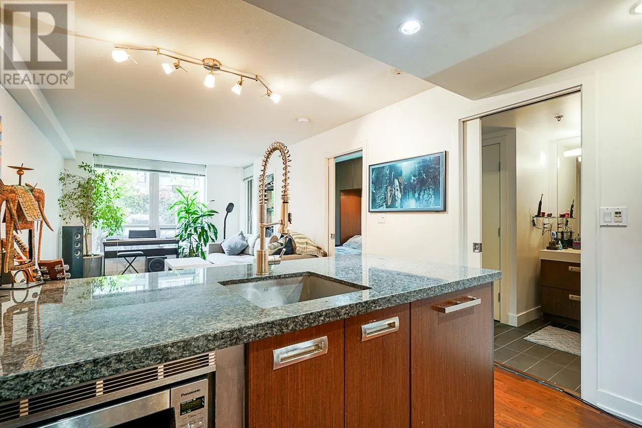 ATTENTION PATIO Lovers!!! Welcome to the Donovan, a Cressey development in the heart of Yaletown. Live the downtown lifestyle and enjoy this truly luxurious 1 bedroom and completed with hardwood flooring throughout, Miele appliance package, granite kitchen countertops & undermount sink. OUTDOOR LIVING - HUGE 290 sq.ft. of PATIO! Cooking with gas both in the kitchen and direct plumbing to your BBQ and heater for cool evenings. Designer fixtures and large in-suite storage customized with built-ins. Geothermal heating and A/C included. Spa-like gym and social area. One good size parking stall and storage locker! (id:27476)