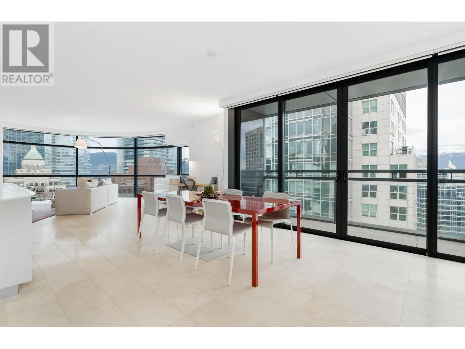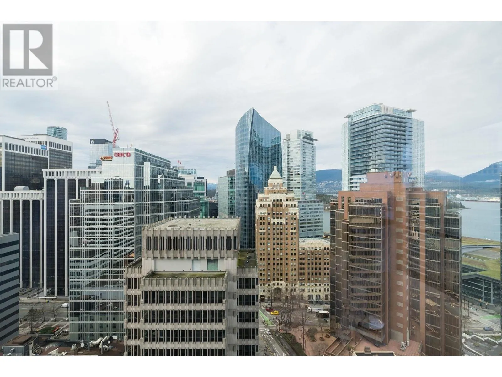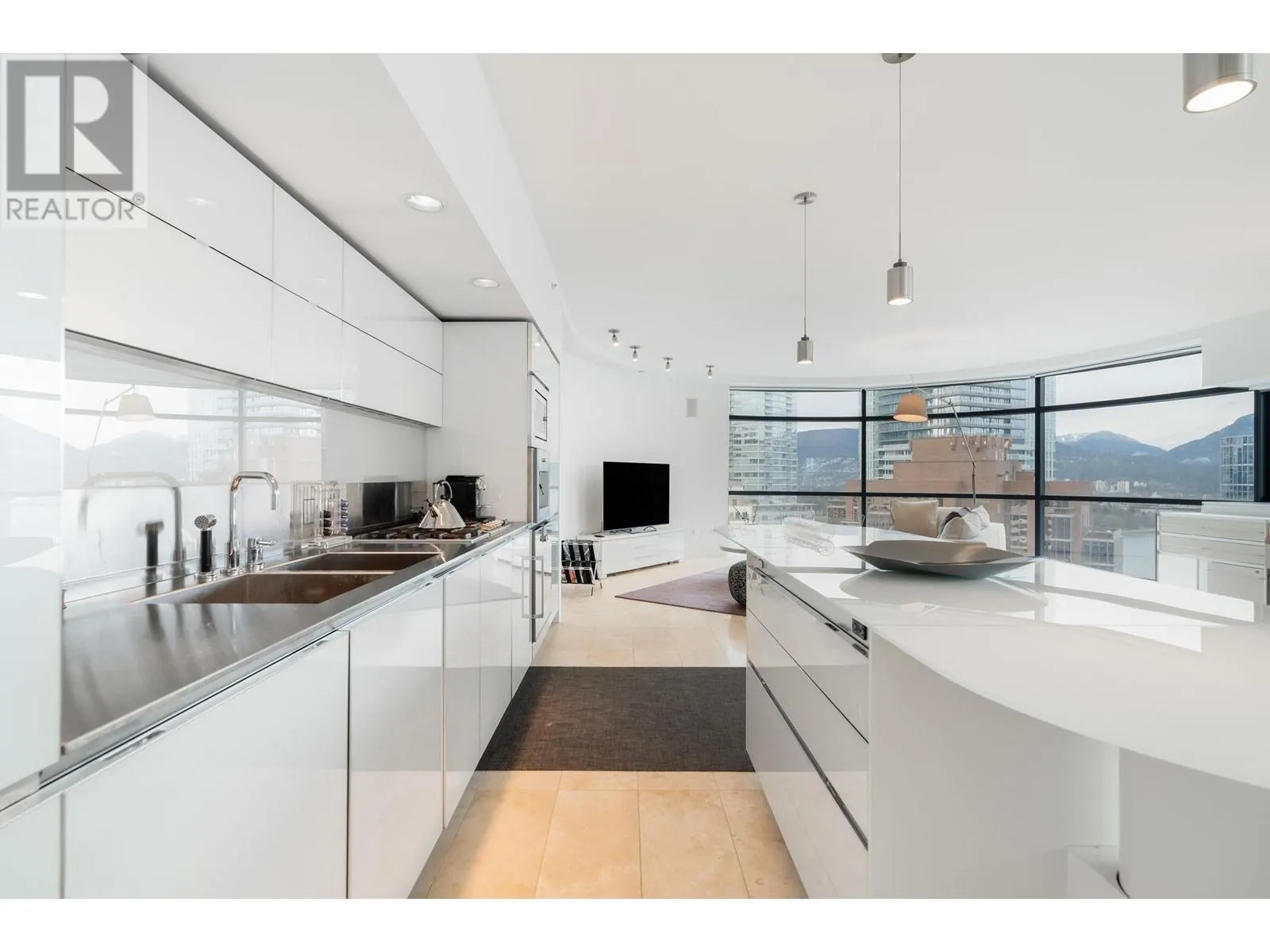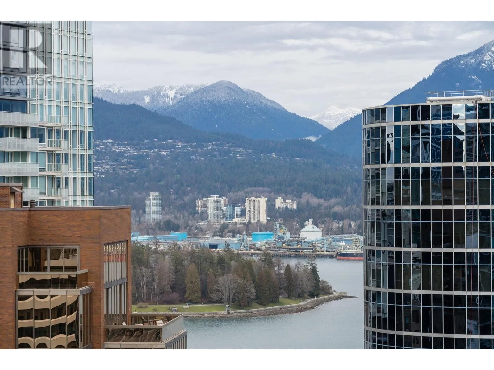 Luxurious urban living at the iconic Jameson by Norman Foster combines state of the art technology with a concierge lifestyle. This north facing corner suite of 24th floor offers panoramic views of Coal Harbour to mountains, water, & city. Step outside to the best of Downtown Vancouver-restaurants, shopping, music & theater. A spacious open floor plan takes full advantage of the impressive views. Premium finishes of this elegant contemporary design include kitchen cabinets by DADA Italy, appliances by Gaggenau & Sub Zero, Italian travertine floors, upgraded motorized blind & smart home audio and lighting control and en-suite brms & powder room. 24 hr concierge & 2 automated valet parking system ensure privacy & convenience. (id:27476)