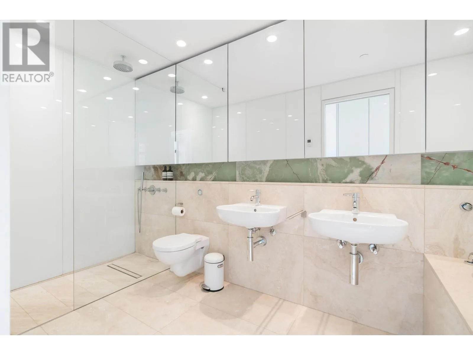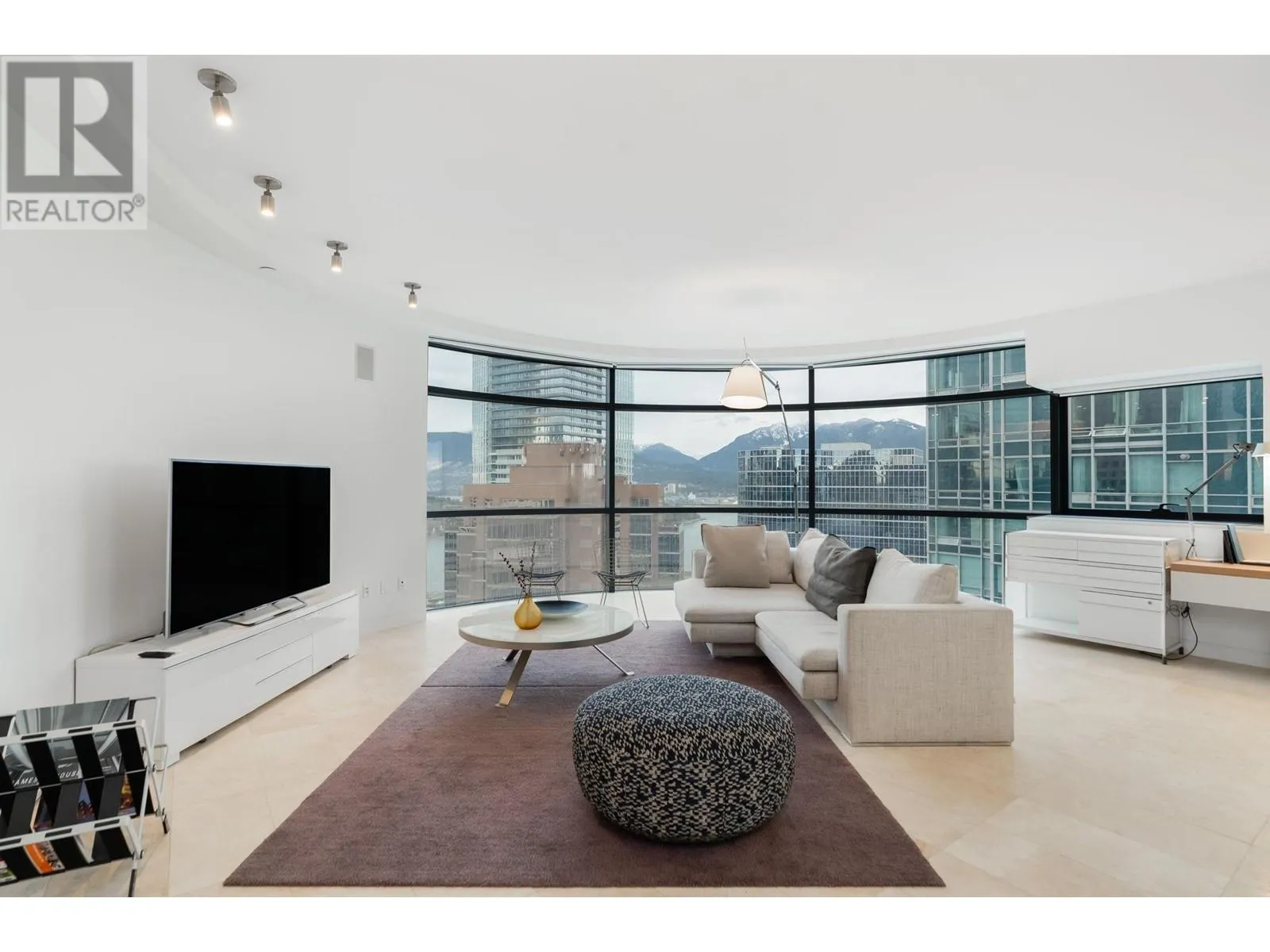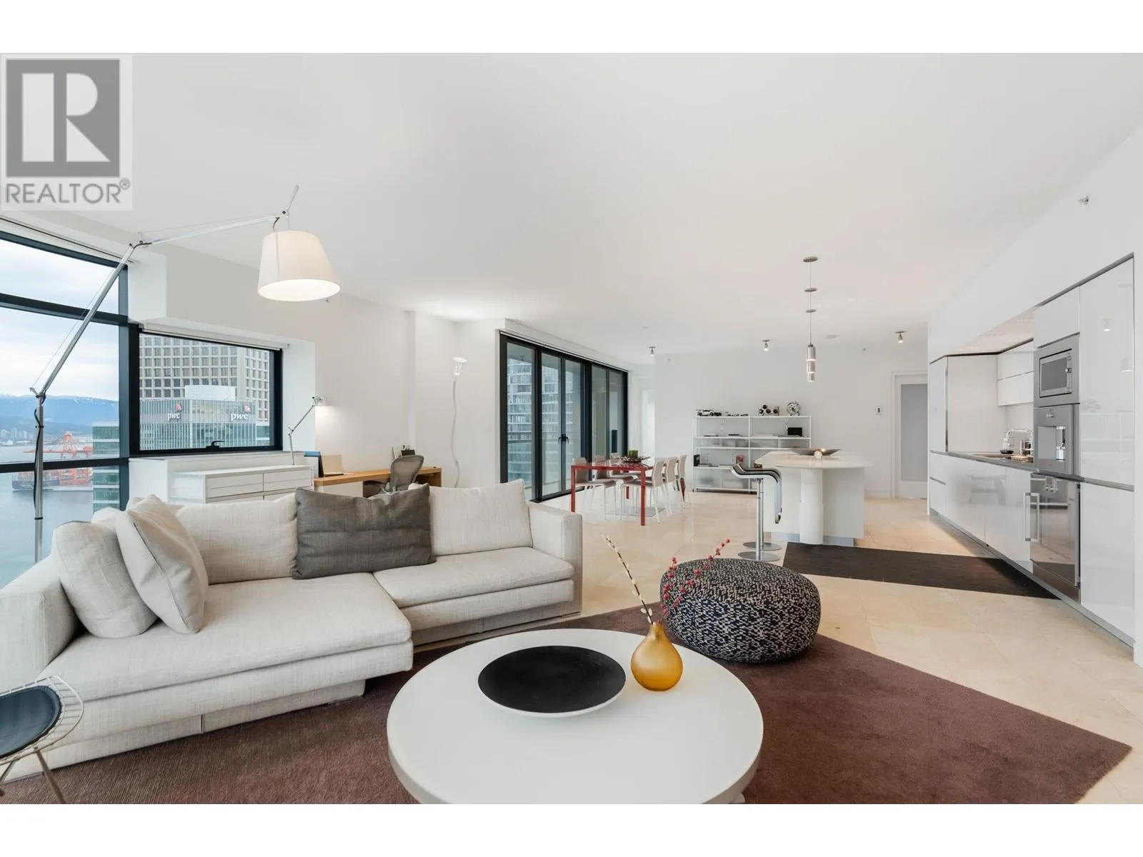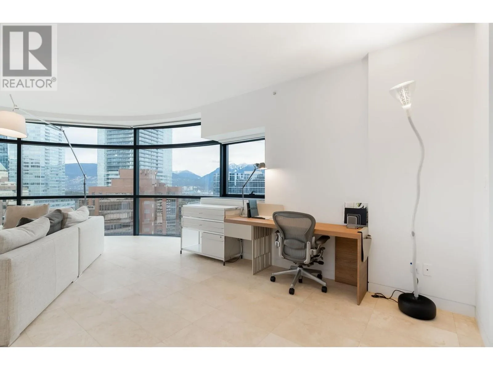 Luxurious urban living at the iconic Jameson by Norman Foster combines state of the art technology with a concierge lifestyle. This north facing corner suite of 24th floor offers panoramic views of Coal Harbour to mountains, water, & city. Step outside to the best of Downtown Vancouver-restaurants, shopping, music & theater. A spacious open floor plan takes full advantage of the impressive views. Premium finishes of this elegant contemporary design include kitchen cabinets by DADA Italy, appliances by Gaggenau & Sub Zero, Italian travertine floors, upgraded motorized blind & smart home audio and lighting control and en-suite brms & powder room. 24 hr concierge & 2 automated valet parking system ensure privacy & convenience. (id:27476)