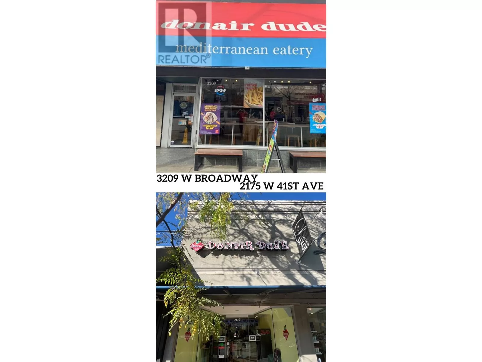TWO LOCATIONS. One of a kind opportunity to own two very busy and successful Donair grab and go Franchises. Both businesses are located in the west side of Vancouver in the Kitsilano Neighborhood and in the Kerrisdale neighborhood . Take advantage of these two turn key operations turning good profits. Do not disturb staff. Contact listing agent for details. The addresses of these businesses are: 2175 W 41st Ave, Vancouver, BC V6M 1Z6 and 3209 West Broadway Vancouver BC V6K 2H5 (id:27476)