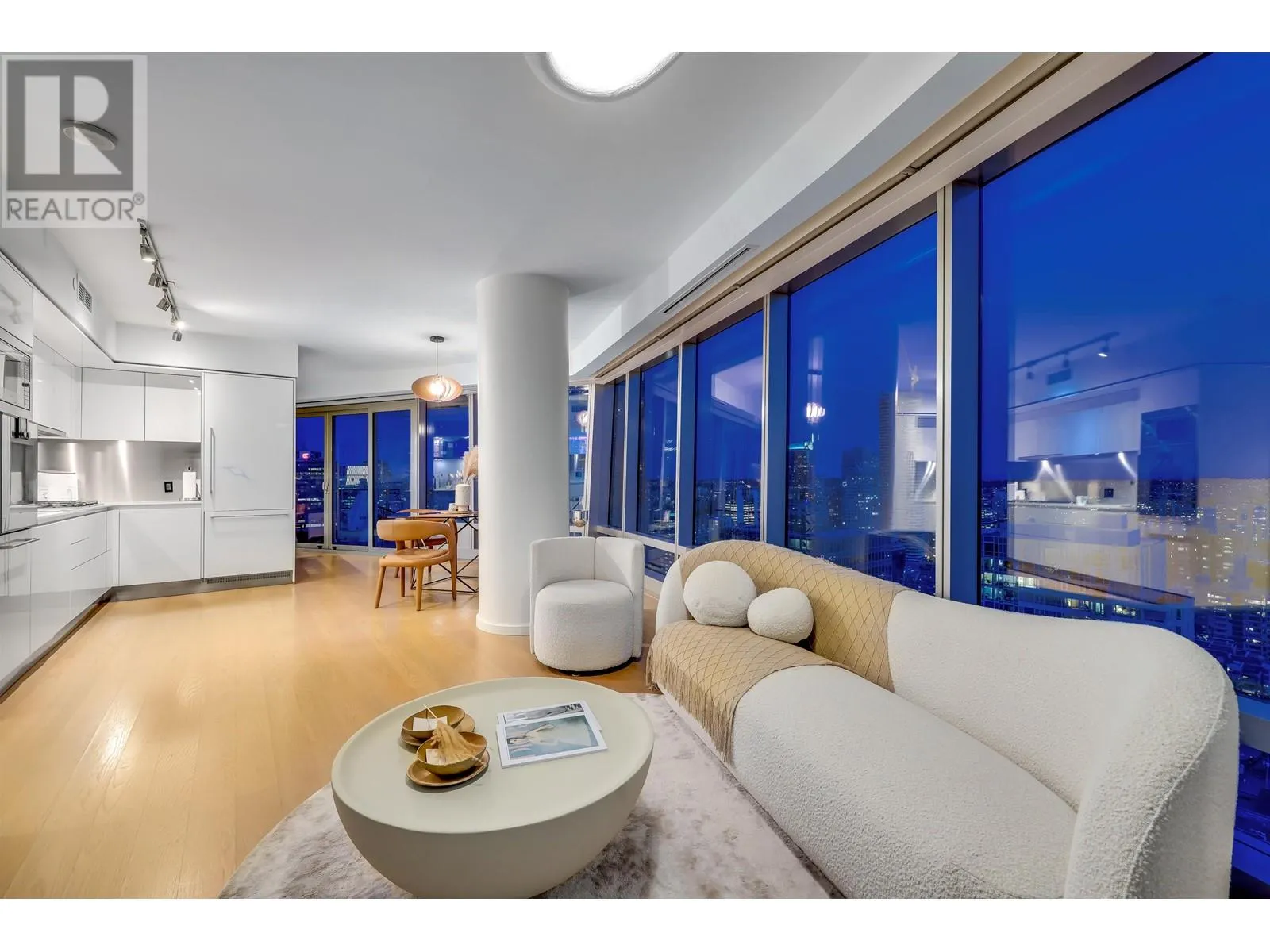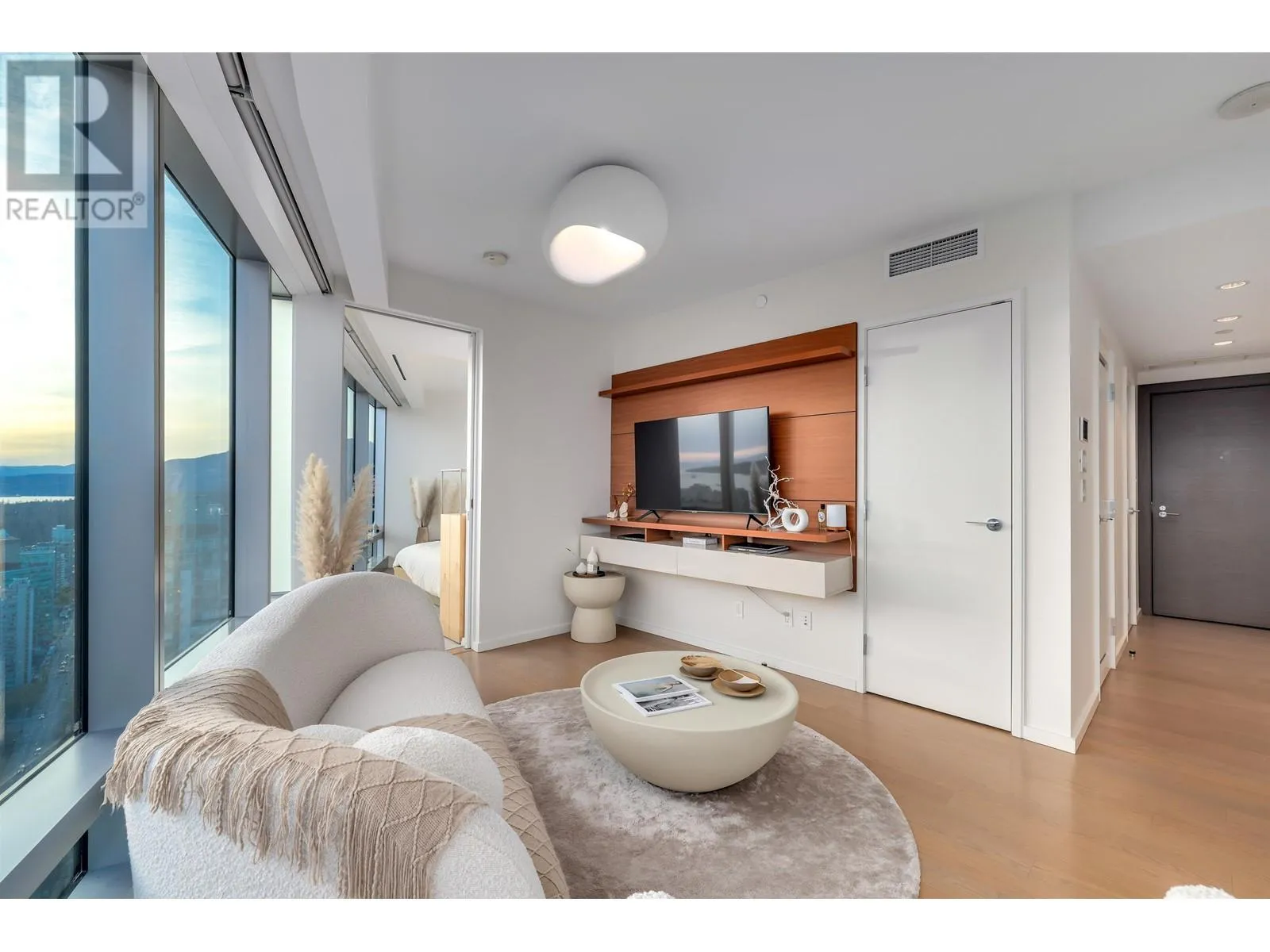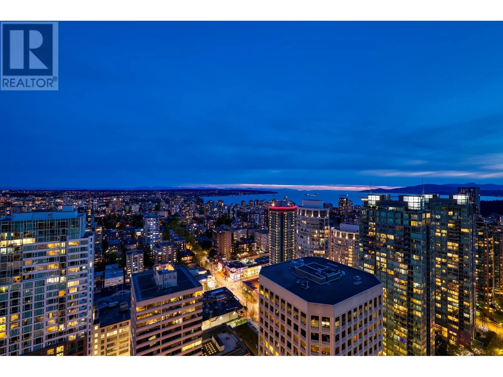 Welcome to this stunning home at the 1151 Residences! 2 bedrooms, 2.5 bathrooms plus den with panoramic views of English Bay, Stanely Park, mountains, and the city sparkling lights! Featuring A/C , high-end Arelinea kitchen with Gaggenau appliances, Crestron Smart Home System, motorized blinds, Italian closets, bathrooms with marble floors & walls. Floor to ceiling windows afford abundant natural light opening to an inviting extra large outdoor balcony. 1 parking space & 1 storage locker are included. The building features a superb 24-hr concierge, indoor pool, spa & all the luxury Hotel amenities that define luxurious living. Just steps away from the very finest restaurants, shopping & entertainment. Book your private showing today! (id:27476)