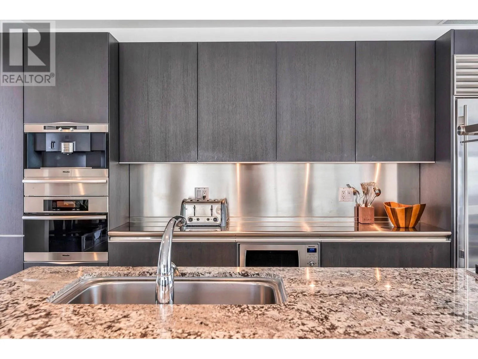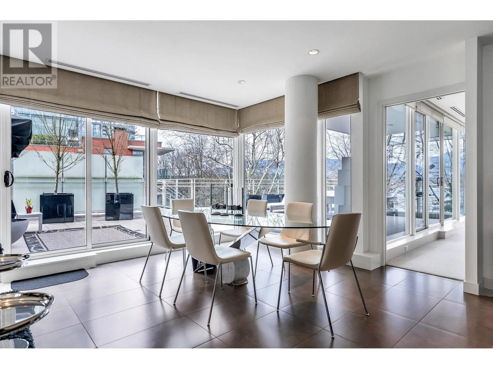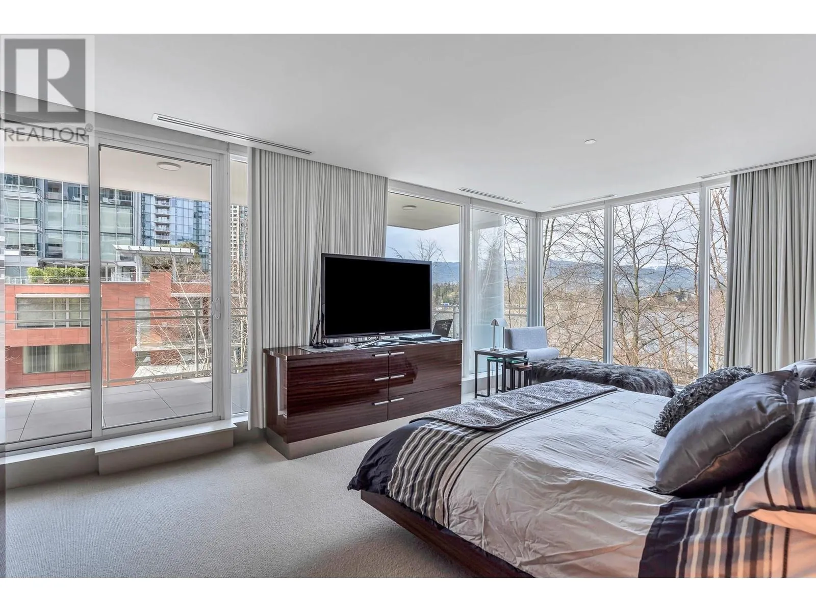 One of one luxury: A 5,450 SQFT waterfront TH at Two Harbour Green with direct access to a private 5-car garage and 2,000 sqft of terraces. The largest TH ever offered on the DT Peninsula, this extraordinary home presents an unparalleled opportunity for the discerning buyer, combining expansive scale and refined sophistication rarely found in the heart of the city.Over 40 ft of frontage with stunning views of Stanley Park, the harbour, and mountains. The upper level features 3 ensuite beds, primary with 2 walk-in closets. Designer Snaidero kitchen with Miele and Sub-Zero. The lower level offers a rec room with full bath, roughed-in wet bar, and customizable space for entertainment, extra beds/suite. Resort-style amenities: pool, gym, virtual golf, and 24-hour concierge. (id:27476)