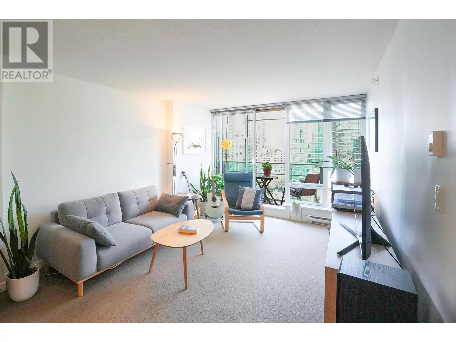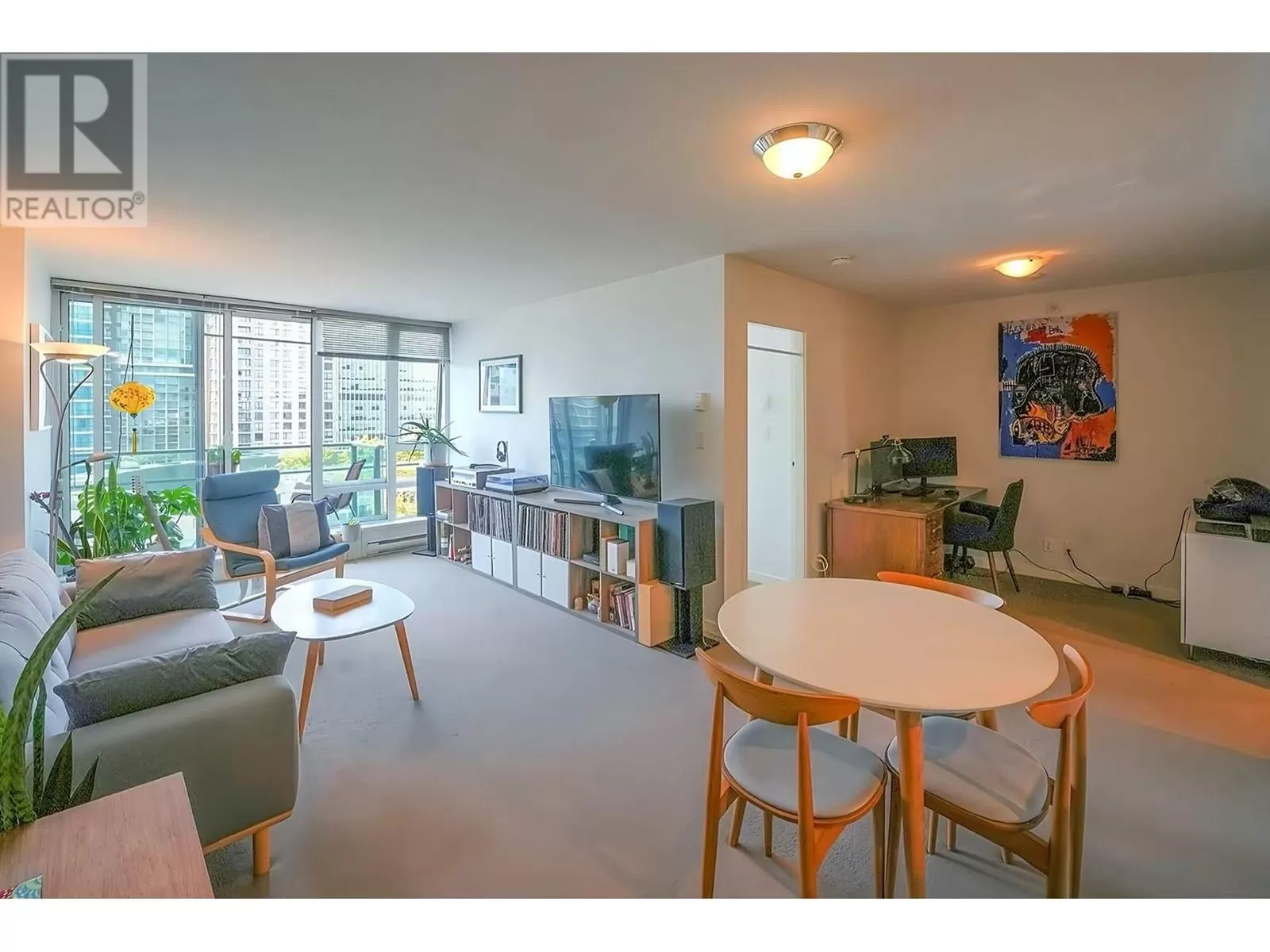 Experience sophisticated urban living in this exceptionally spacious 1-bedroom home at TV Tower 1 by Concord Pacific! This unique higher-floor unit is very well maintained and offers sweeping views of Library Square. The open-concept layout features a contemporary kitchen with an oversized breakfast bar, a large flex space, and a dedicated den. Within 10-min walk to the Canada Line, Skytrain stations, Yaletown, Rogers Arena, Pacific Center etc. Enjoy gym, hot tub, sauna & steam room, movie theatre and party room. Comes with 1 parking. (id:27476)