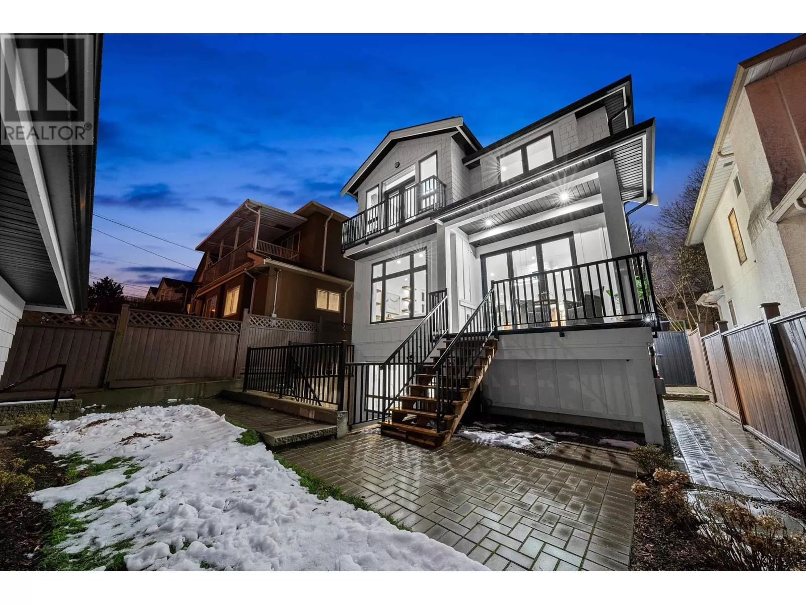 Welcome to Your Dream Home in the Heart of East Vancouver! Step into luxury with this brand-new, beautifully crafted home offering 2,366 sq. ft. of modern living space in a prime East Vancouver location. Thoughtfully designed with high-end finishes throughout, this home features: *5 spacious bedrooms & 4.5 bathrooms, including a versatile flex room *A 2-bedroom legal suite with private entrance - ideal for rental income or multigenerational living *Open-concept main floor with custom cabinetry, premium hardwood flooring, radiant heating & air conditioning *A chef-inspired gourmet kitchen perfect for family meals or entertaining guests *Upper level featuring a serene primary suite plus two additional bedrooms *Lower-level rec room with built-in bar - your ultimate hangout or entertainment zone *Double-car garage, elegant wood detailing, fully fenced yard & professional landscaping *All this, just minutes from top schools, parks, shopping, and public transit. --Don´t miss this rare opportunity to own a stunning (id:27476)