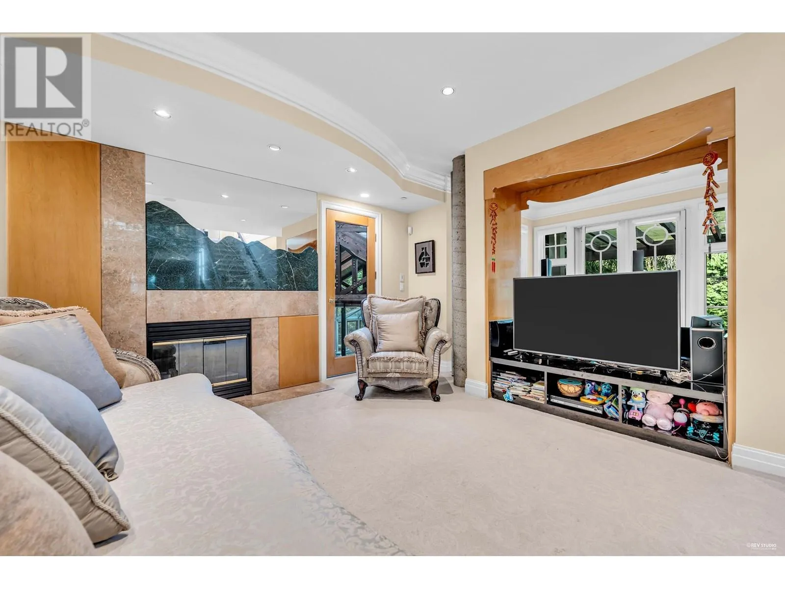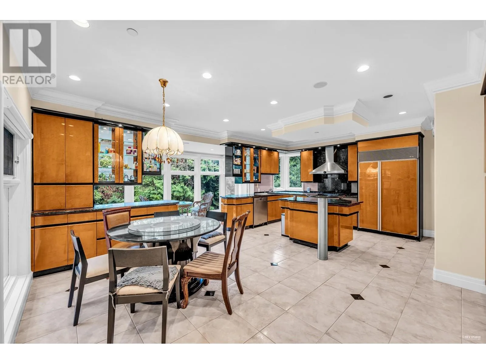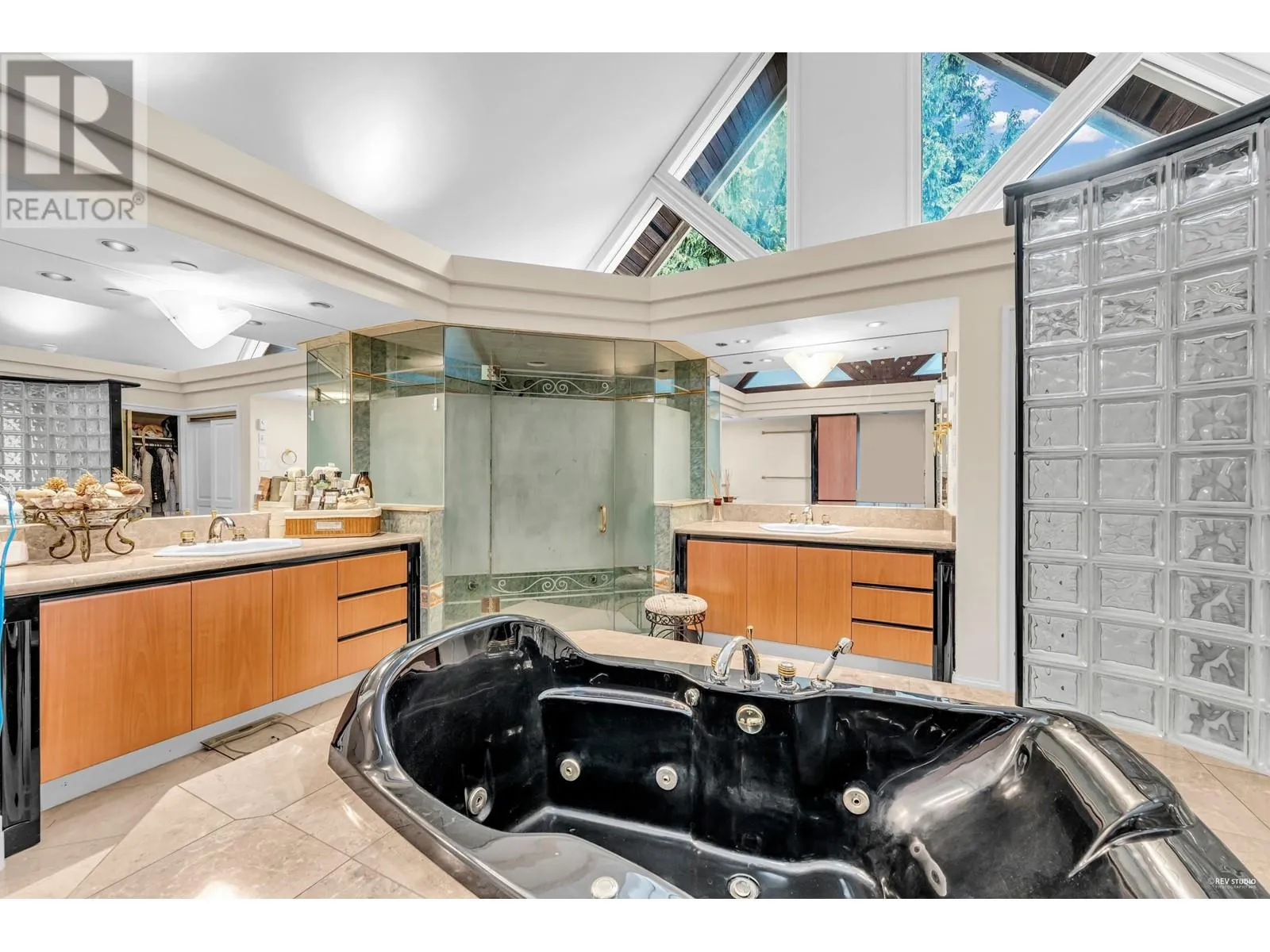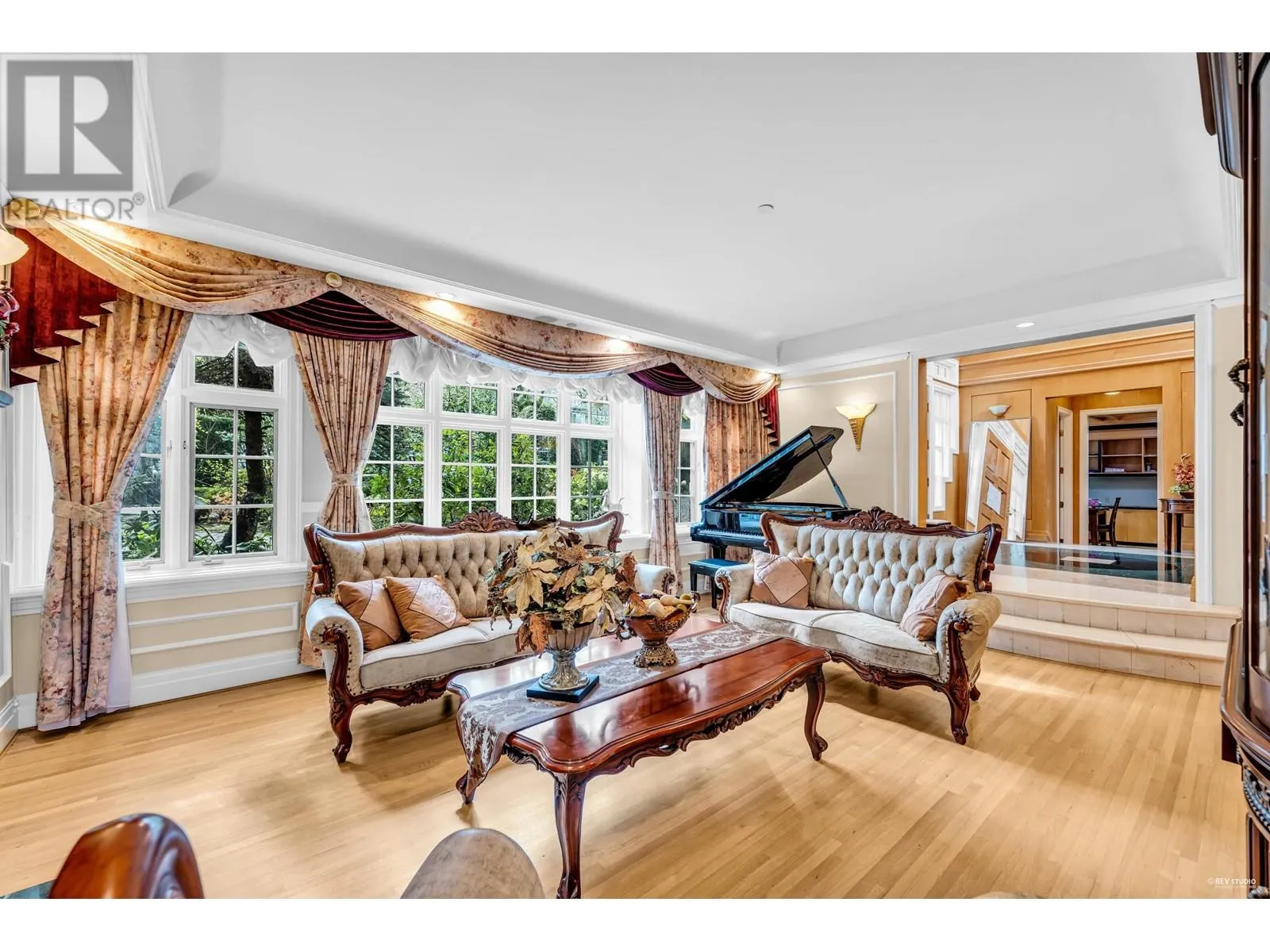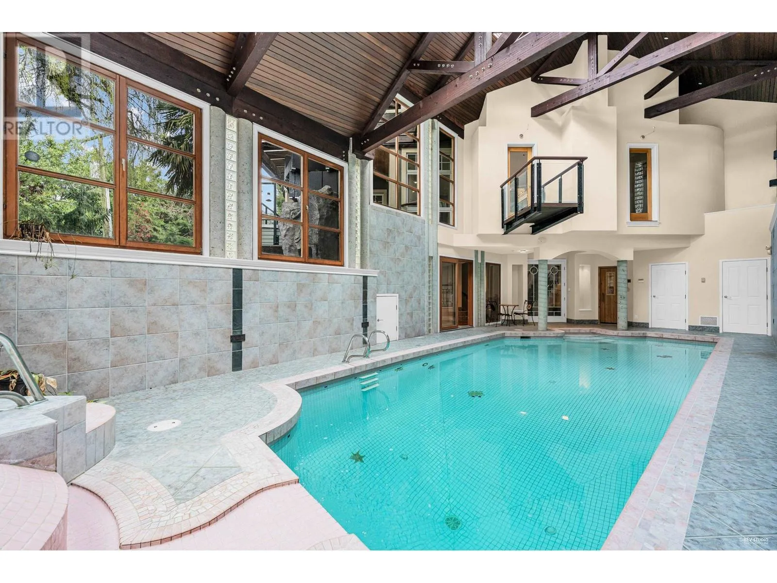Stunning custom-built mansion in prestigious 1st Shaughnessy, showcasing exquisite craftsmanship and premium finishes. Features include a grand double-height foyer, indoor fish pond with waterfall, elegant living/dining areas, and maple hardwood flooring. The gourmet and wok kitchens are outfitted with top-tier appliances, opening to a large deck overlooking a landscaped backyard with a fish pond. Upstairs offers 4 spacious ensuite bedrooms (3 with steam showers), while the lower level includes a home theatre, gym, office, and guest suite. Additional luxuries: indoor pool, A/C, HRV, radiant heat, elevator, sauna, smart security, and 4-car garage-all set within a beautifully fenced garden. (id:27476)